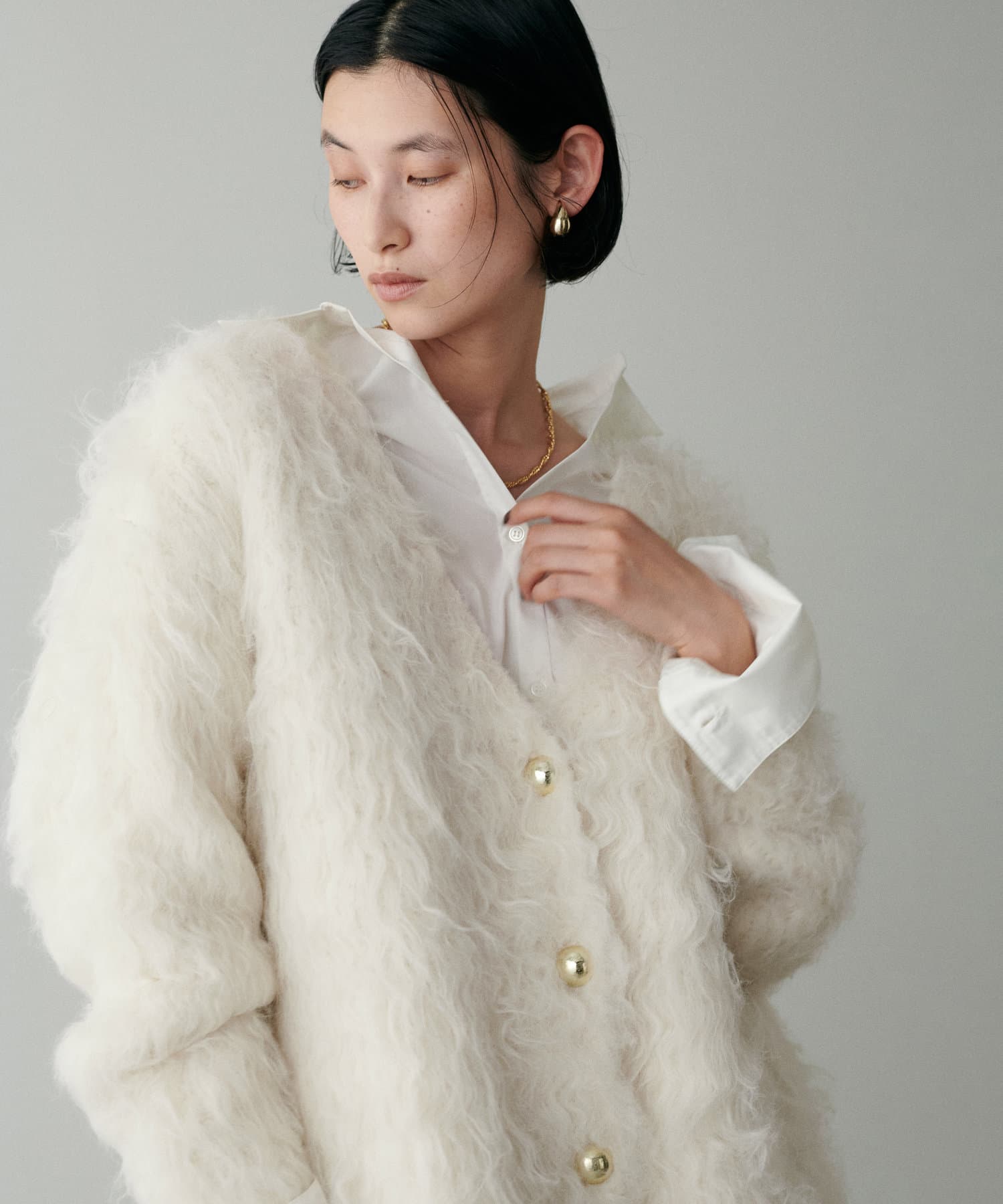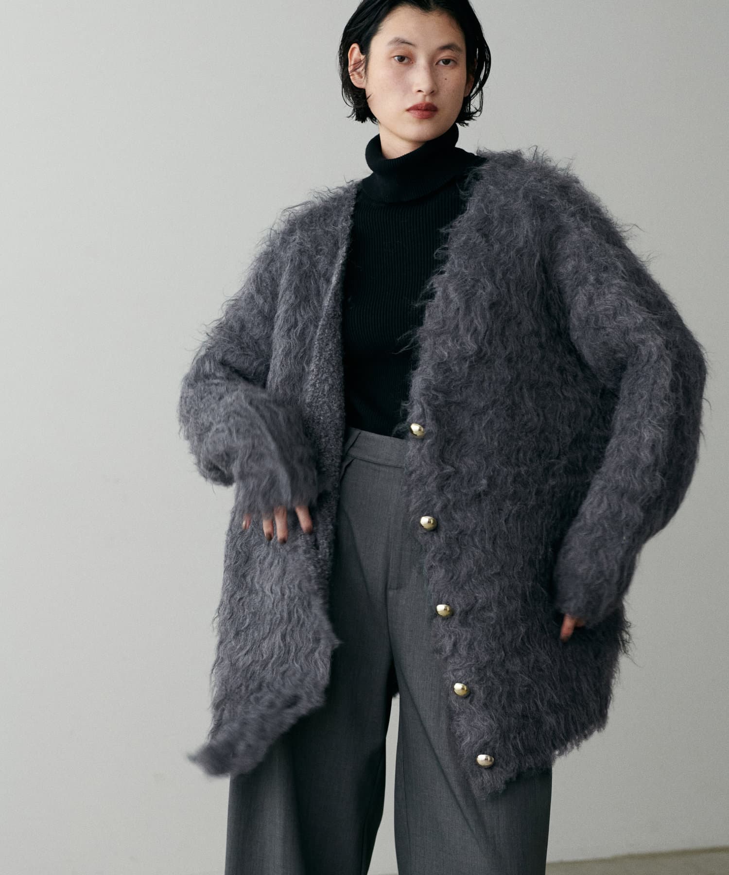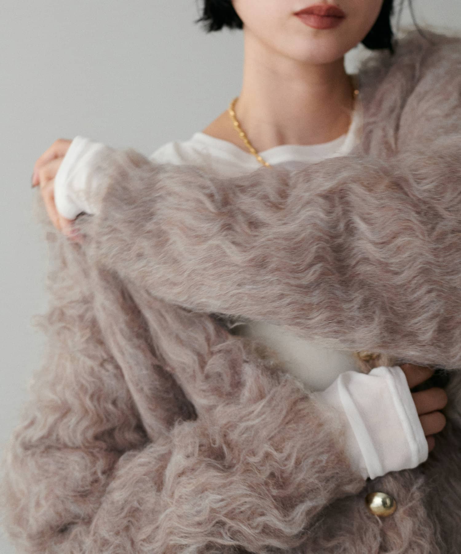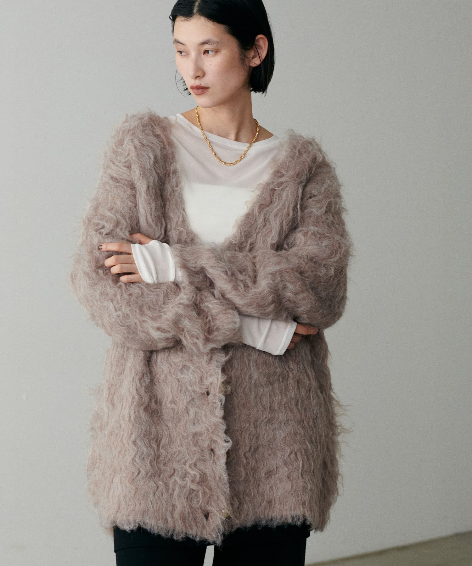 特殊なカールの起毛加工が施されたニットコートが登場。