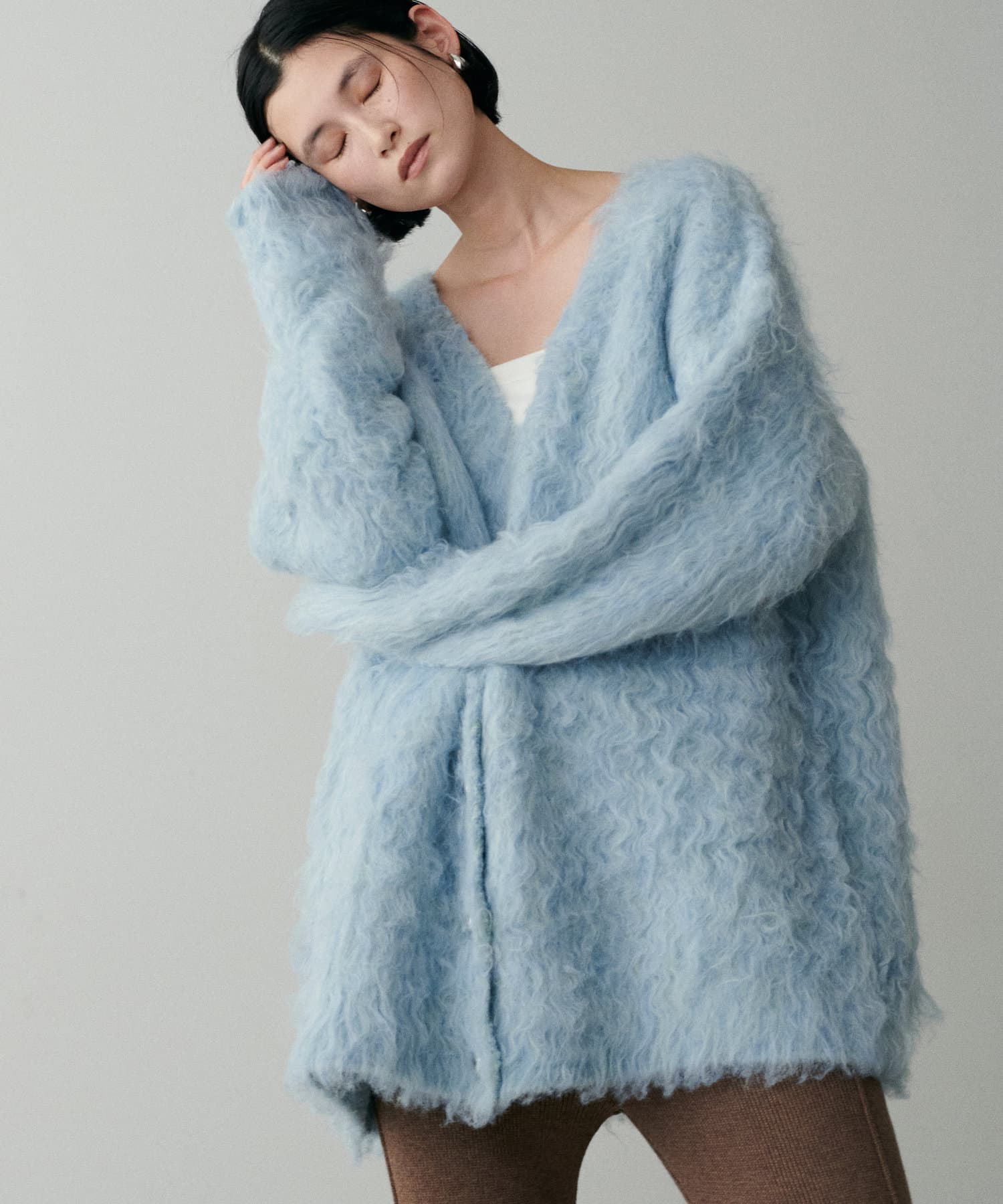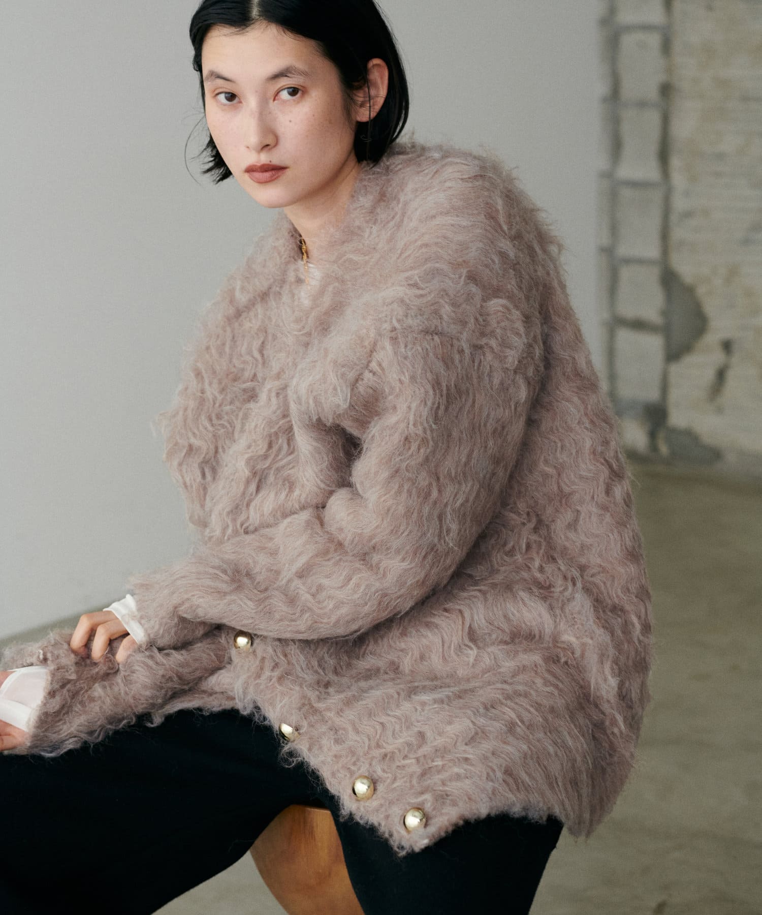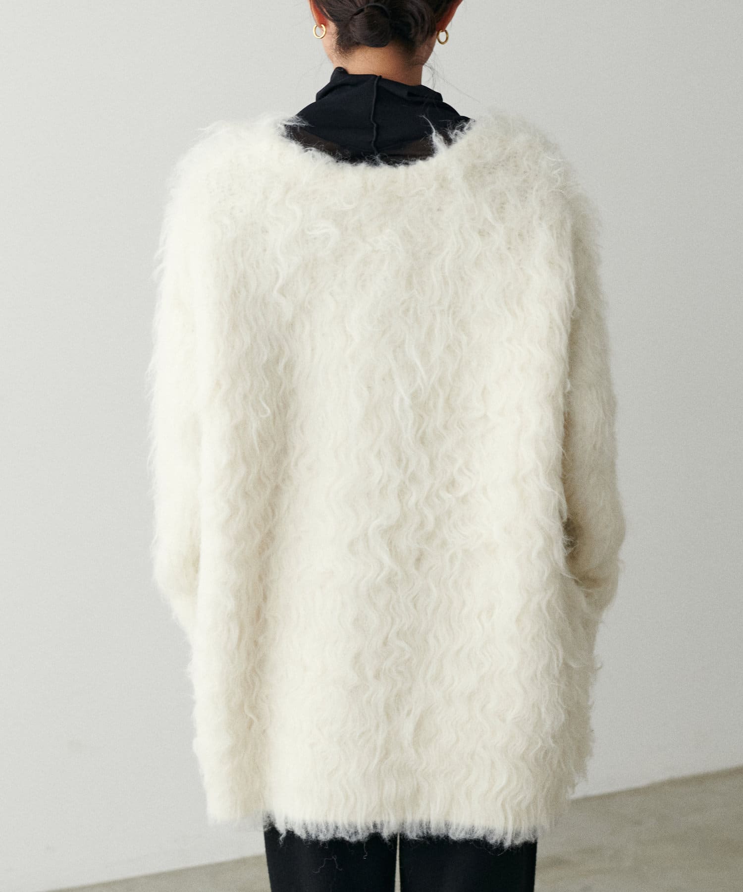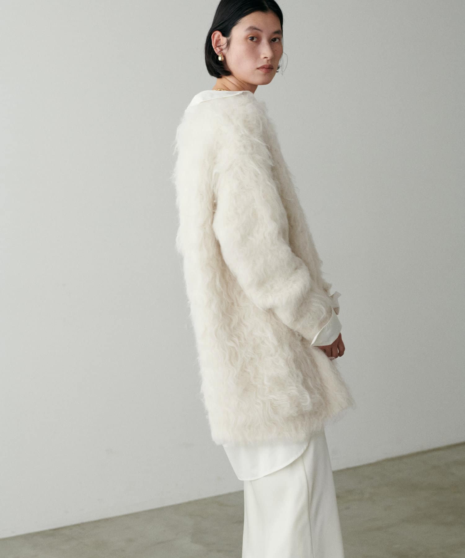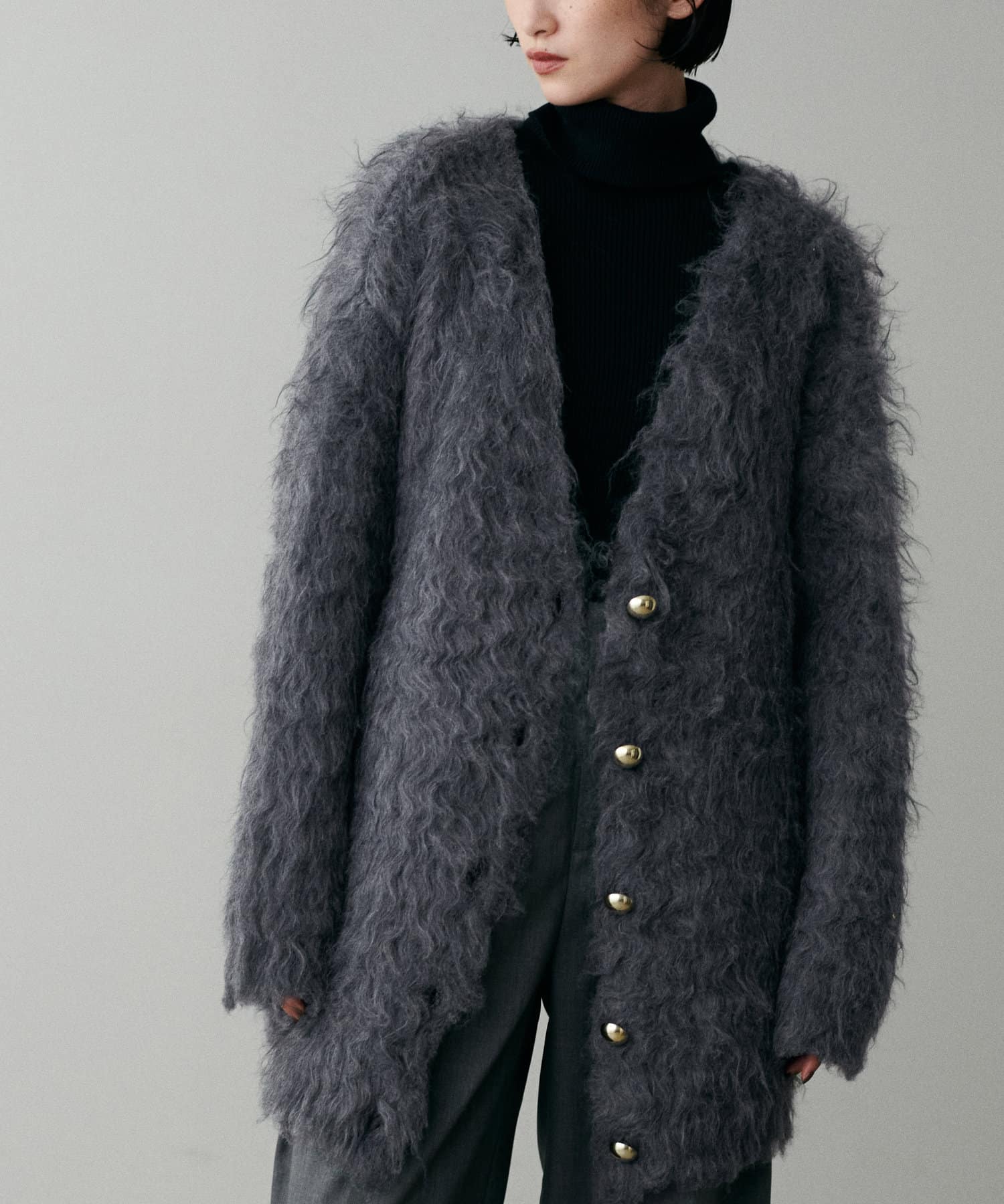 特殊なカールの起毛加工が施されたニットコートが登場。