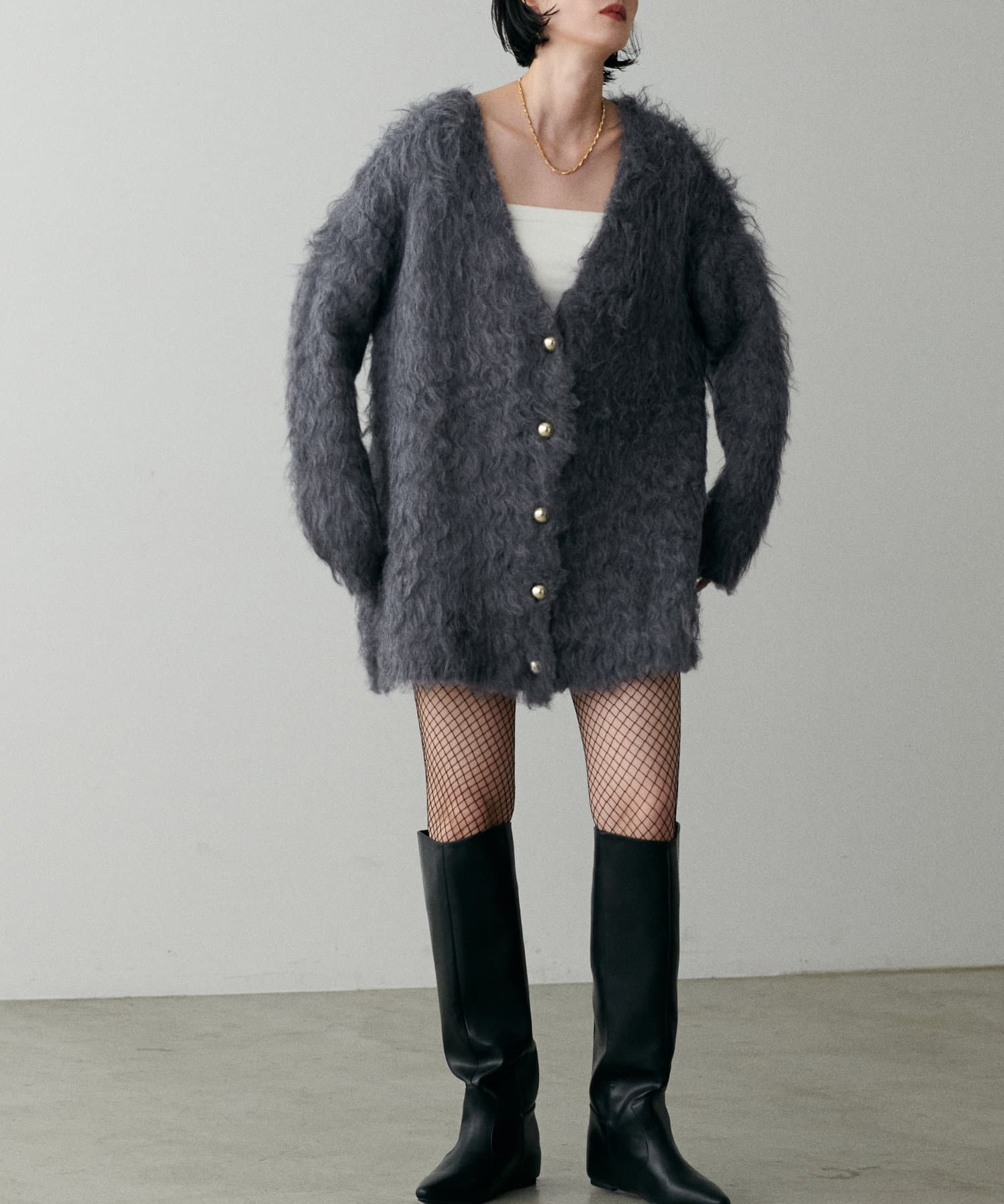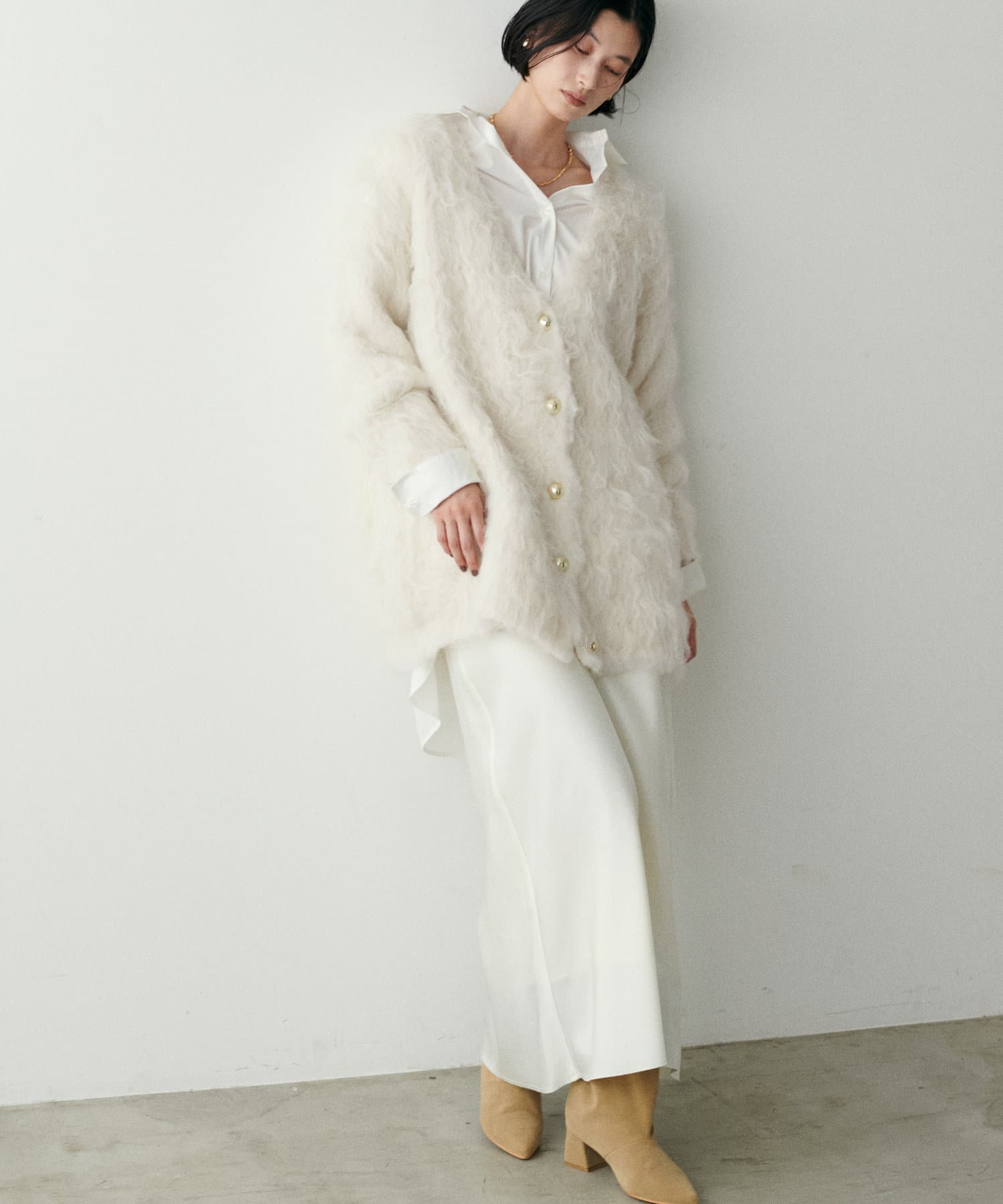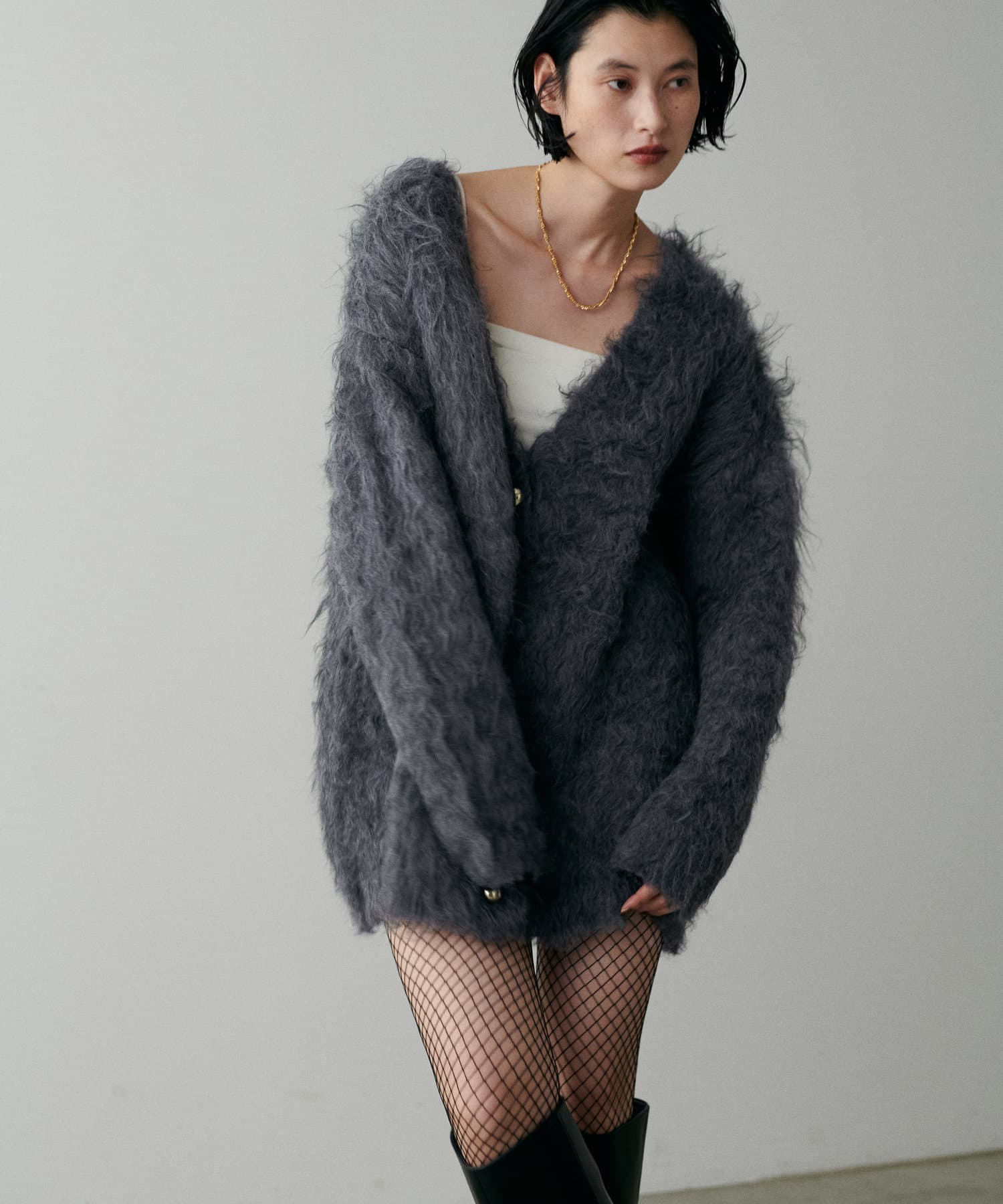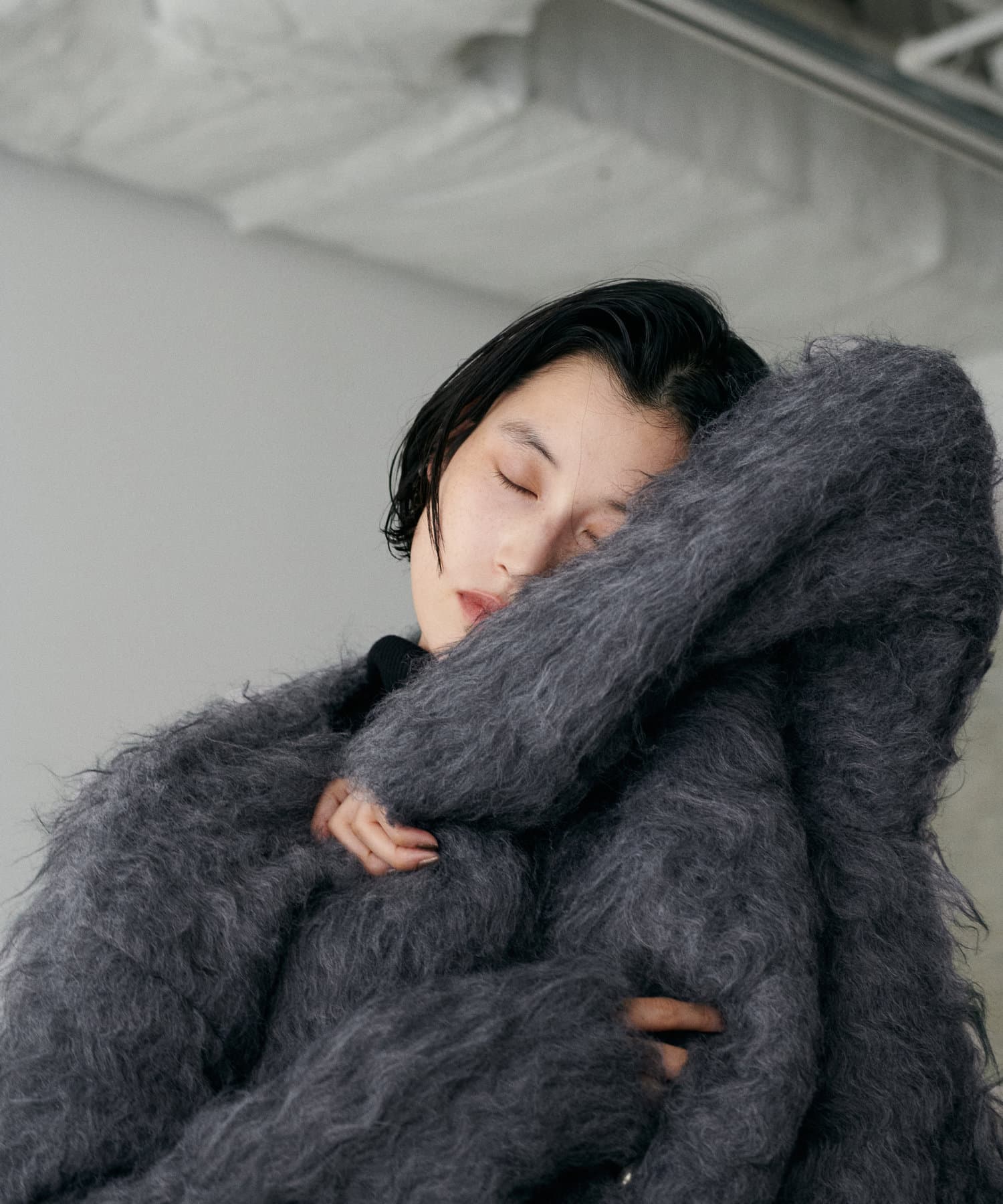 特殊なカールの起毛加工が施されたニットコートが登場。