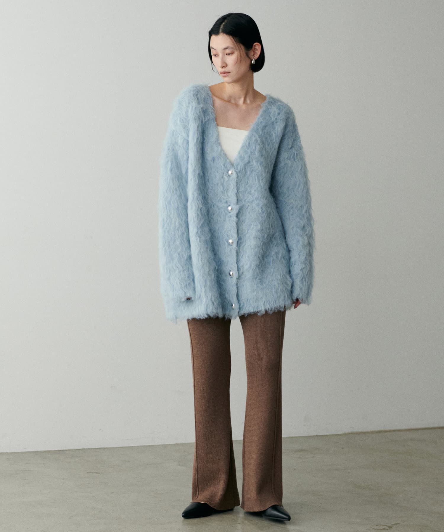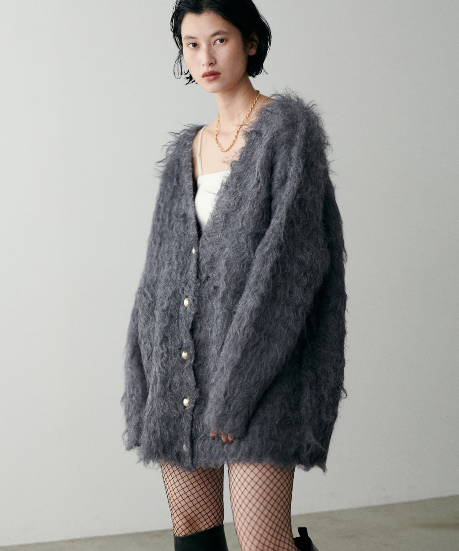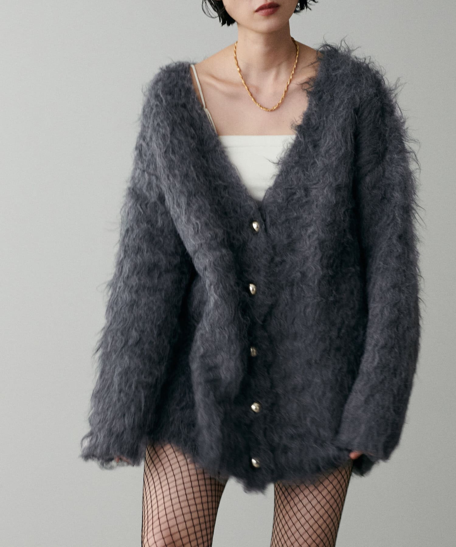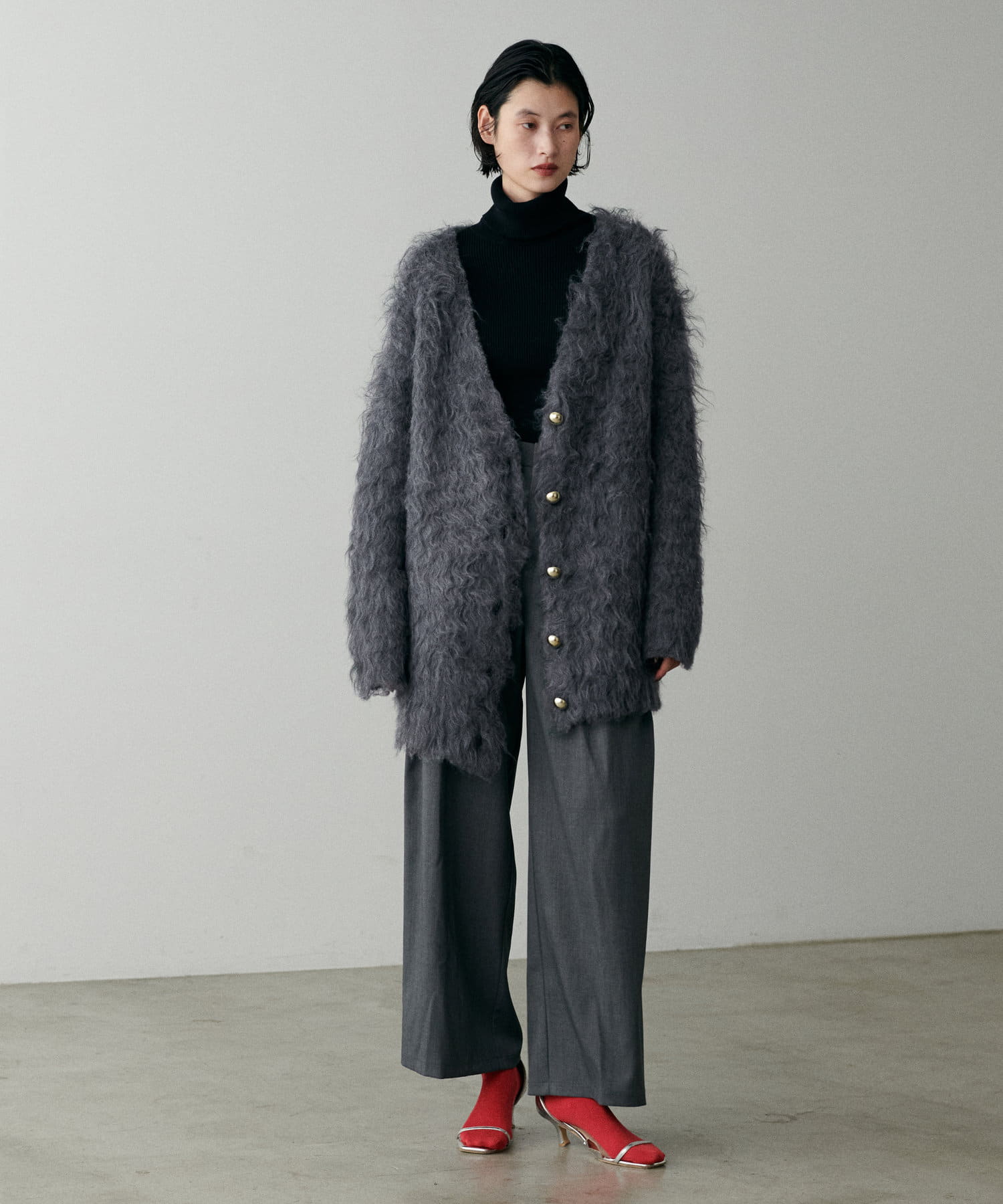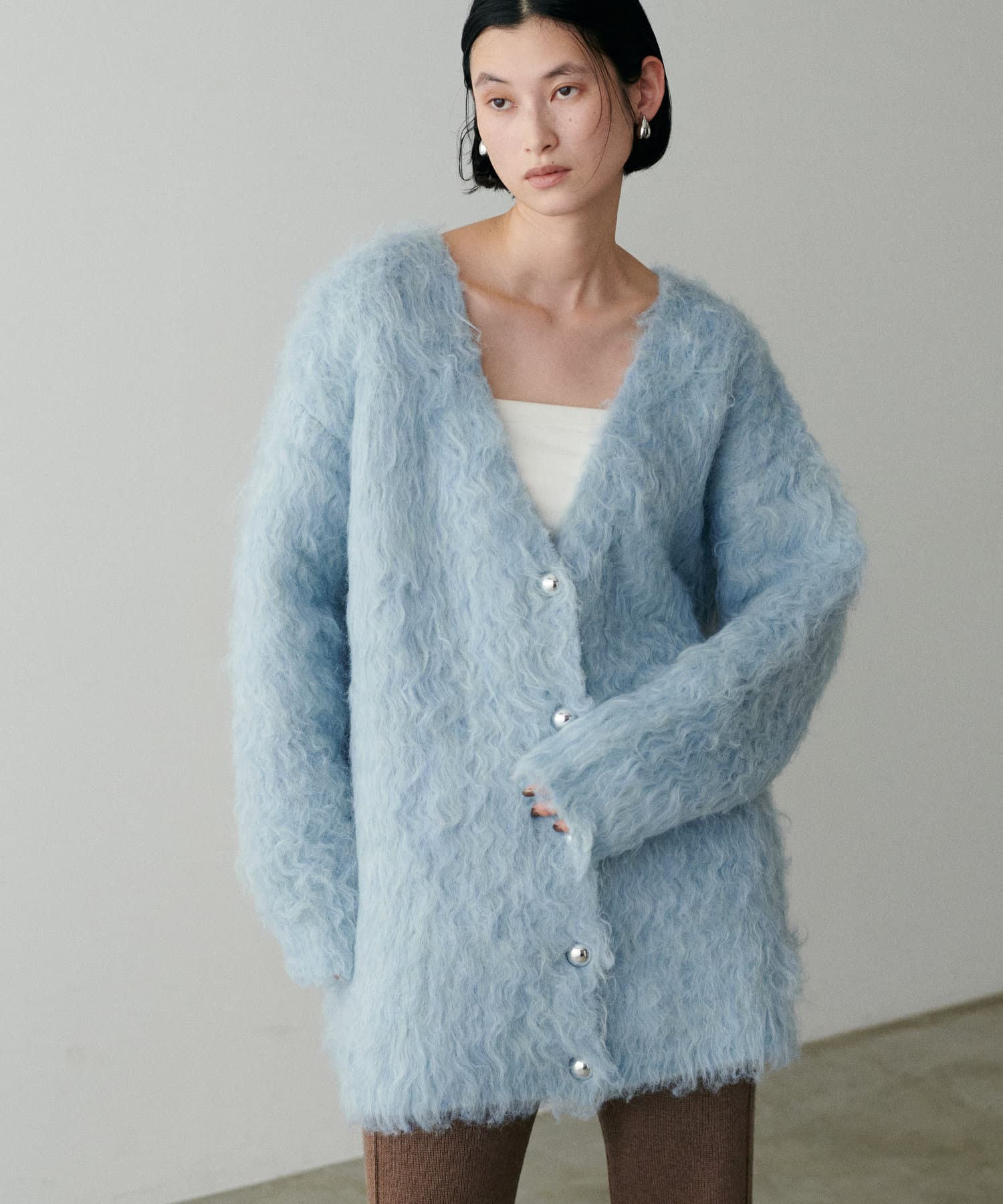 特殊なカールの起毛加工が施されたニットコートが登場。