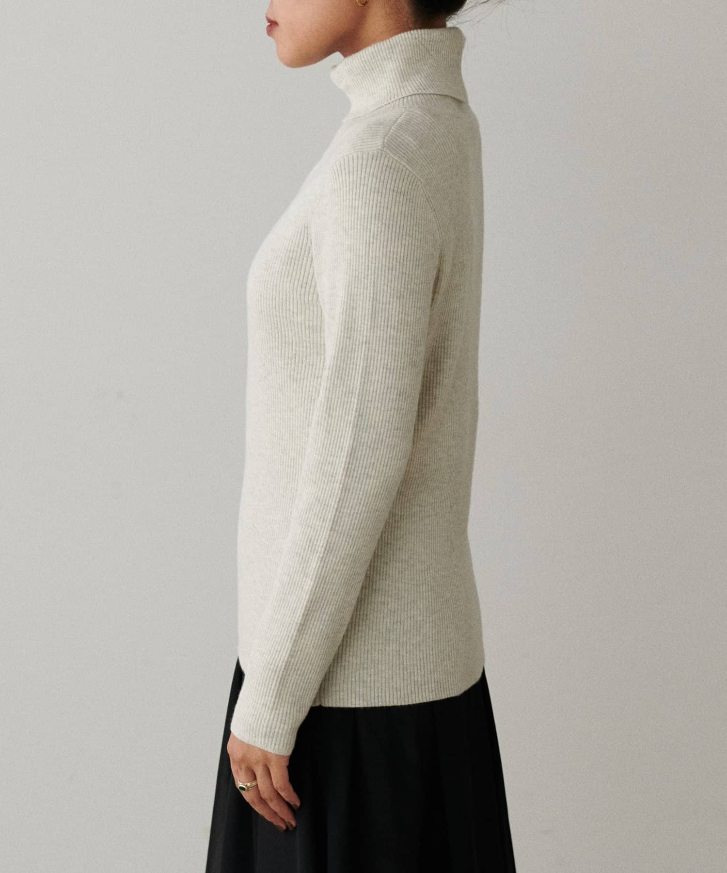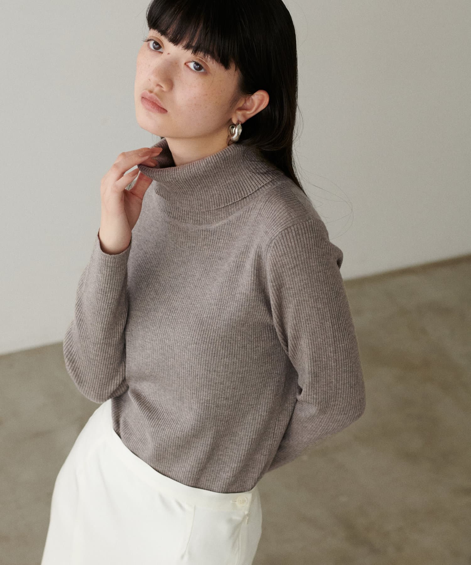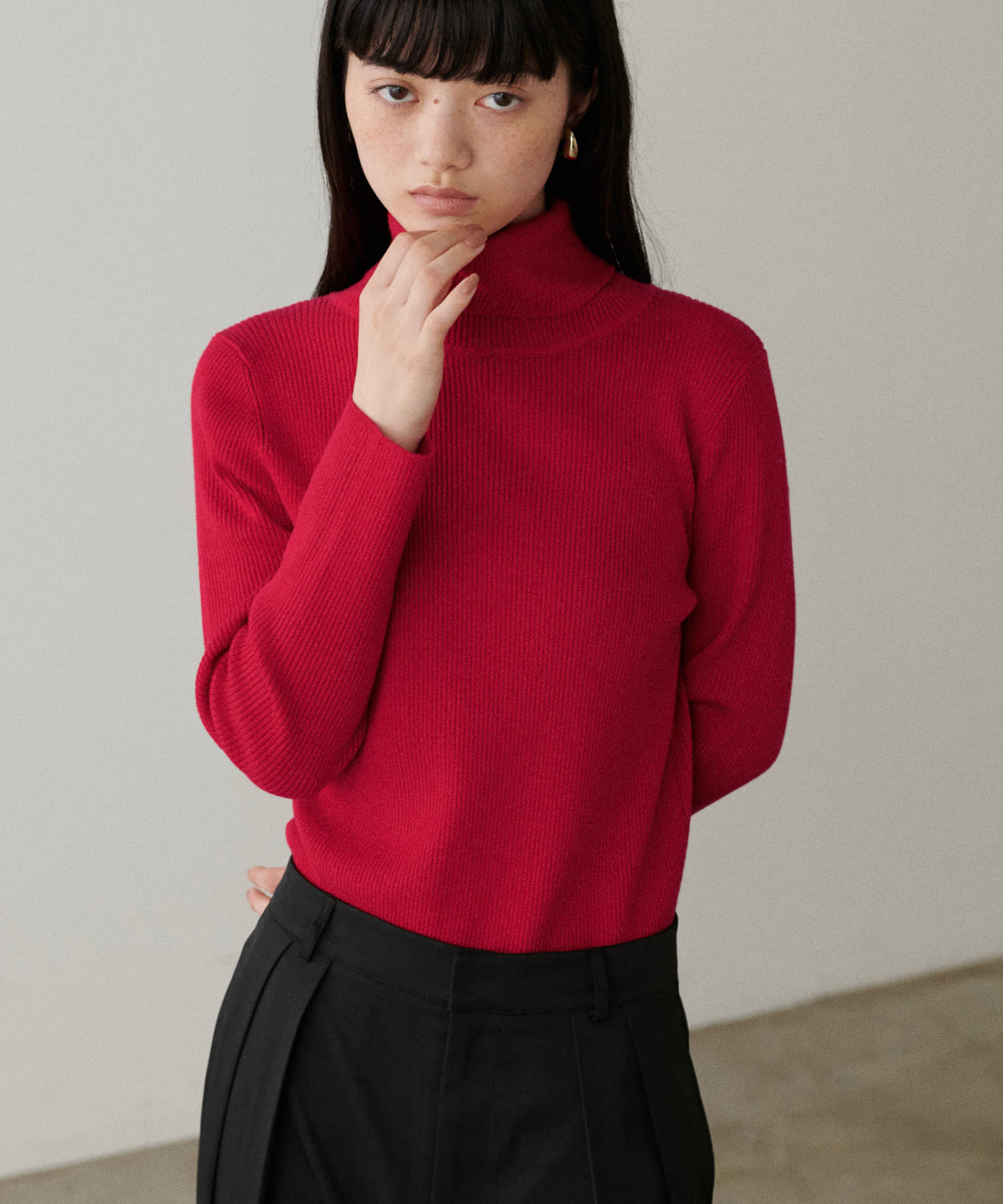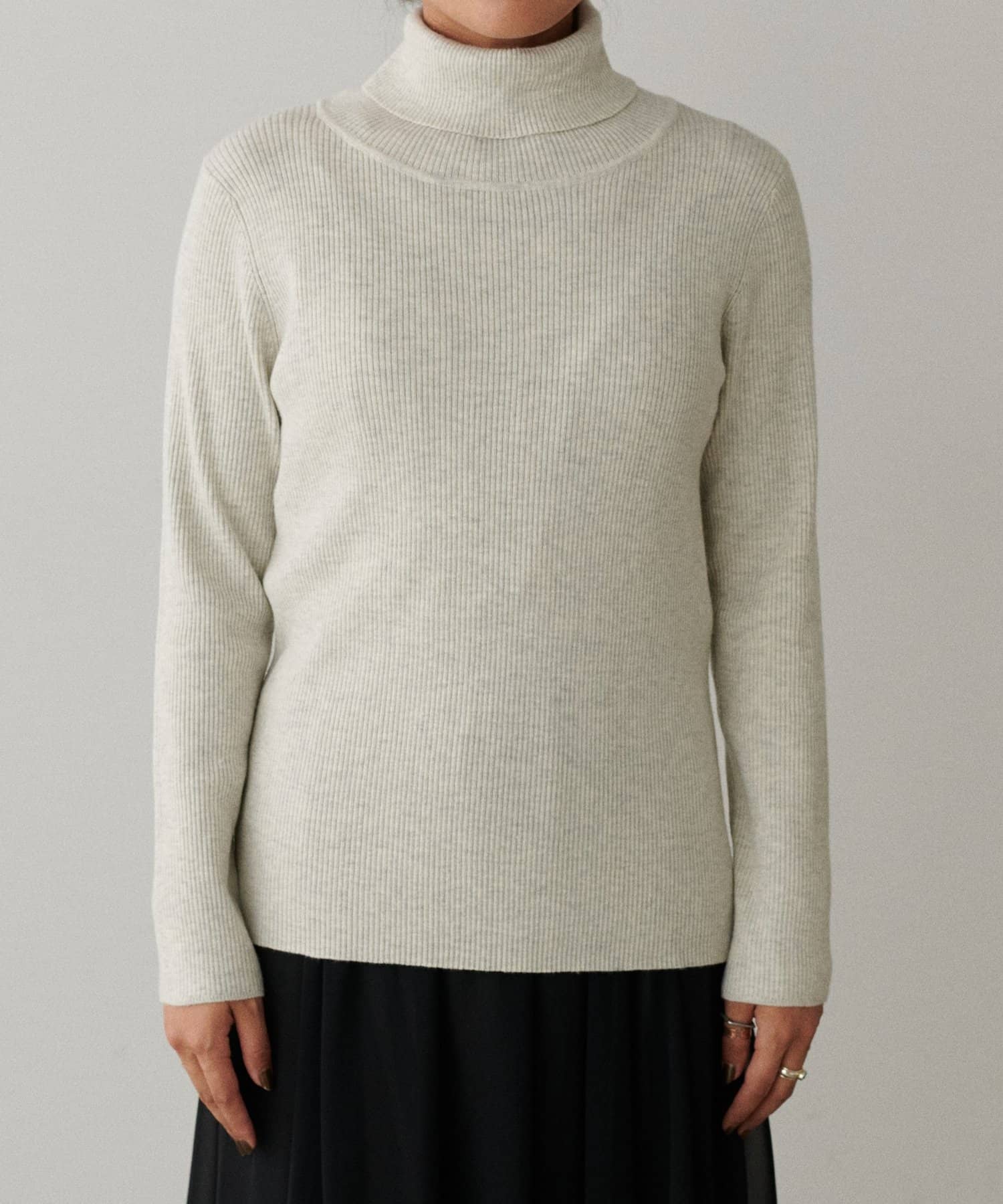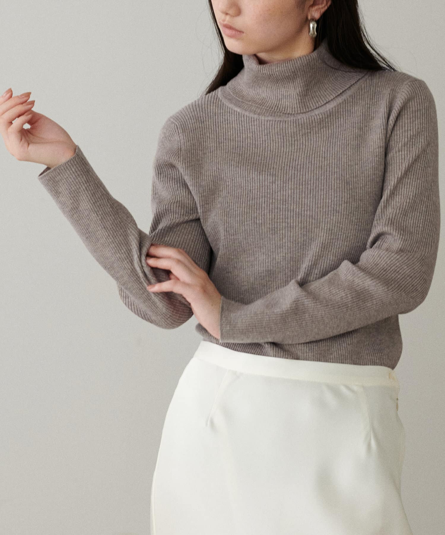 すっきりシンプルなデザインで着回しのきくリブタートルネック。