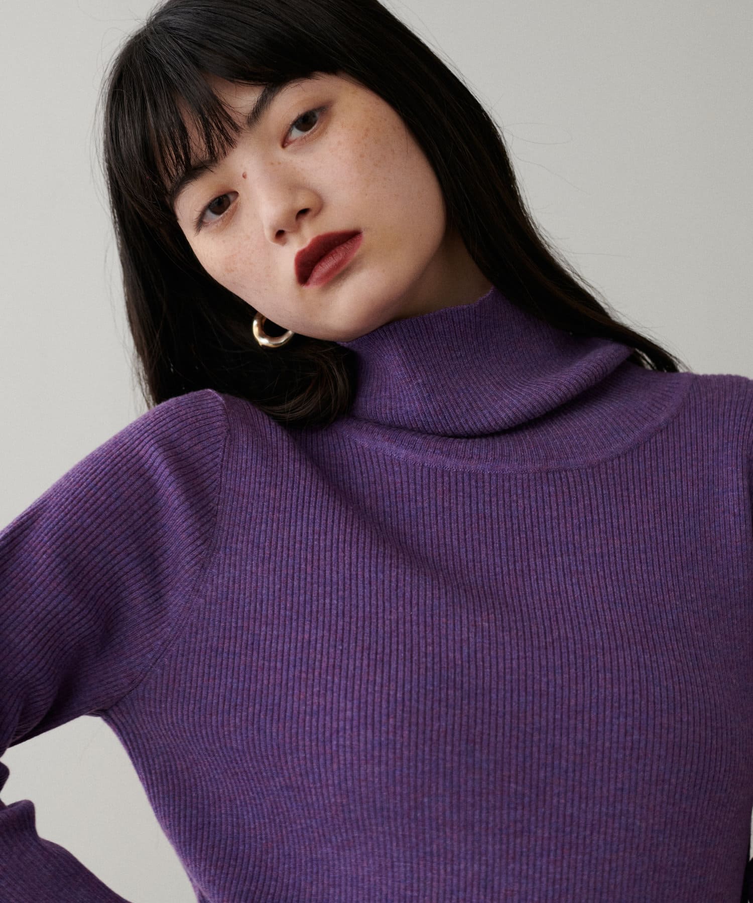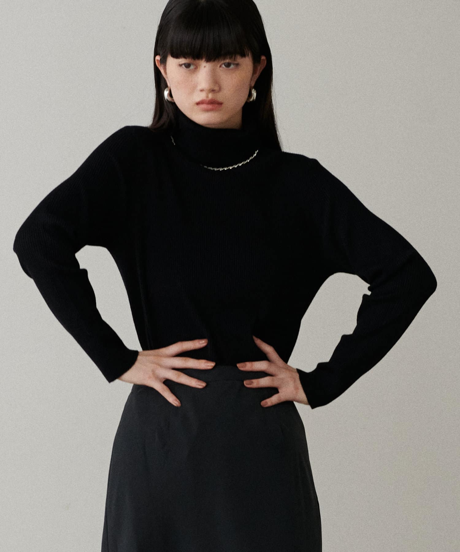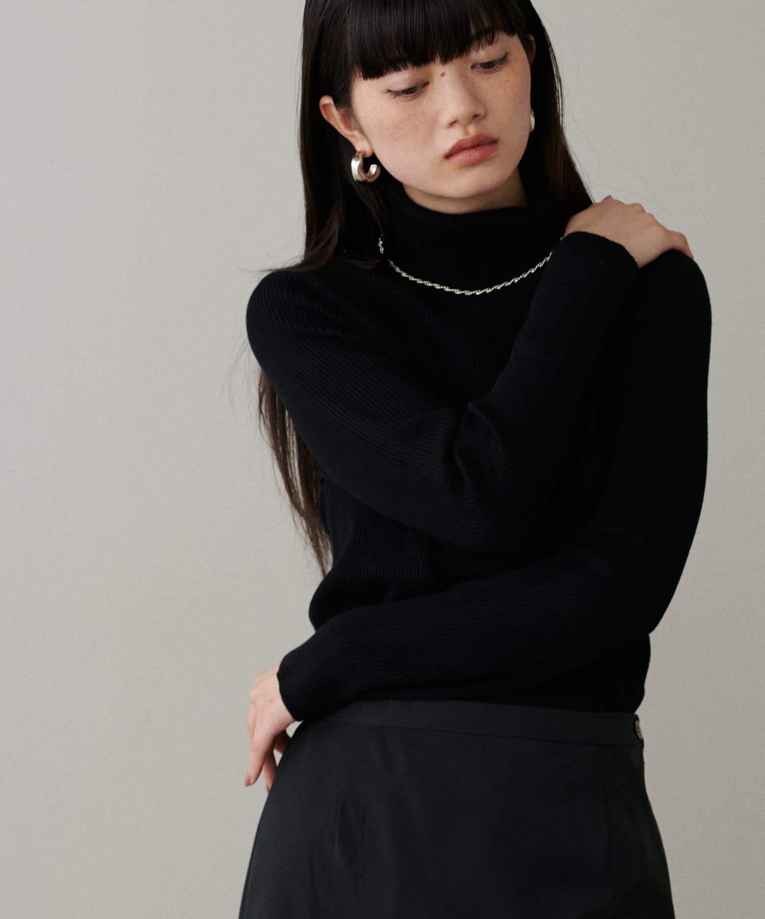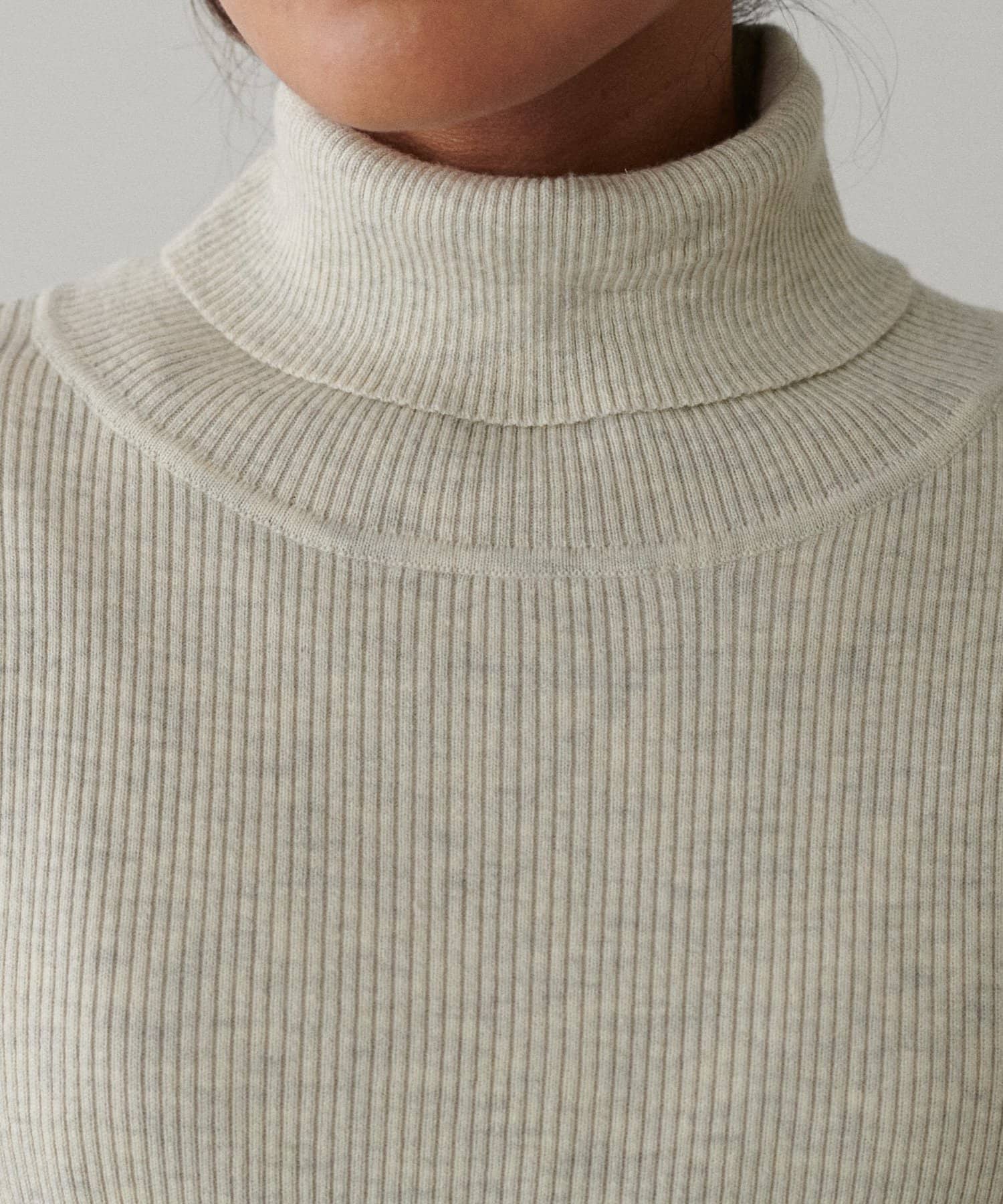 すっきりシンプルなデザインで着回しのきくリブタートルネック。