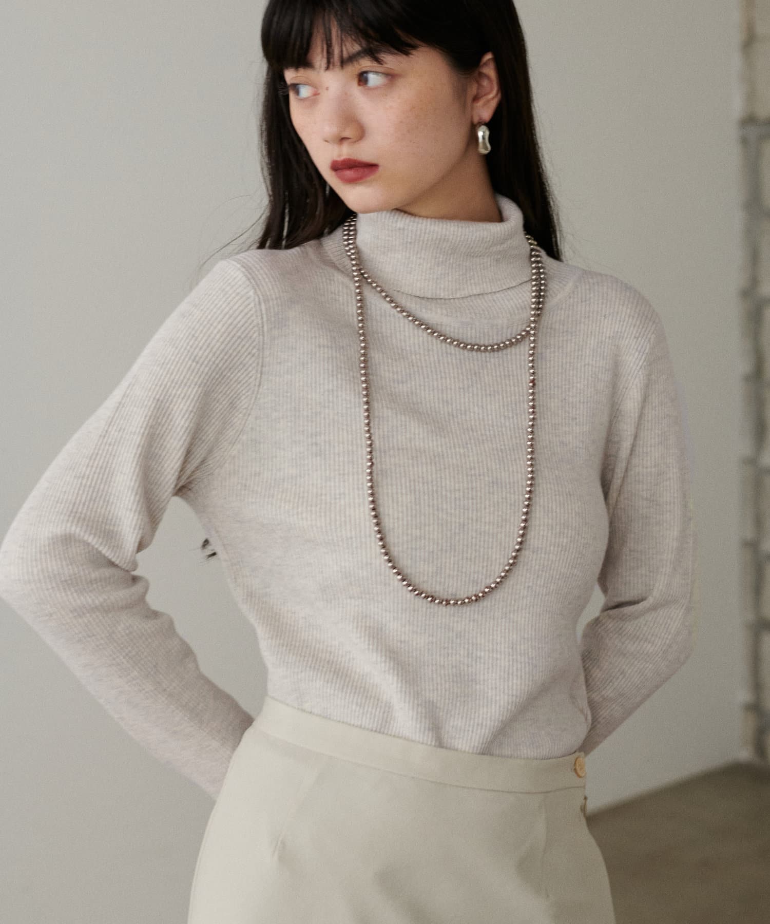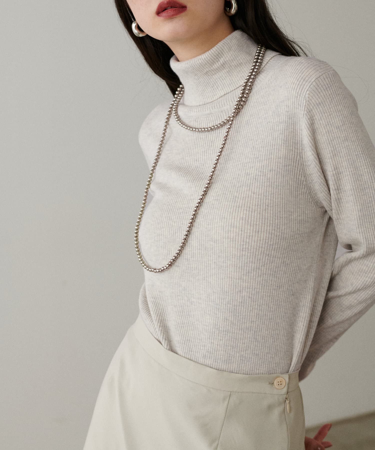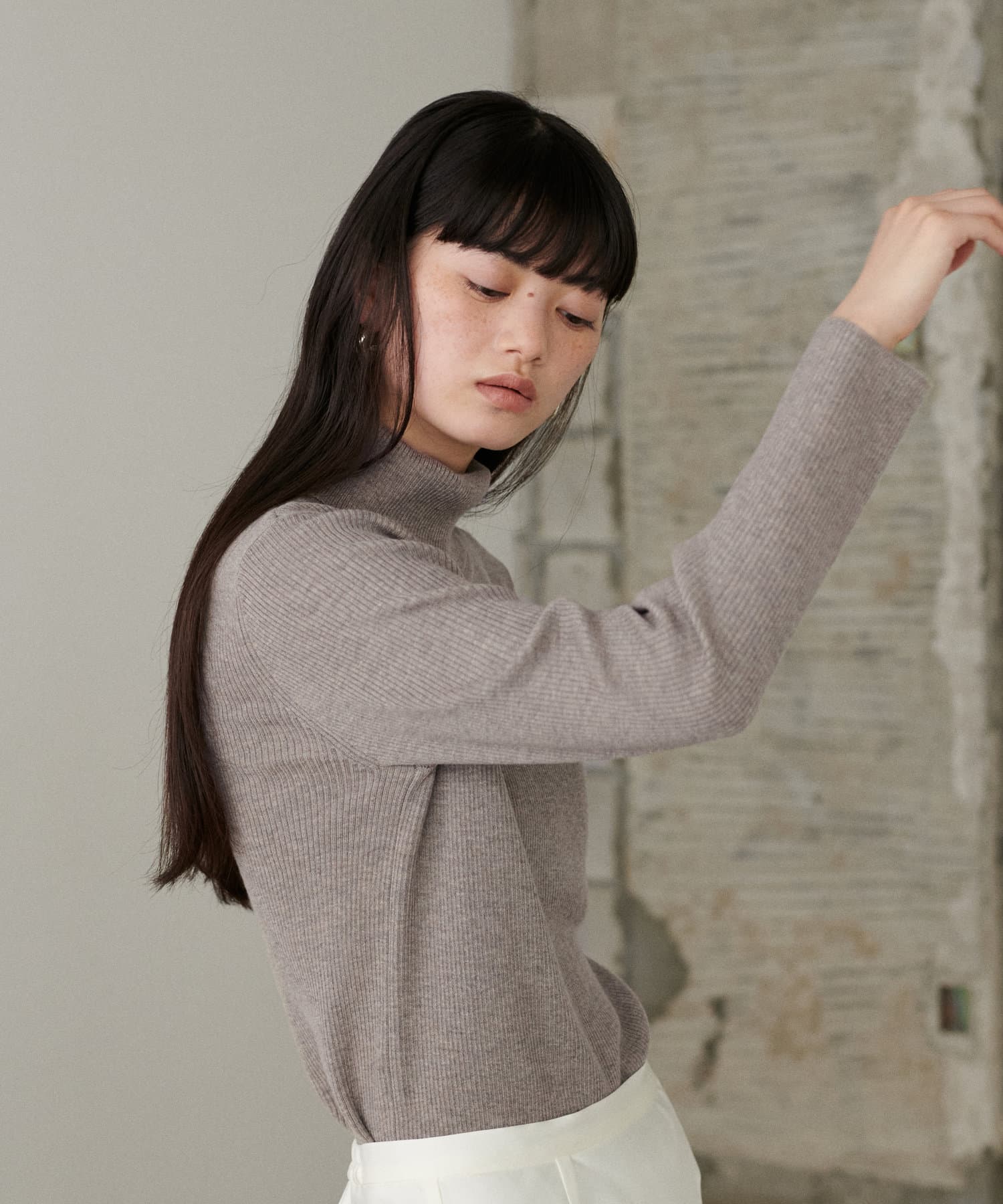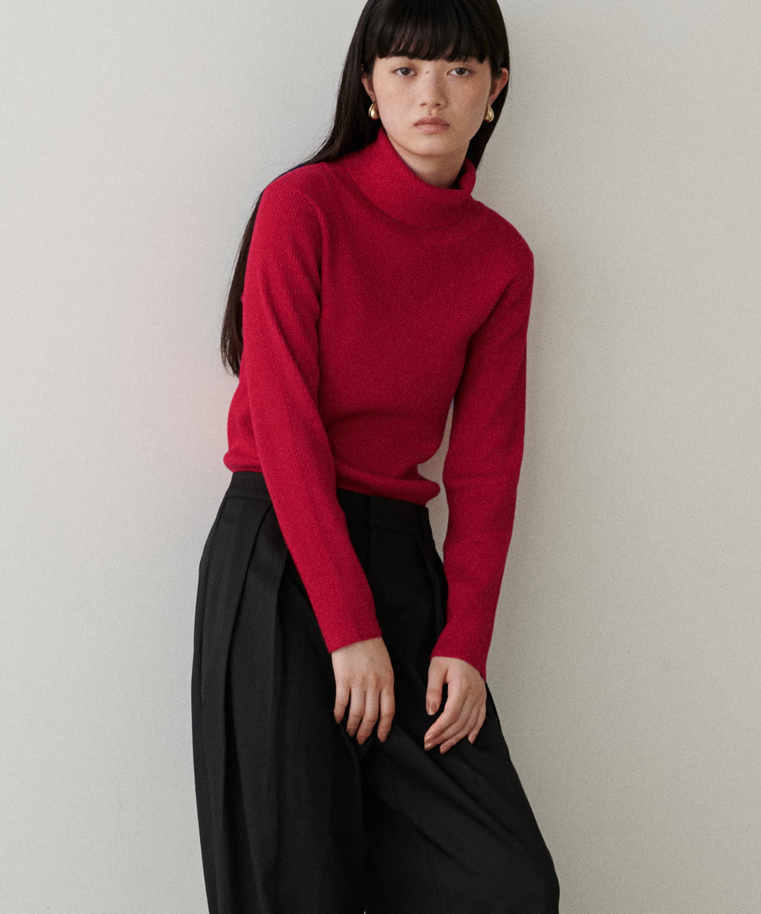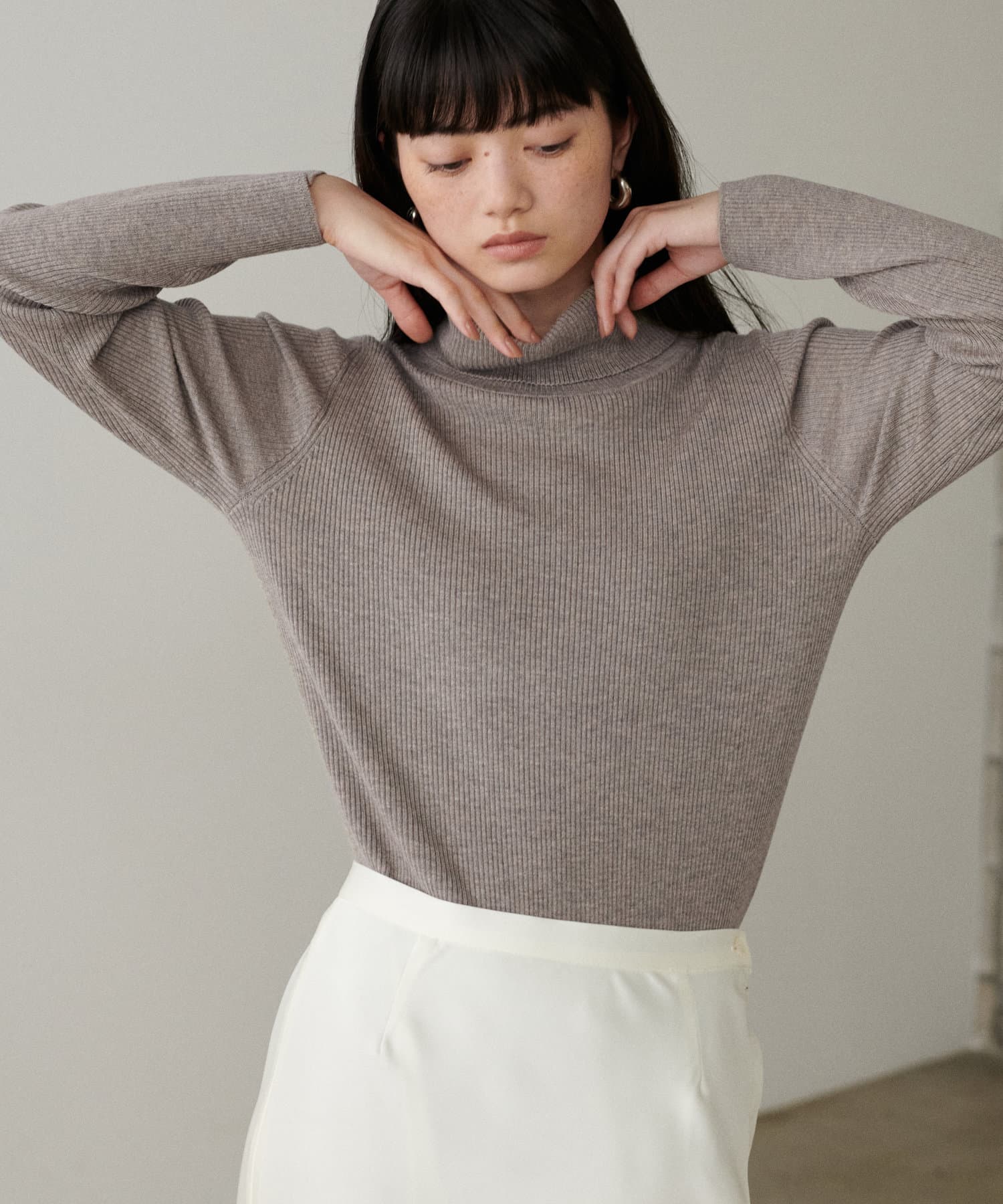 すっきりシンプルなデザインで着回しのきくリブタートルネック。