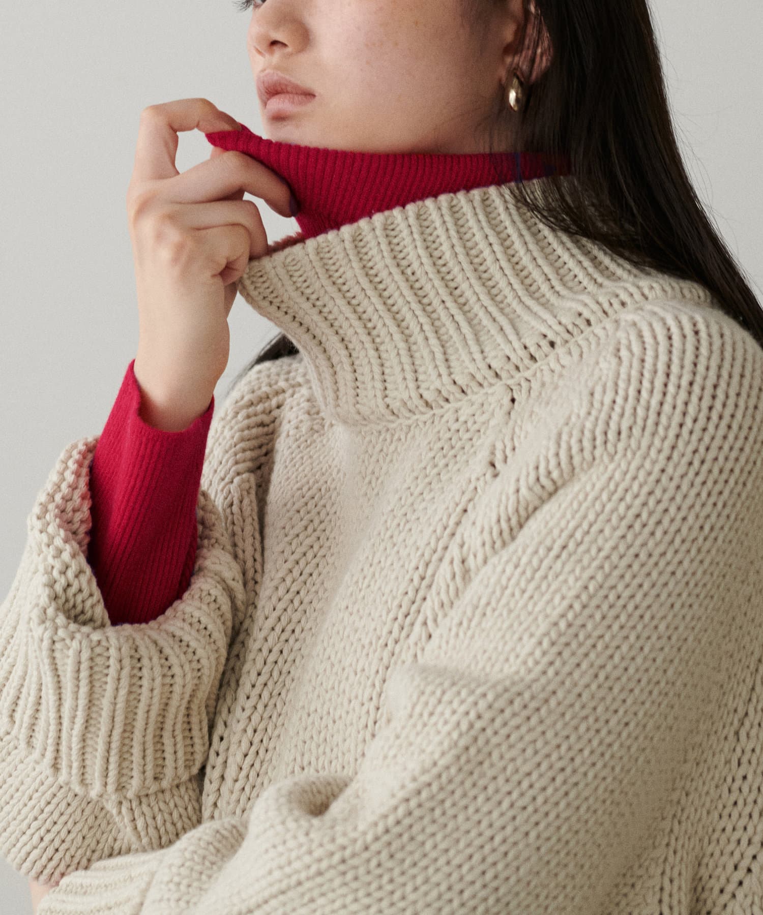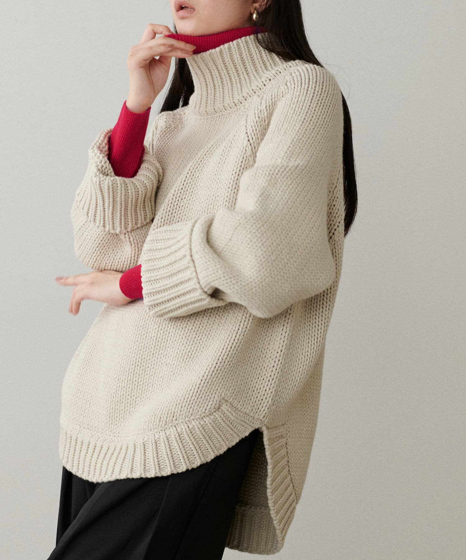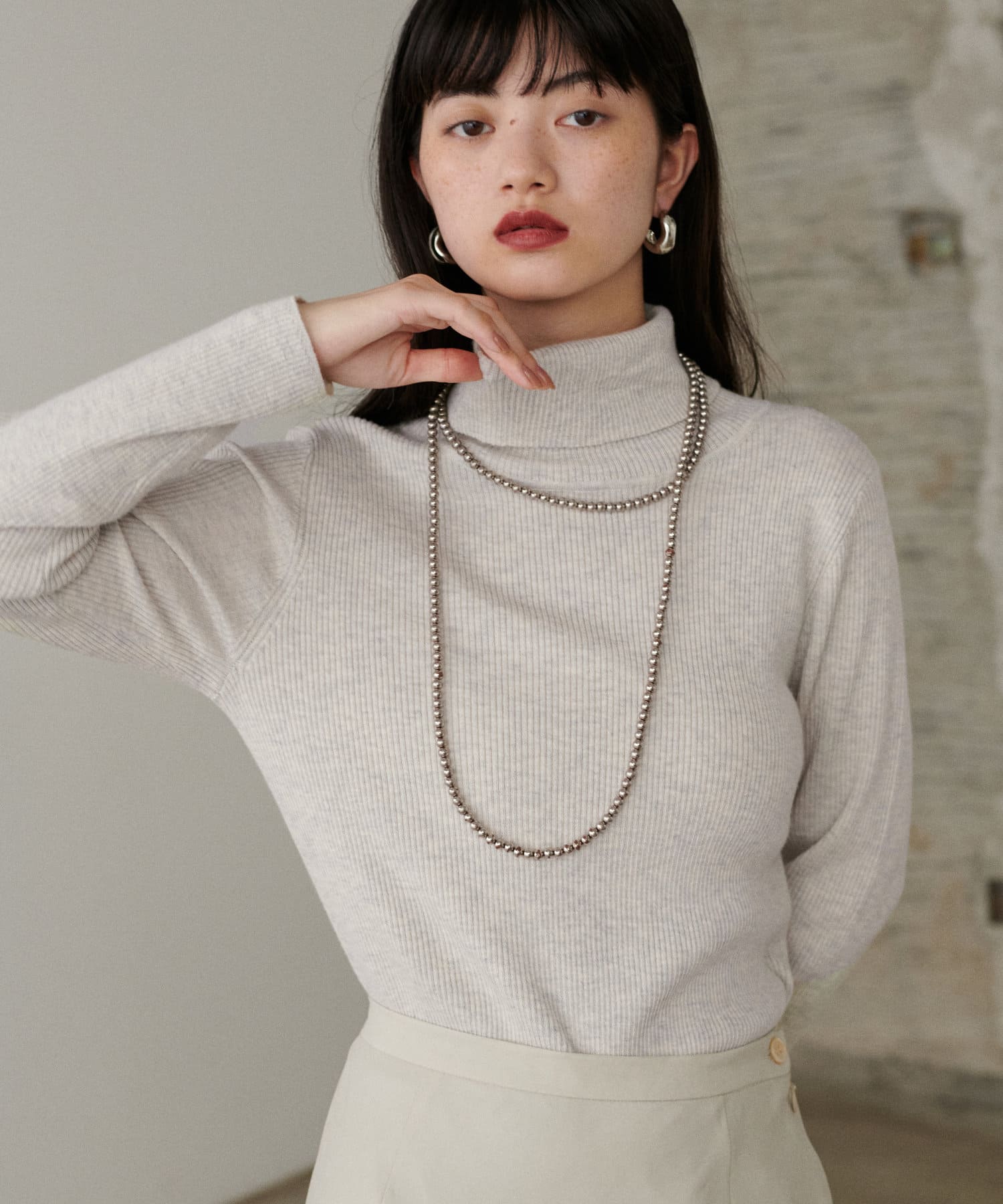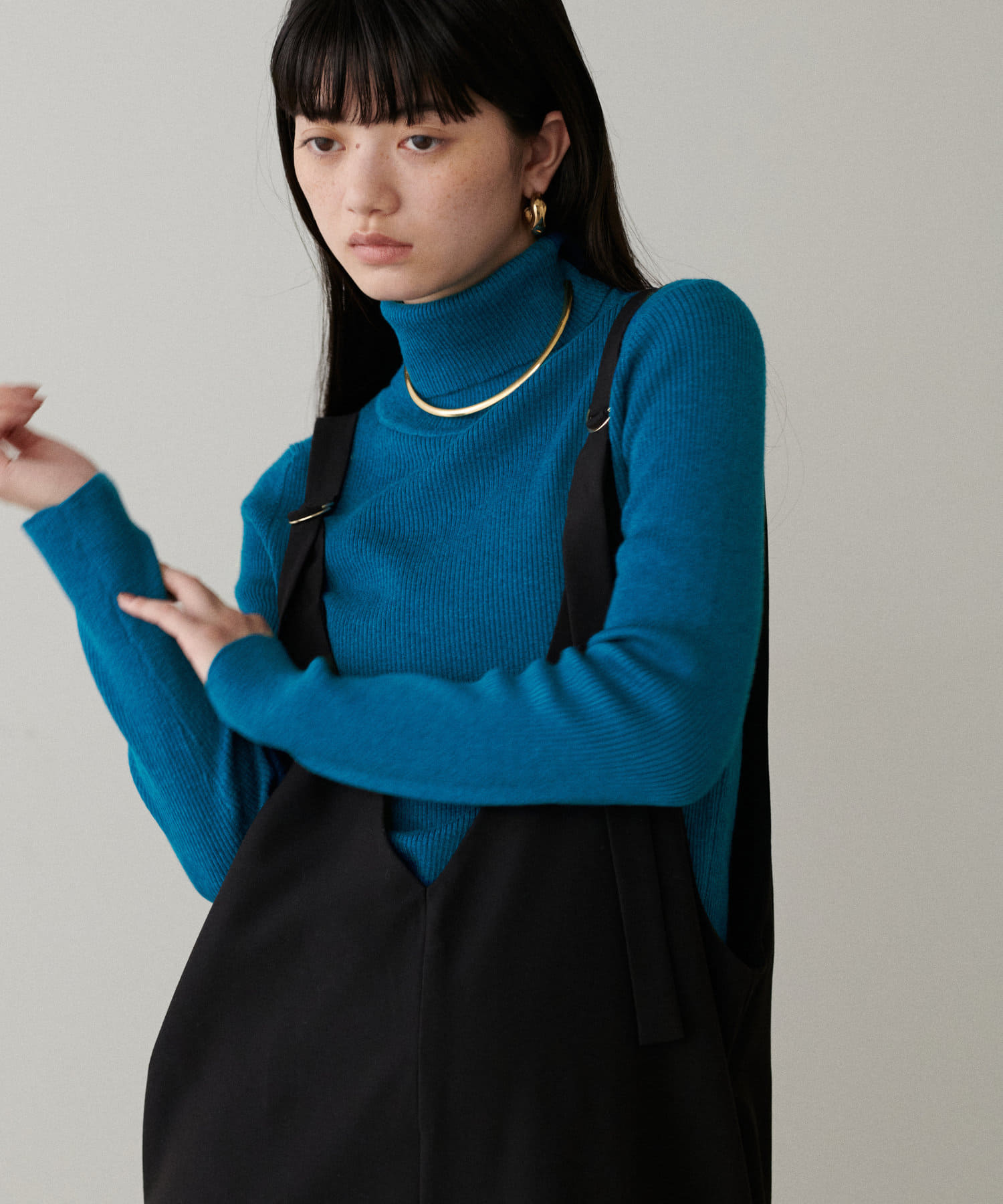すっきりシンプルなデザインで着回しのきくリブタートルネック。