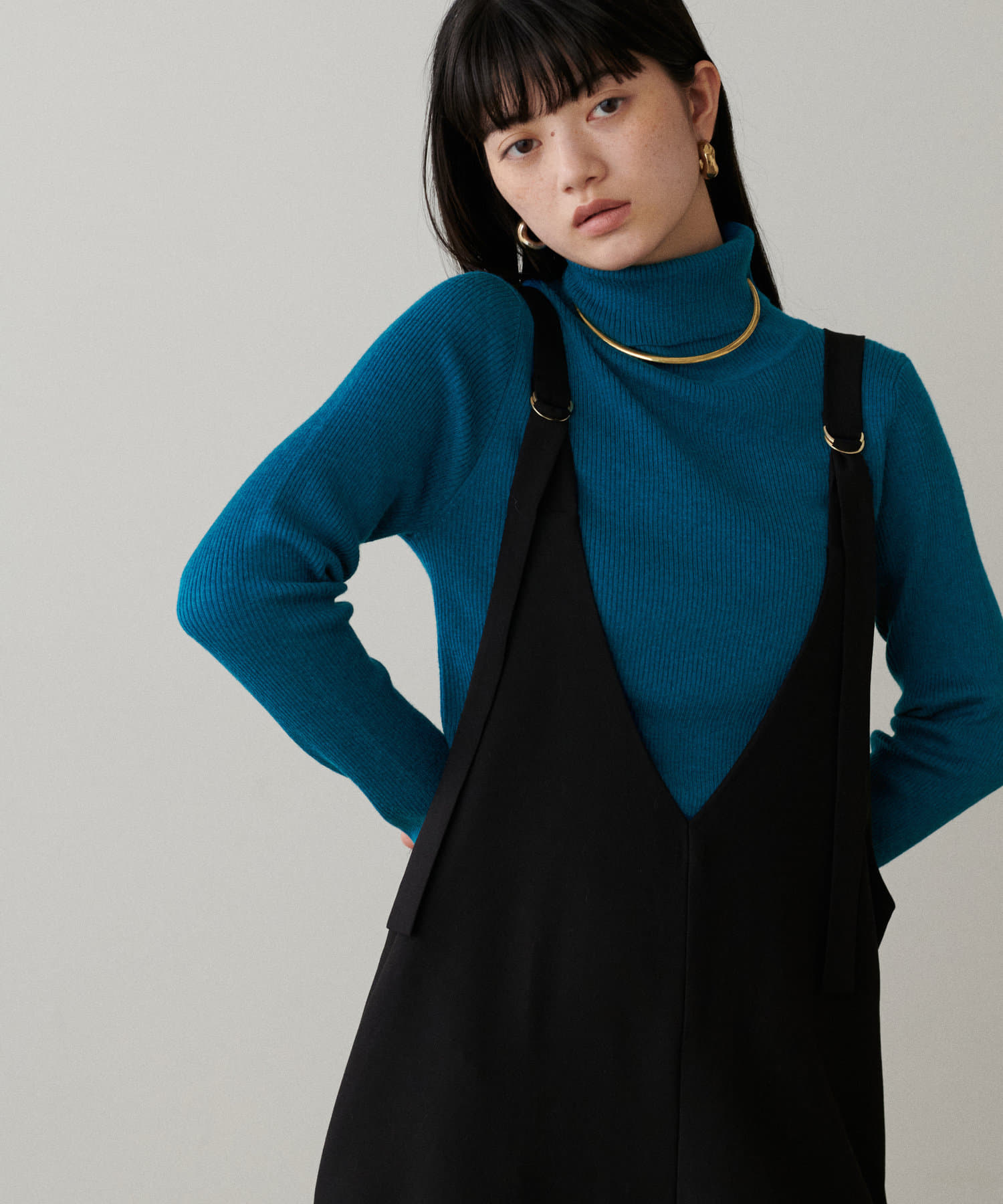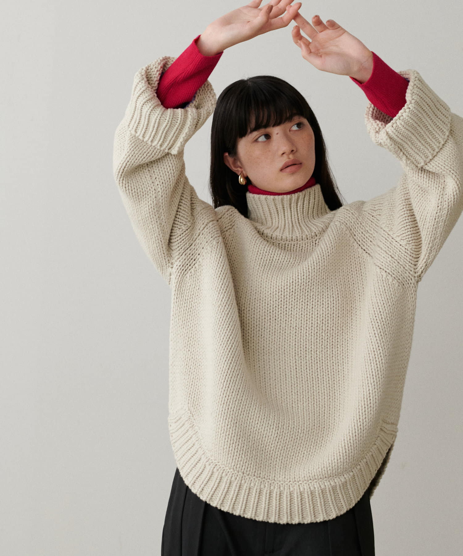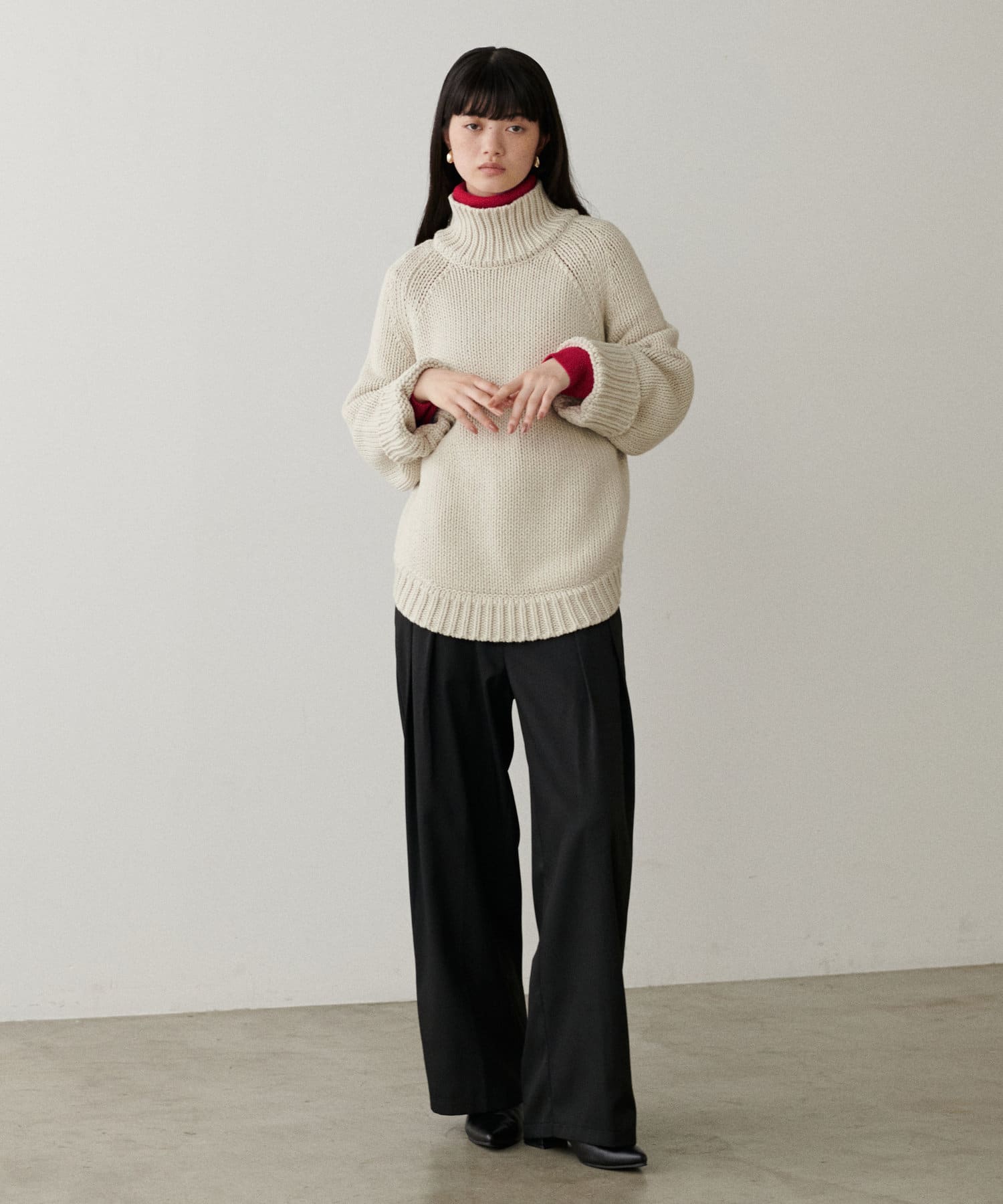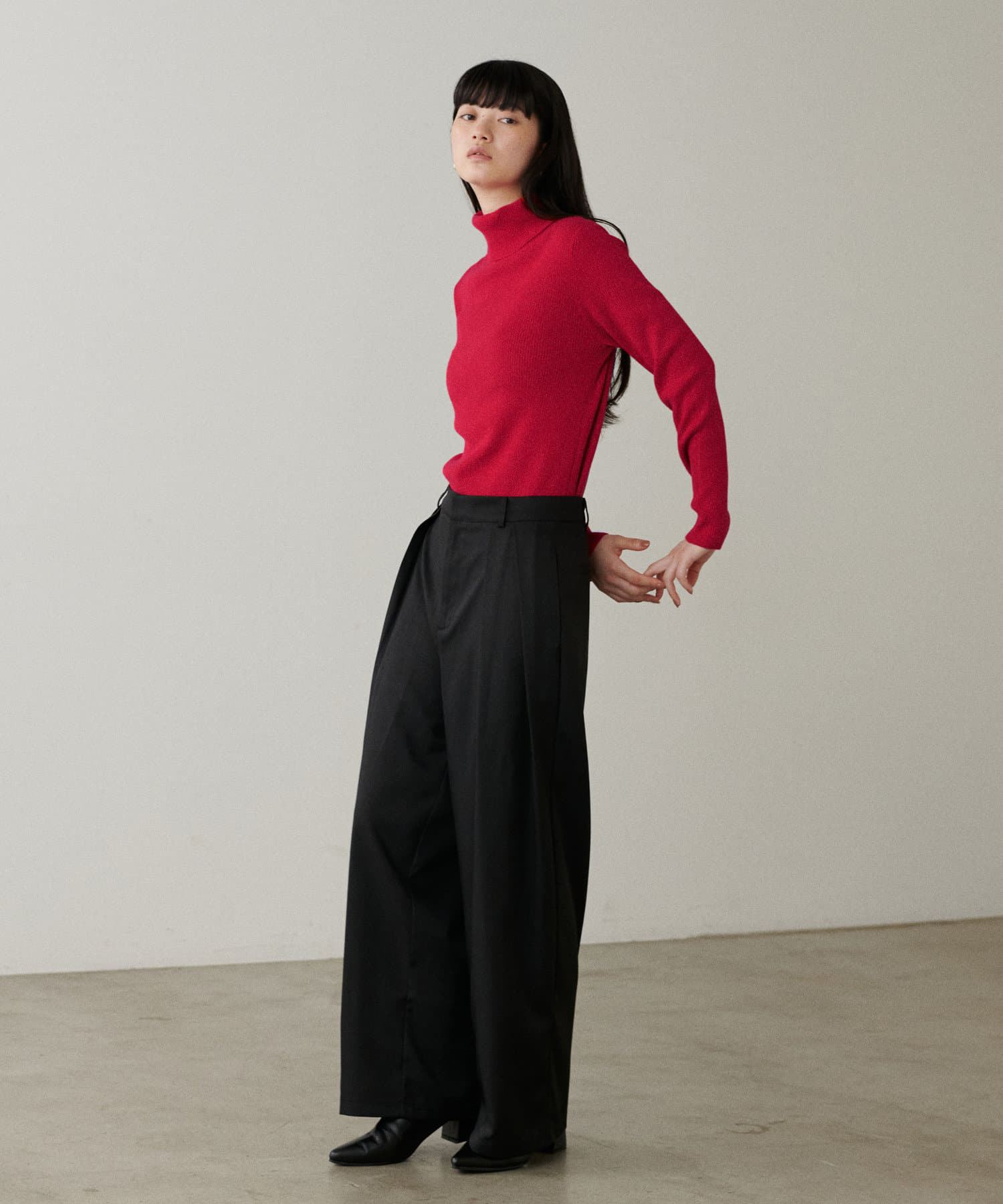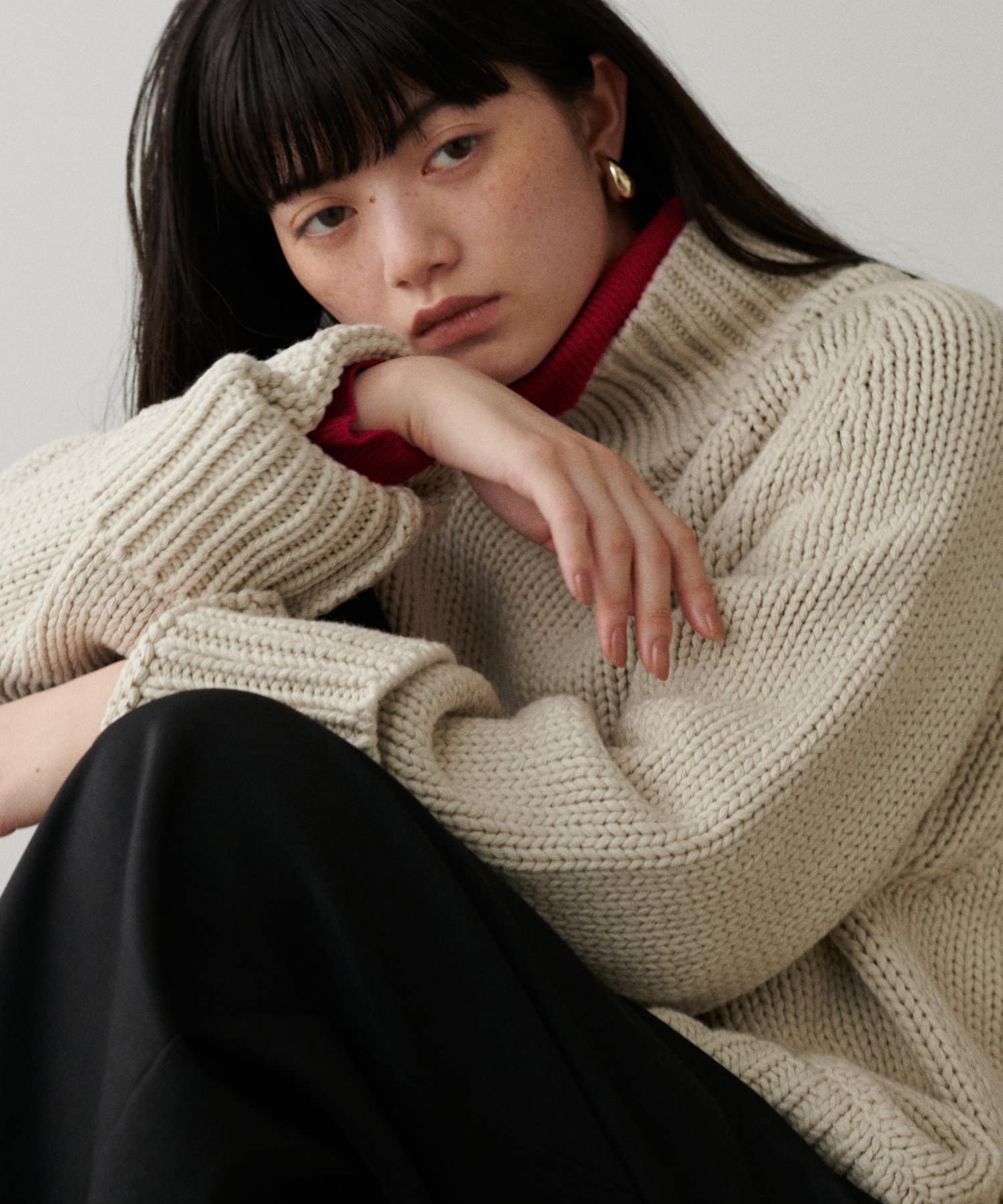 すっきりシンプルなデザインで着回しのきくリブタートルネック。