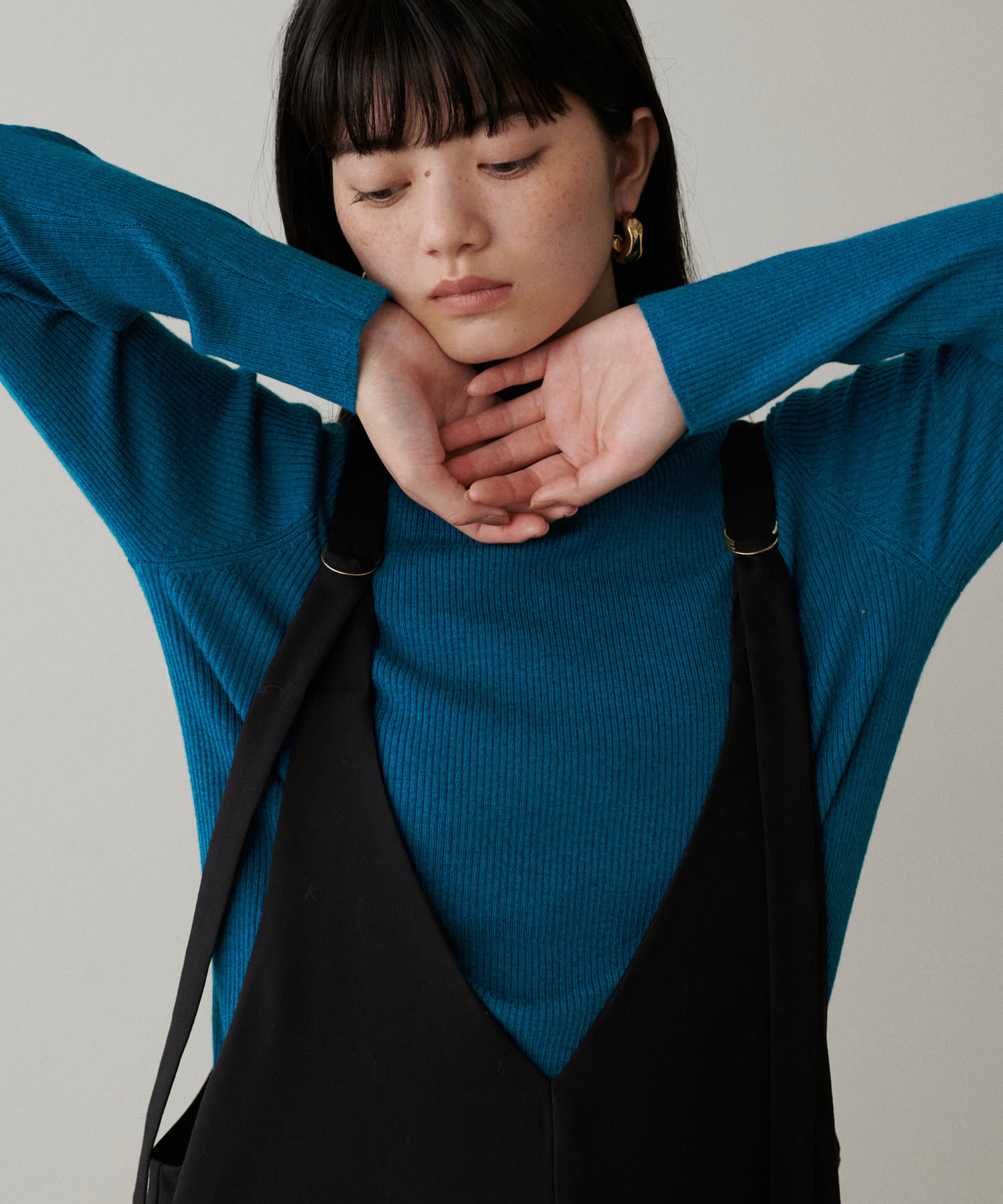 ボディに寄り沿うリブニット素材を使用し、肌に優しく柔らかで、