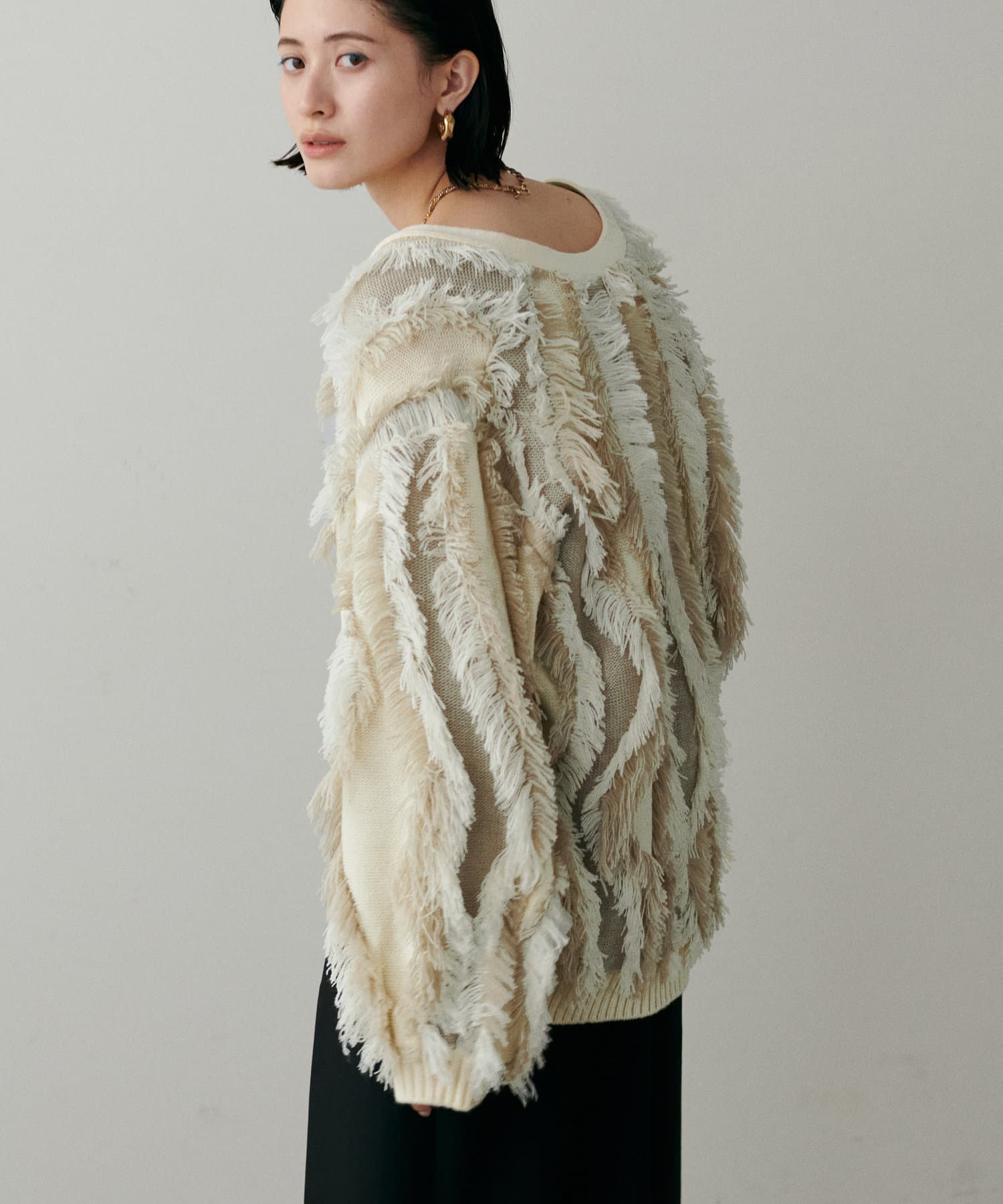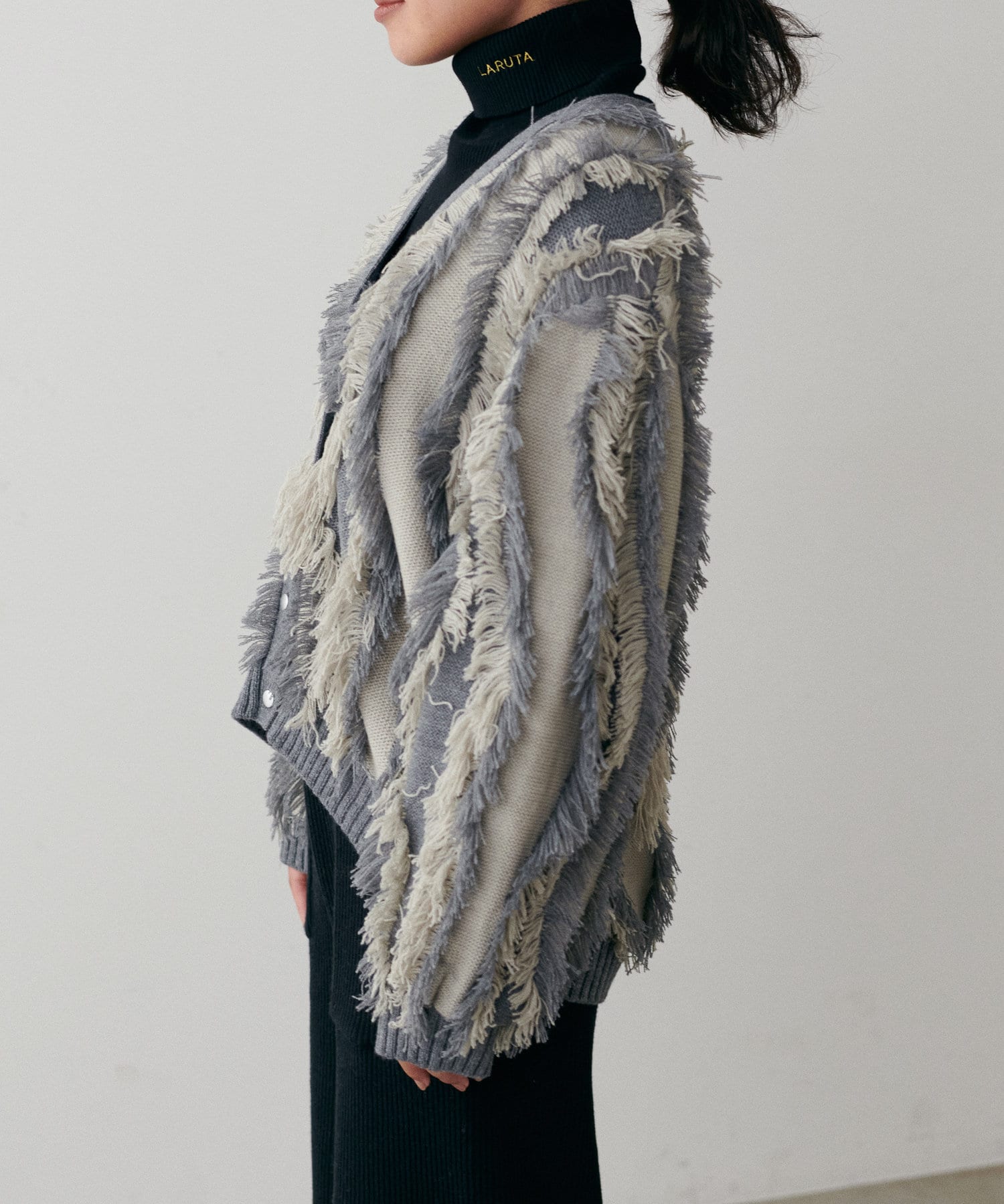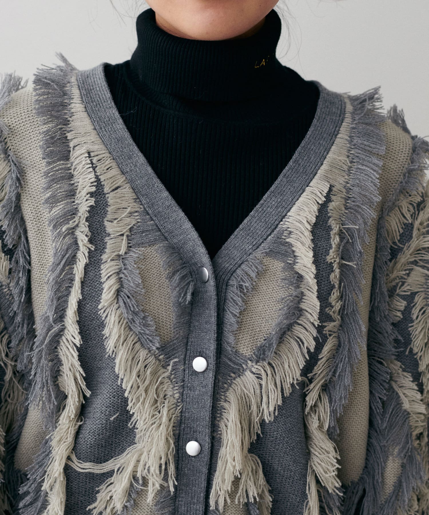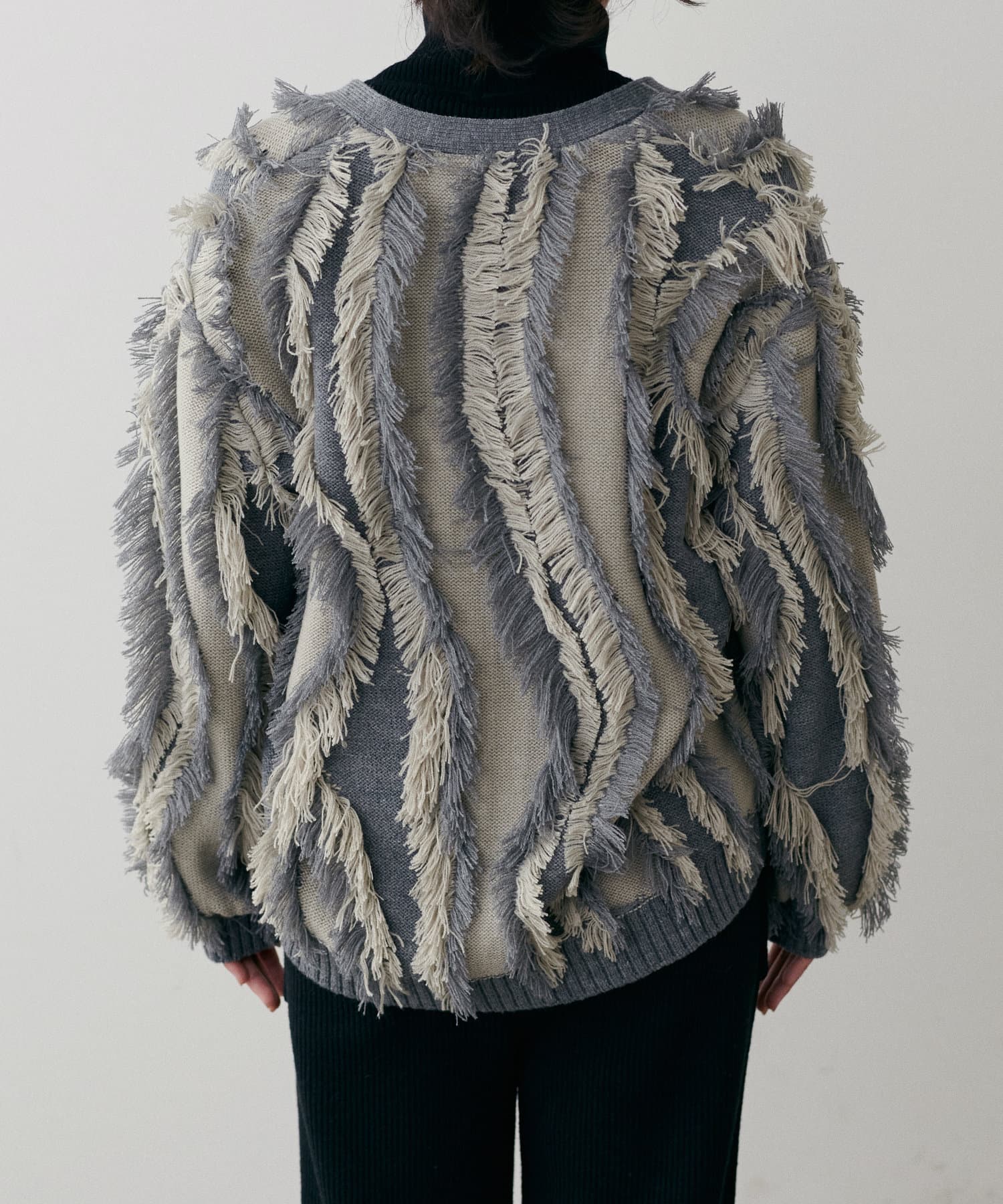 ゆったりとしたシルエットにデコルテをすっきりと見せてくれるVネックのカーデ。