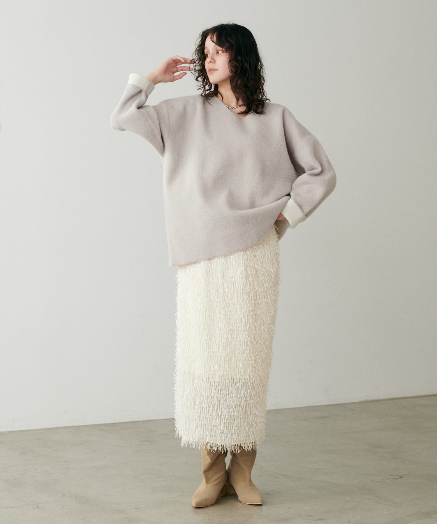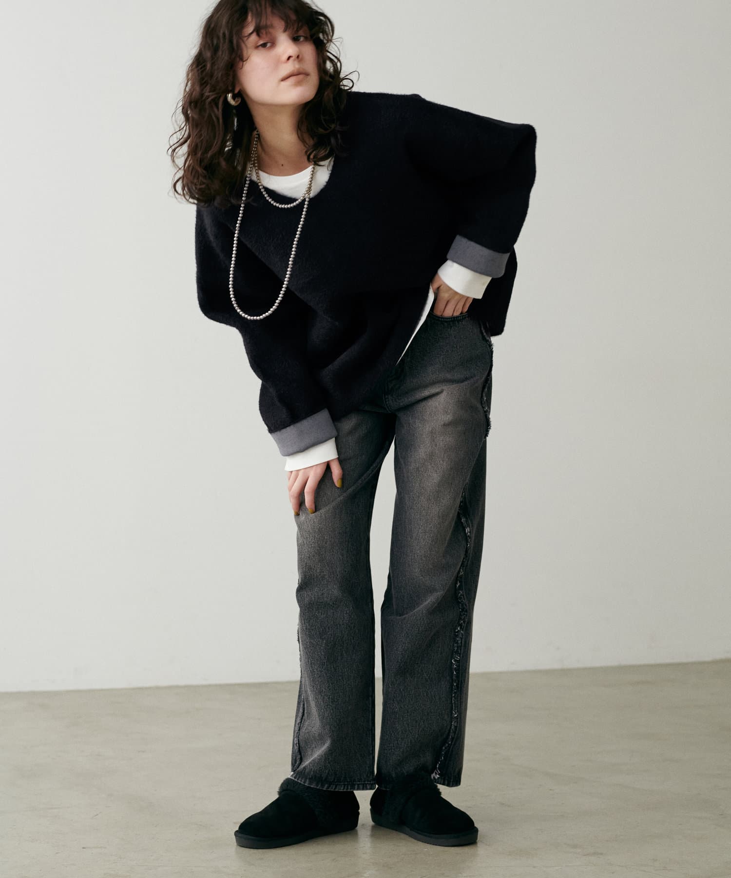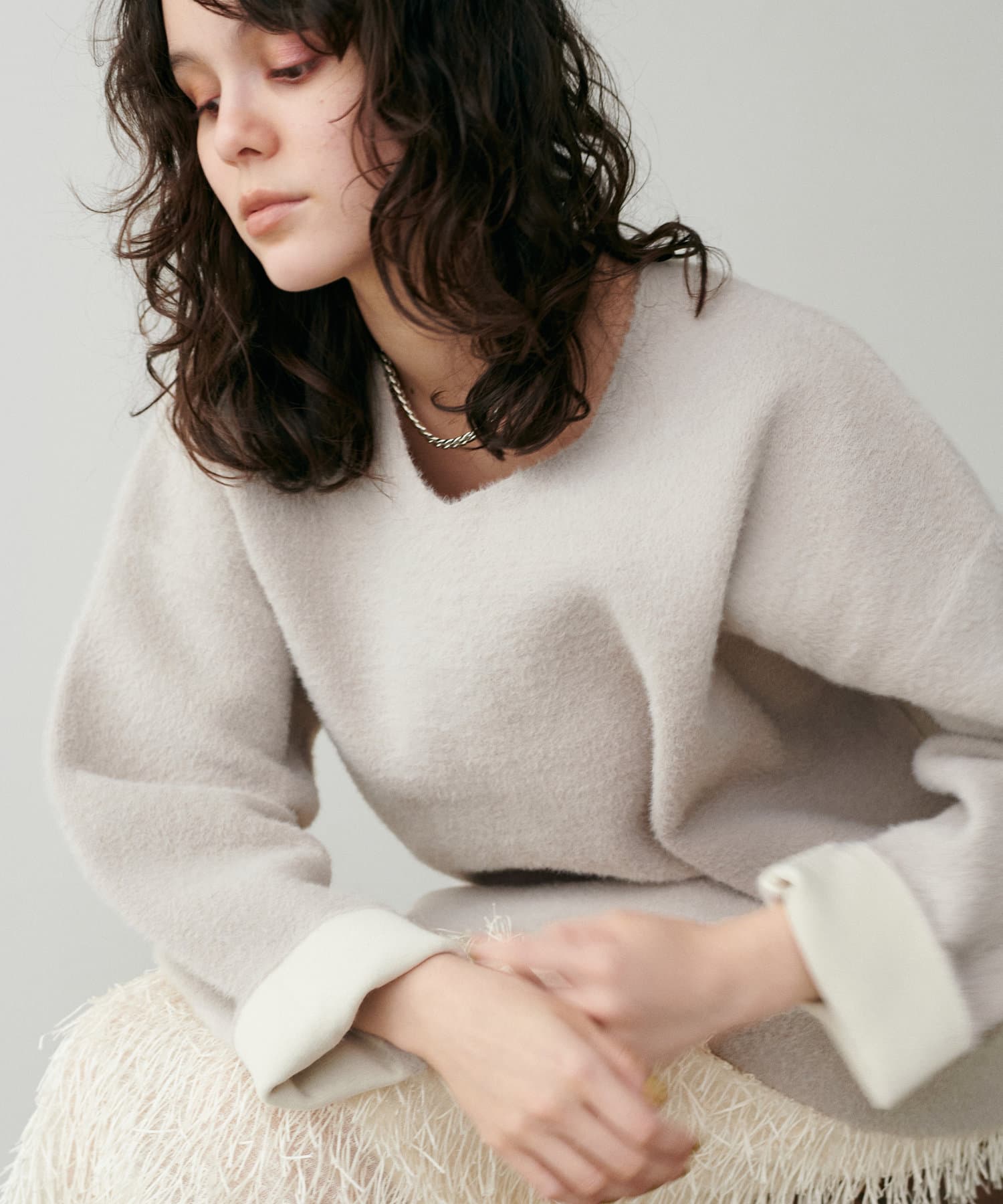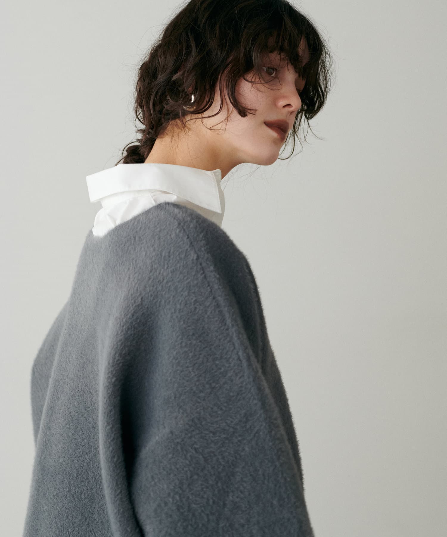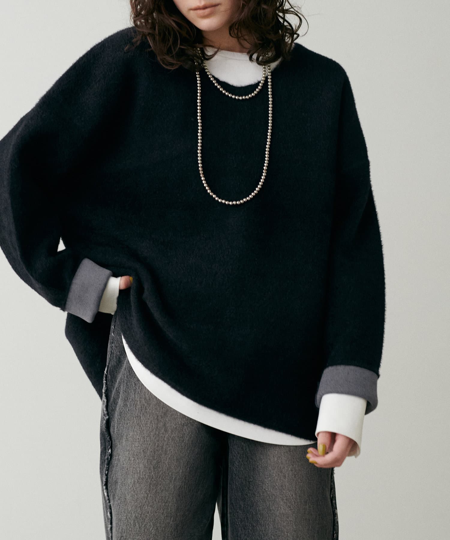 襟ぐりが広めなので、シャツやタートルネックをインしても。