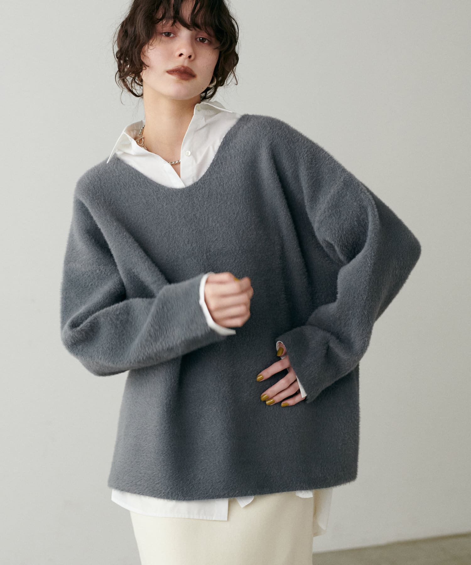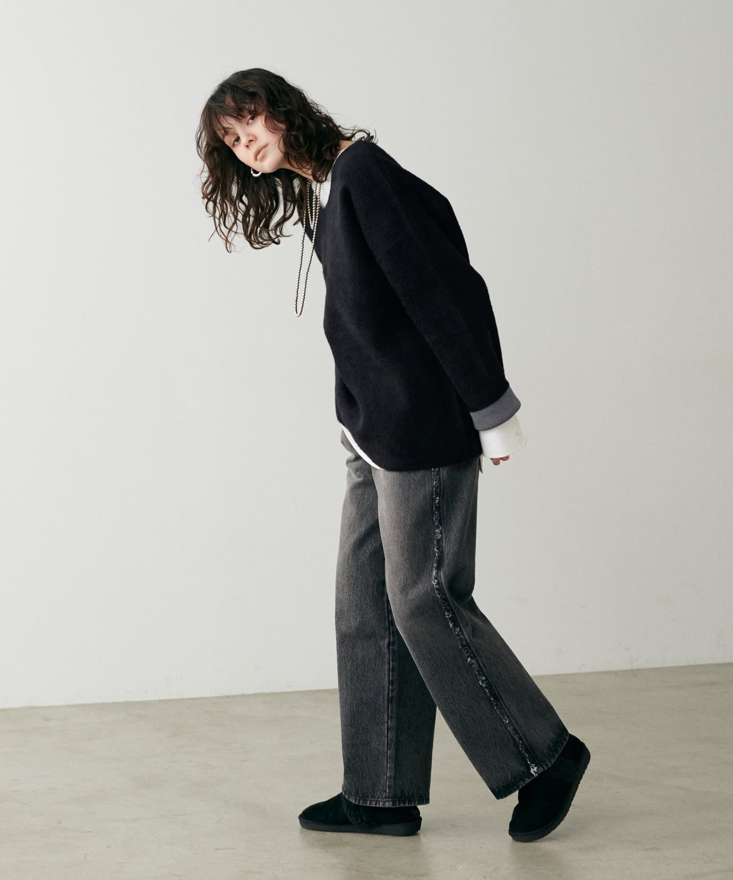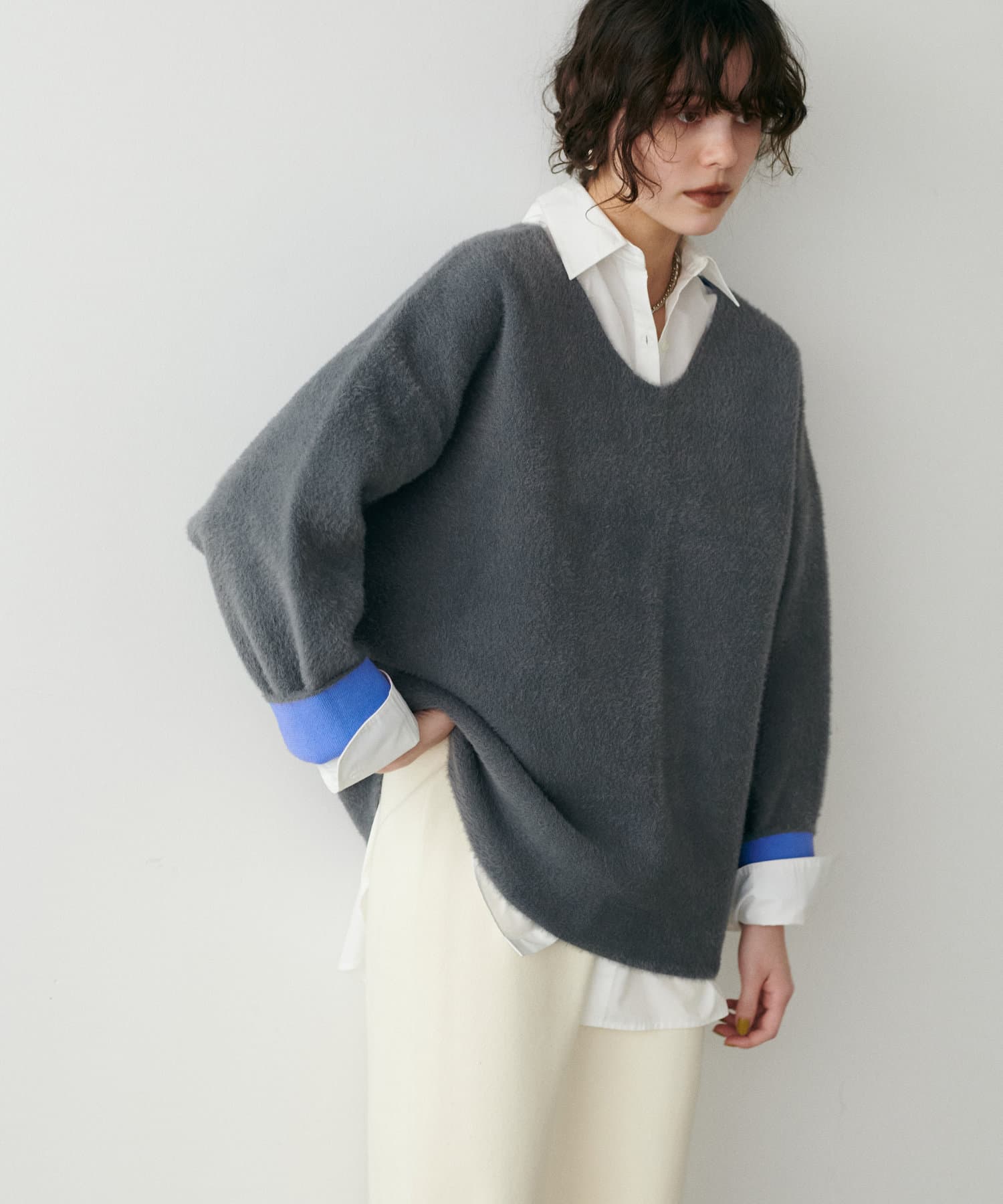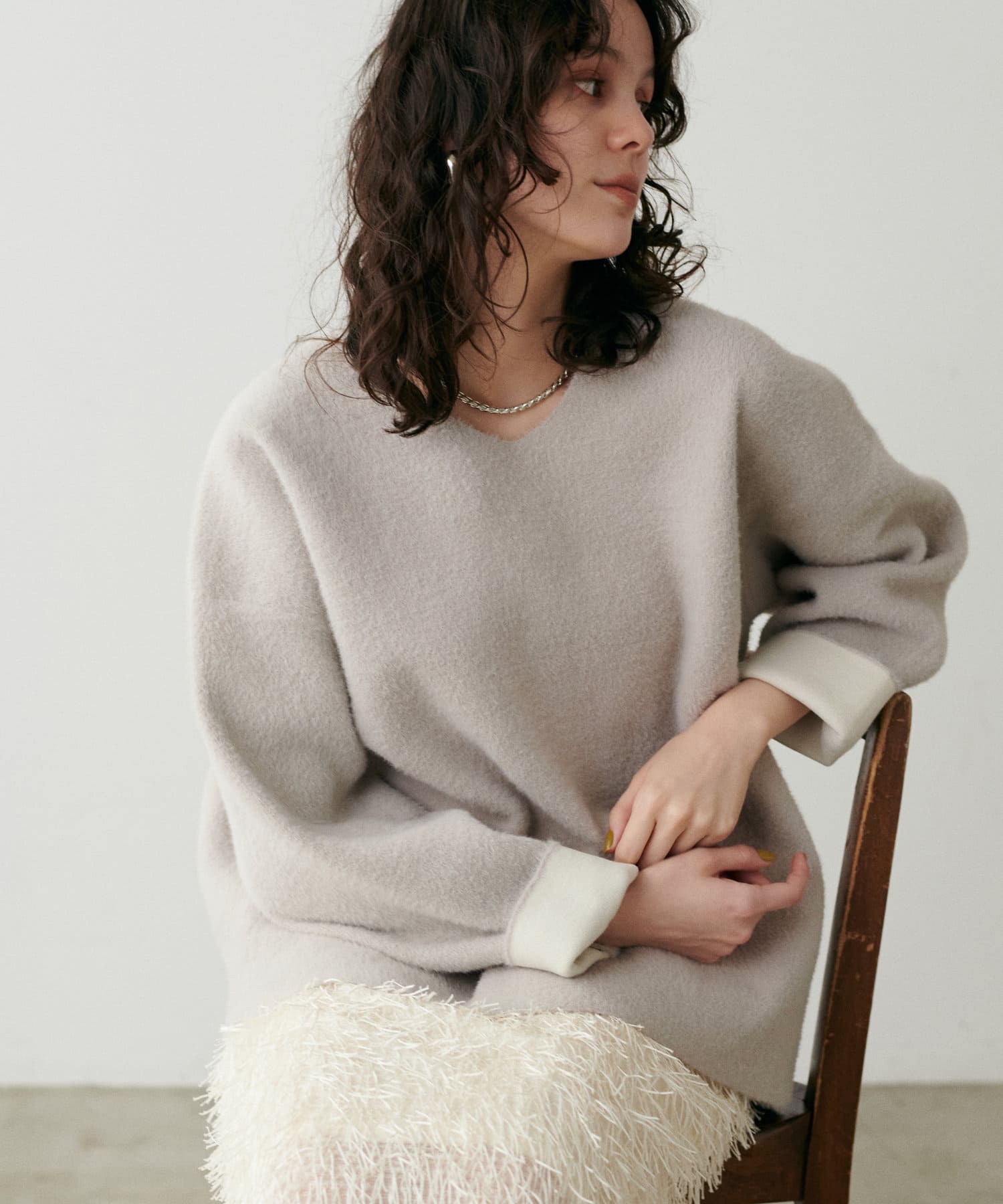 襟ぐりが広めなので、シャツやタートルネックをインしても。