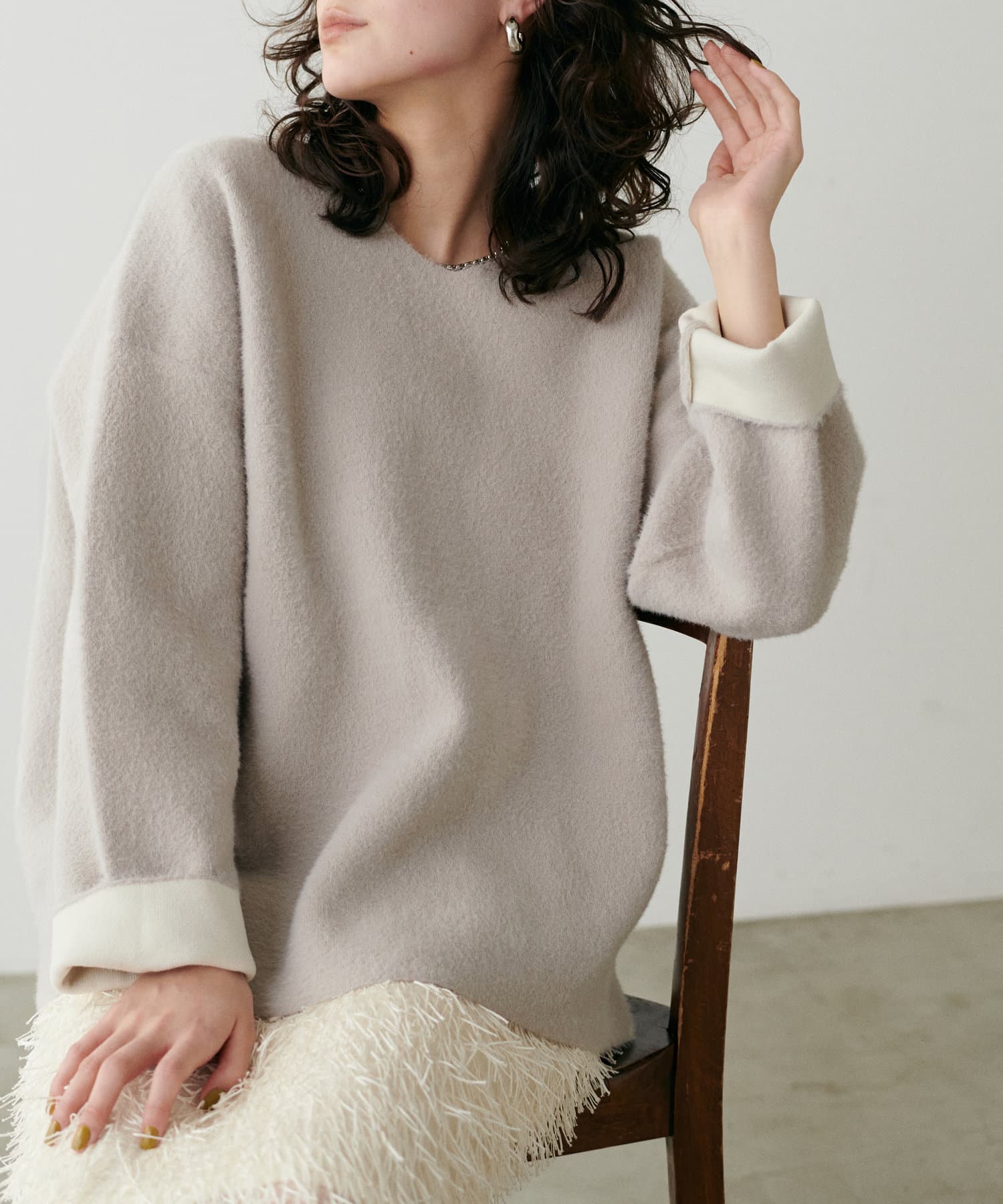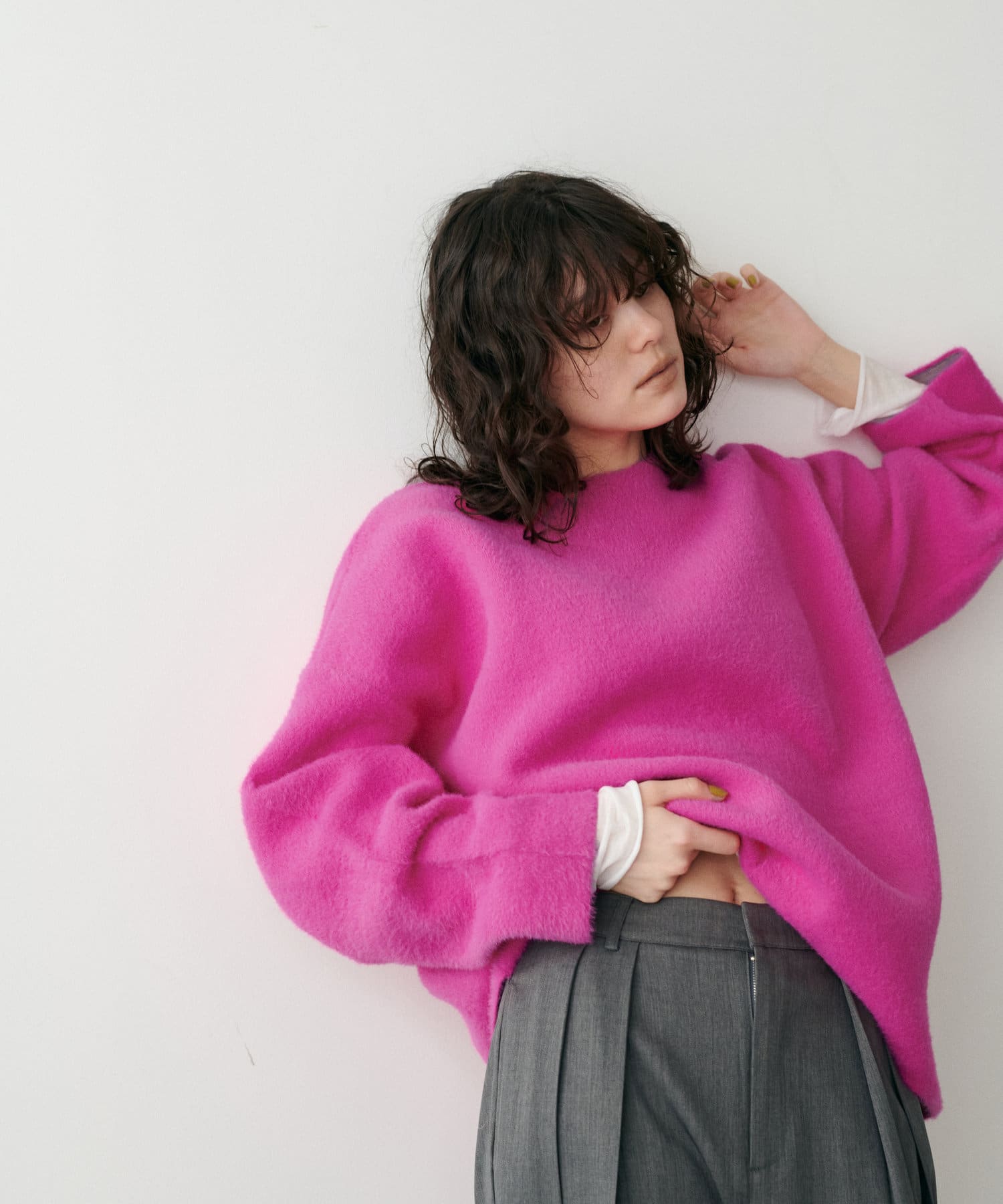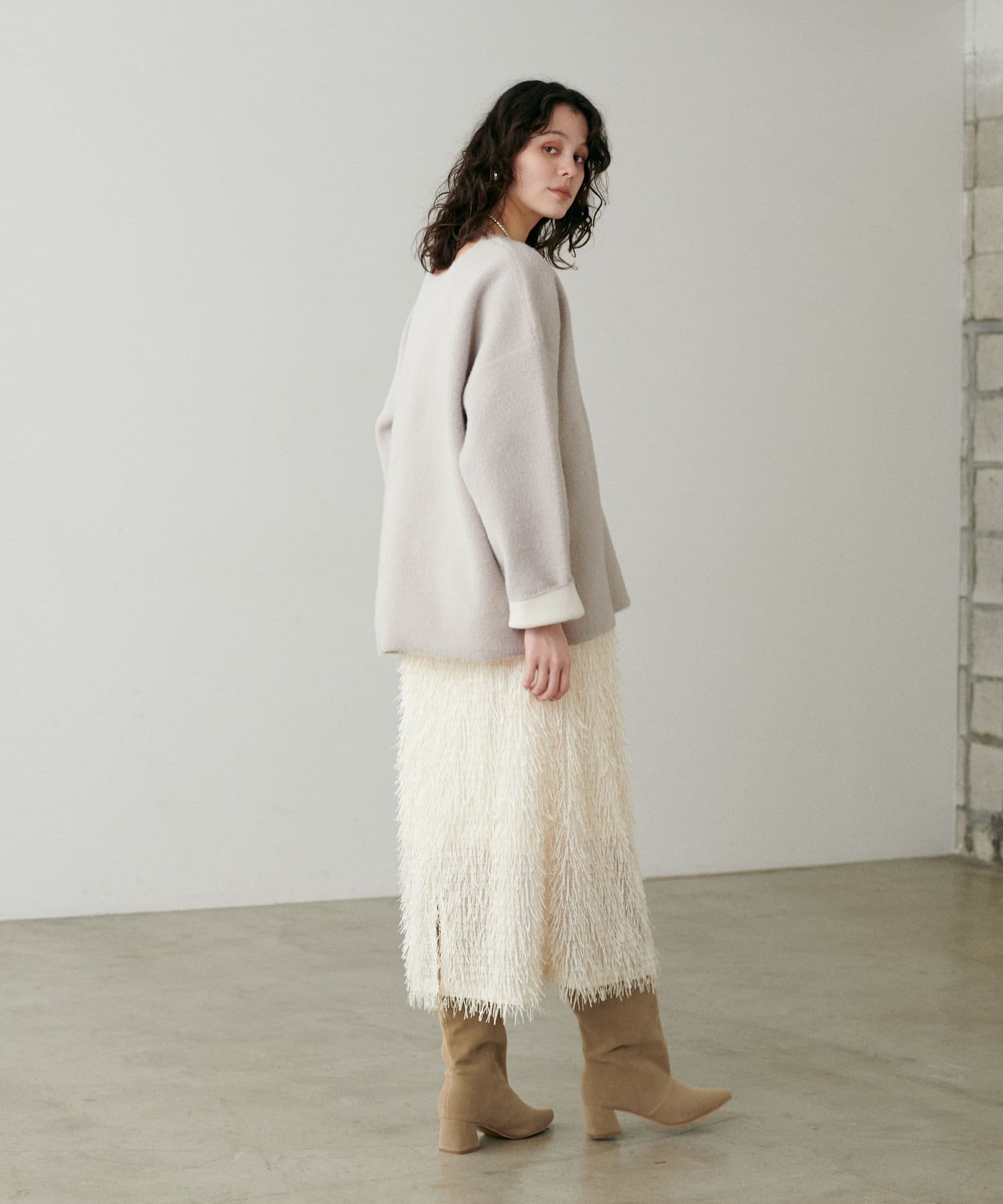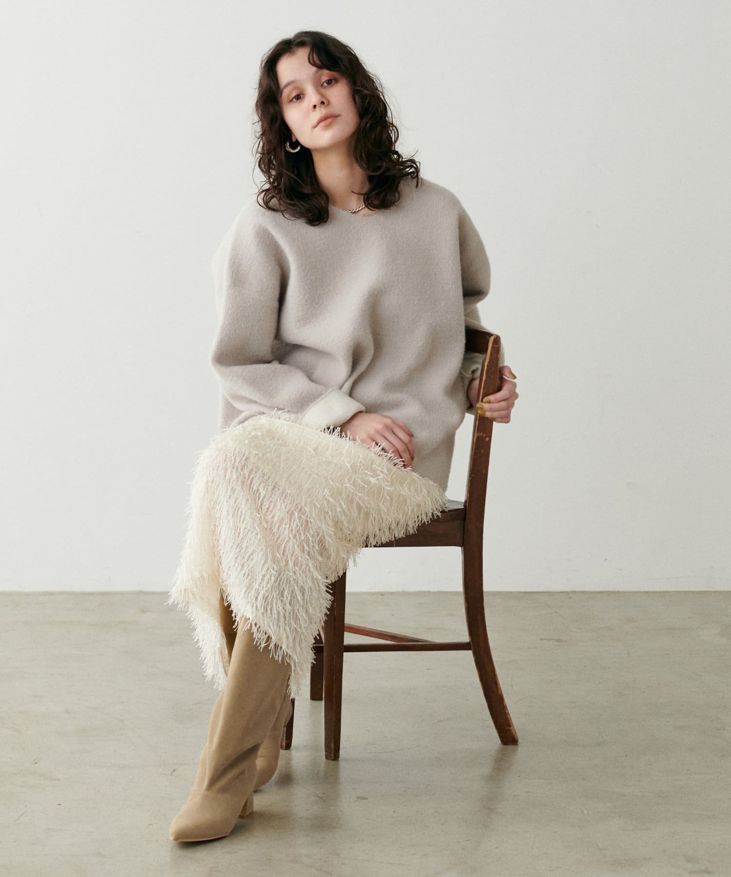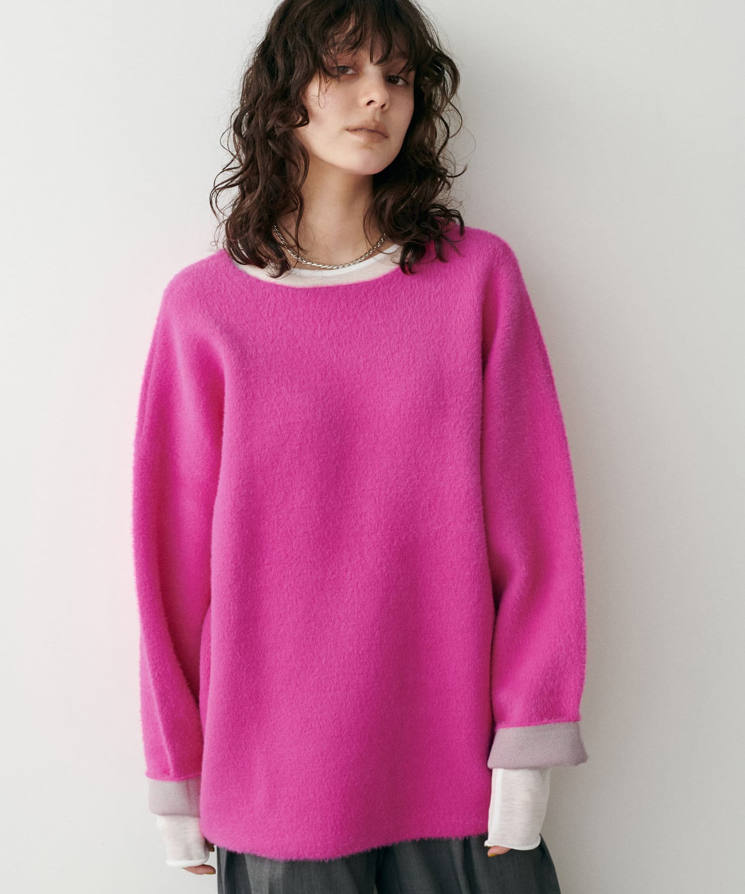 襟ぐりが広めなので、シャツやタートルネックをインしても。