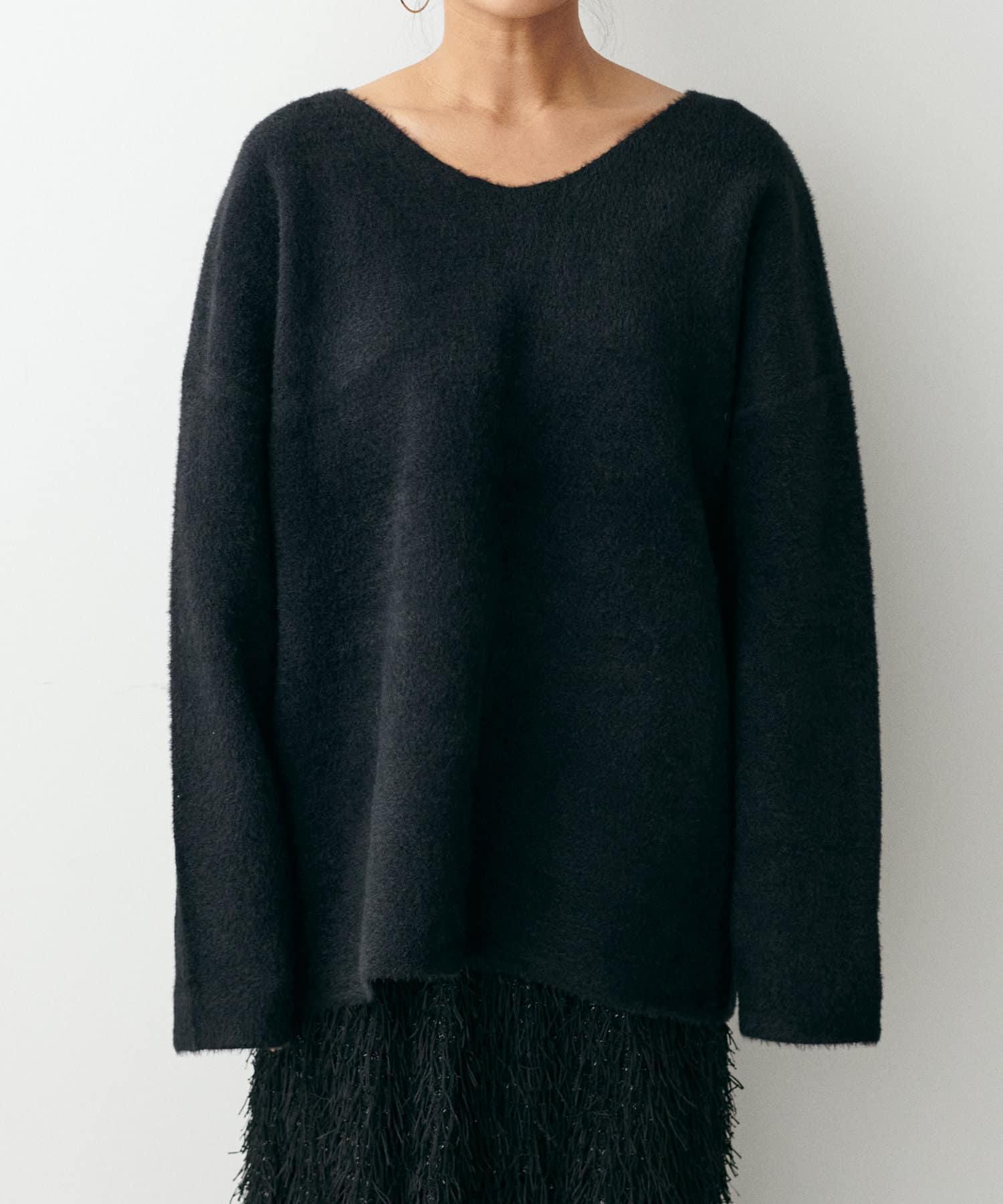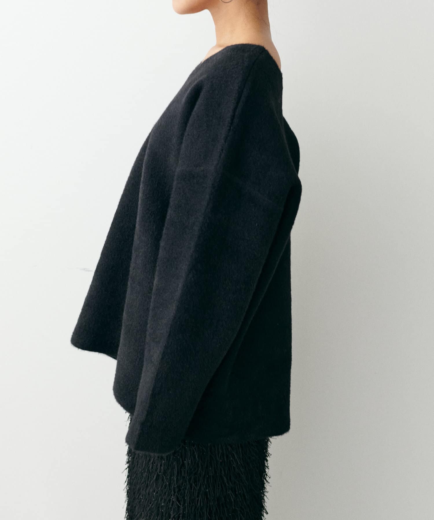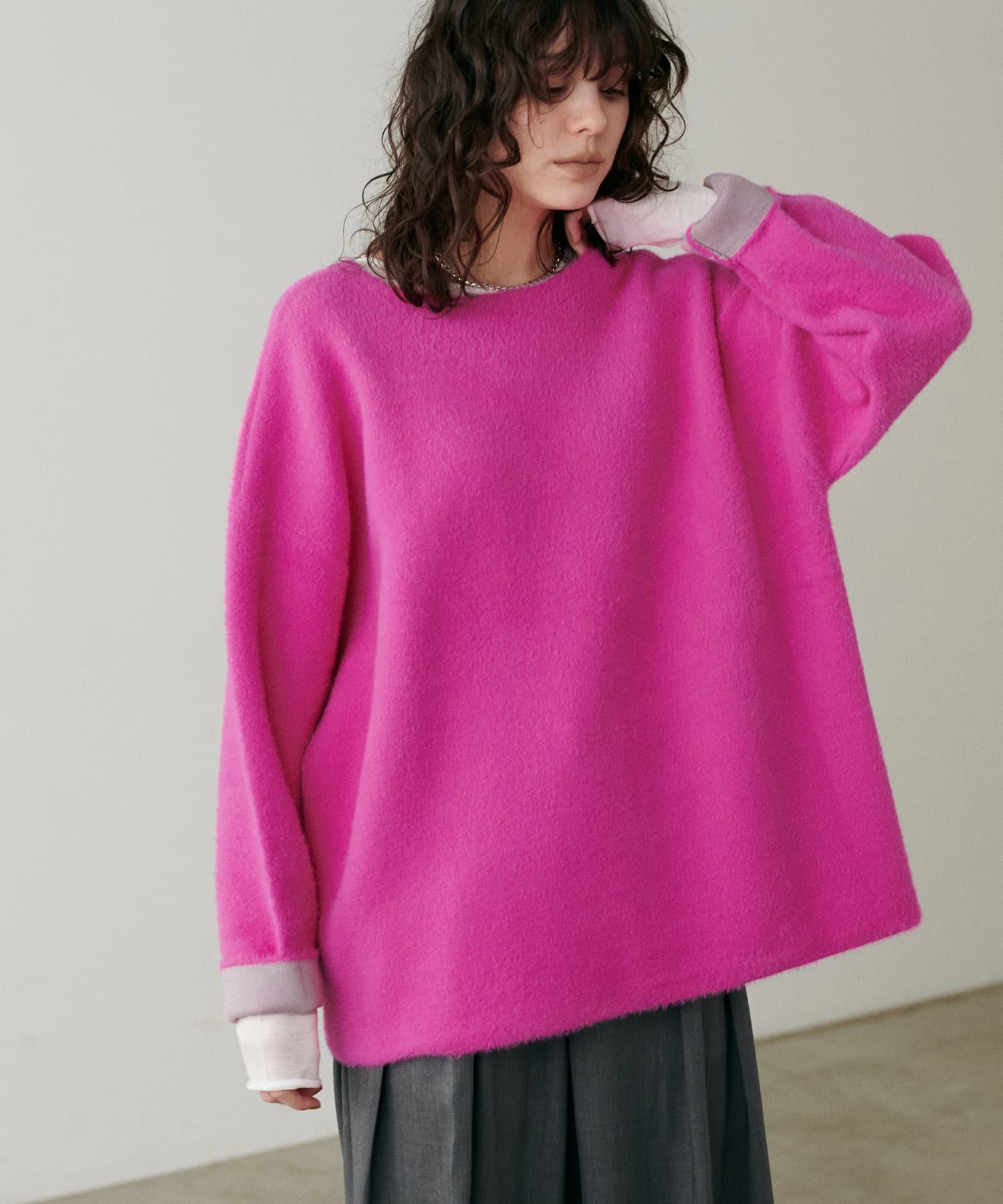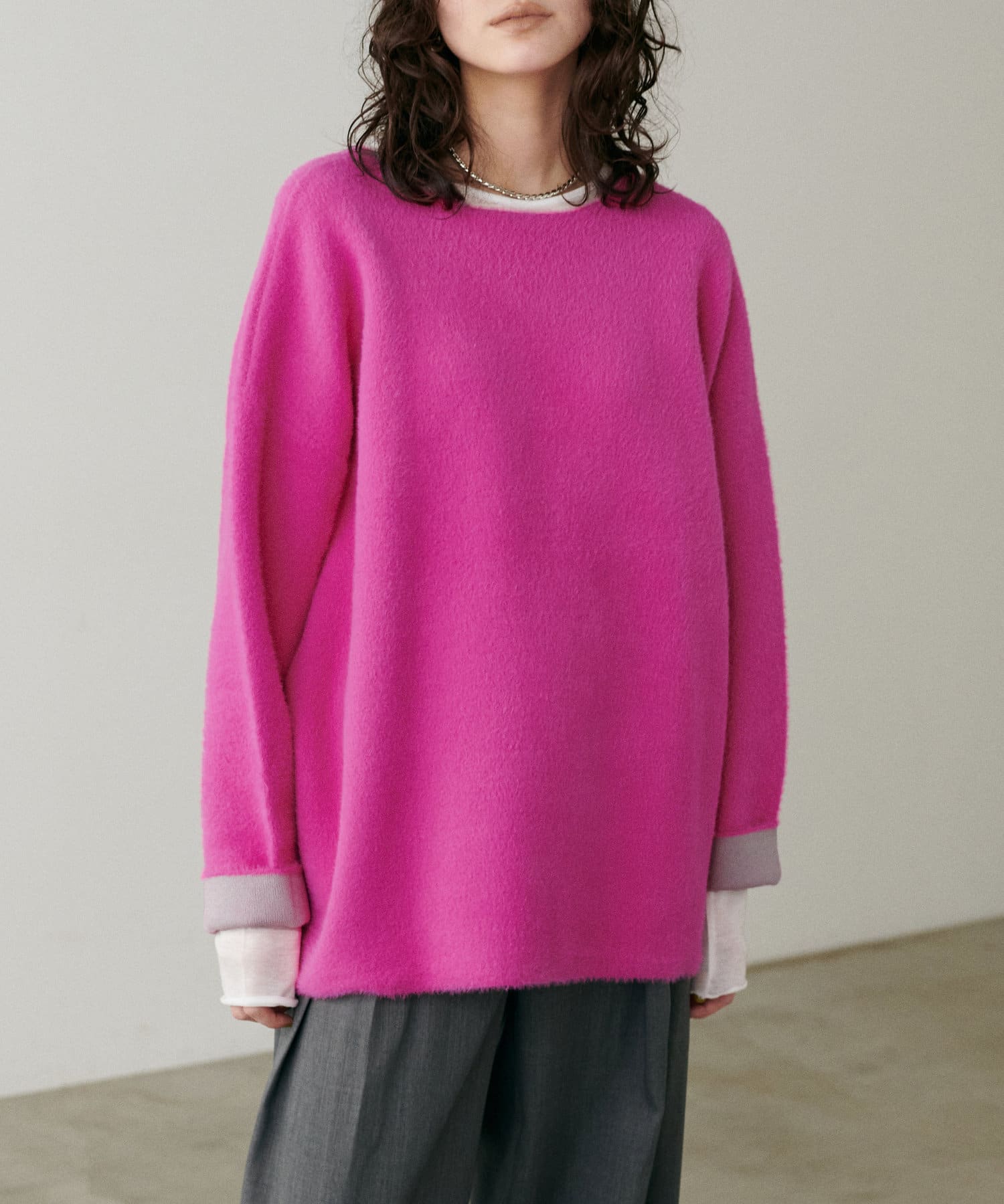 襟ぐりが広めなので、シャツやタートルネックをインしても。