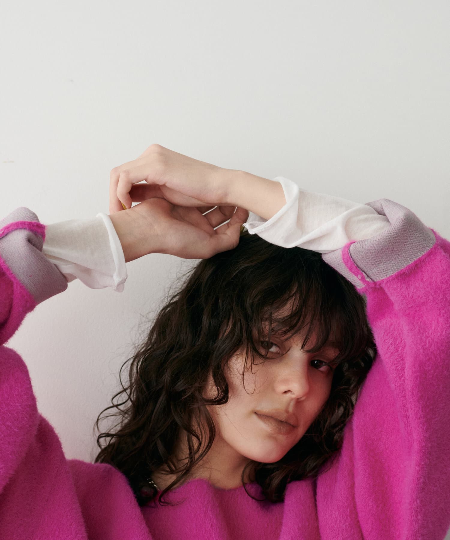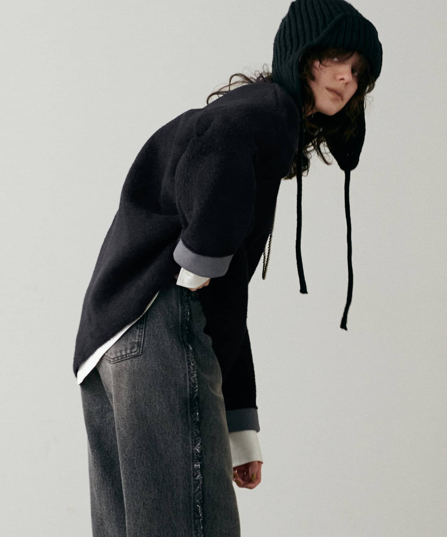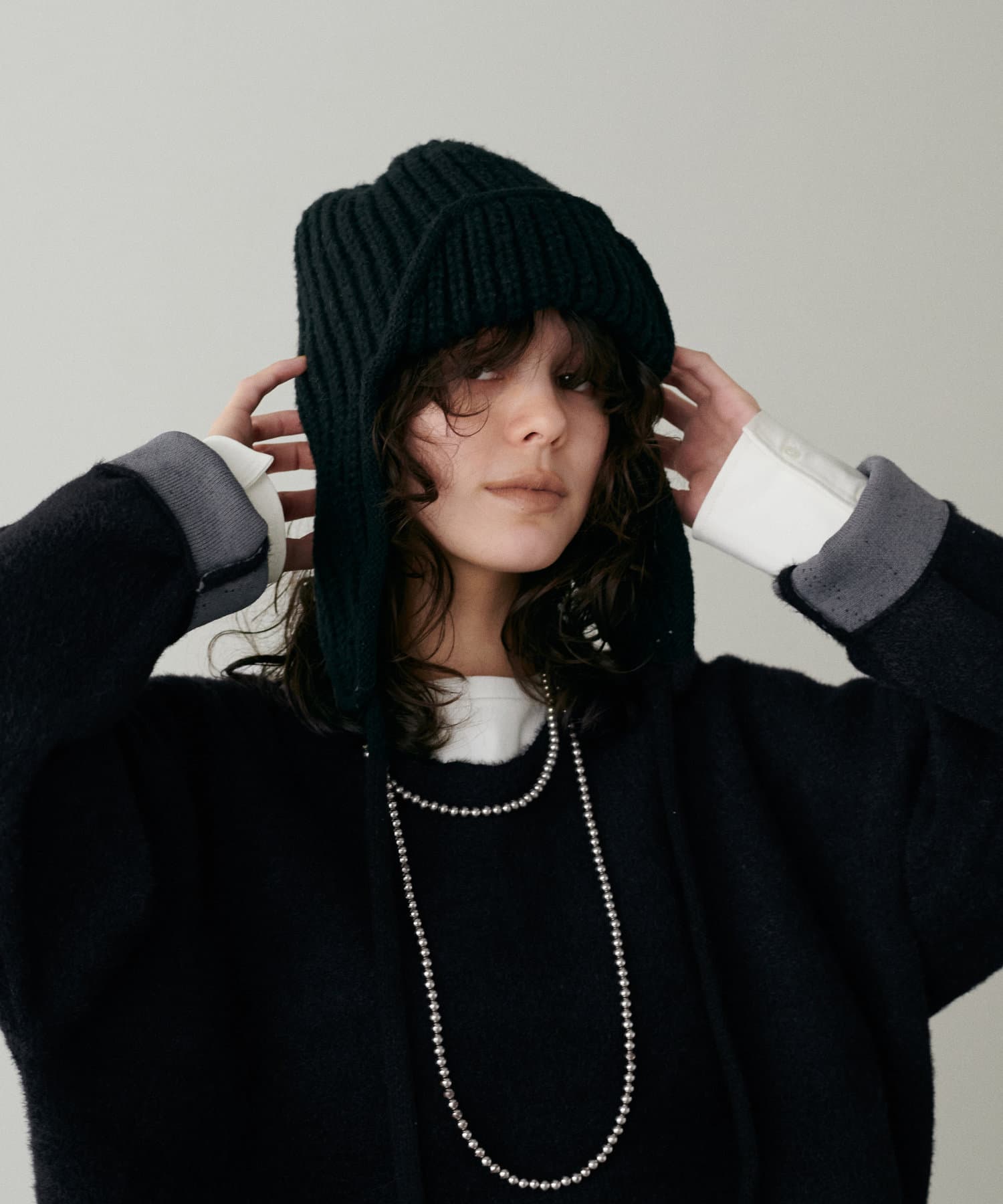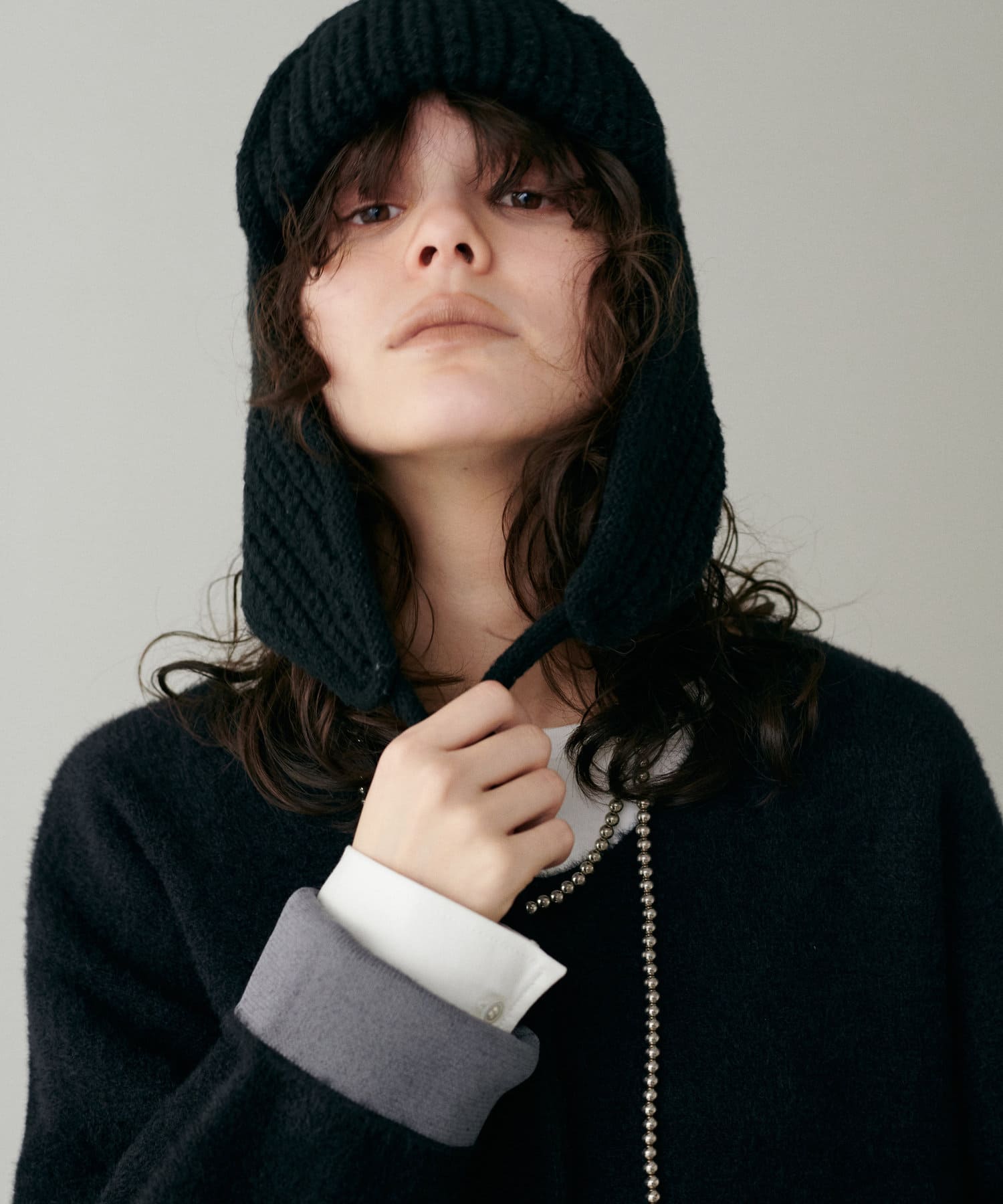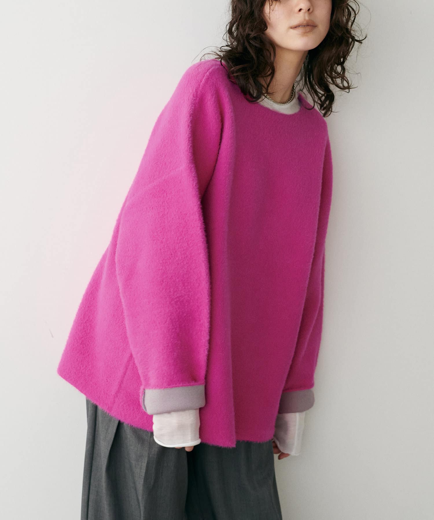 襟ぐりが広めなので、シャツやタートルネックをインしても。