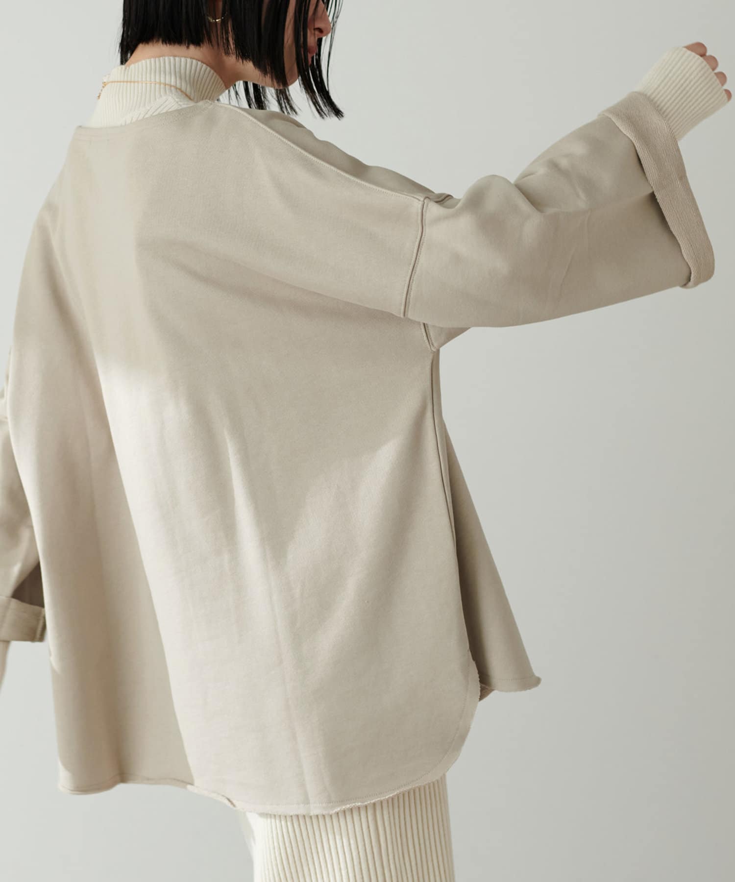 コットン素材に、たっぷりとした身幅と長めの袖が