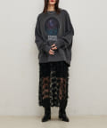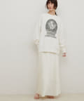 カジュアルな印象のプルオーバーなので、ボトムスは光沢のあるサテンスカートやレーススカートなど女性らしいアイテムを選ぶのがおすすめ。