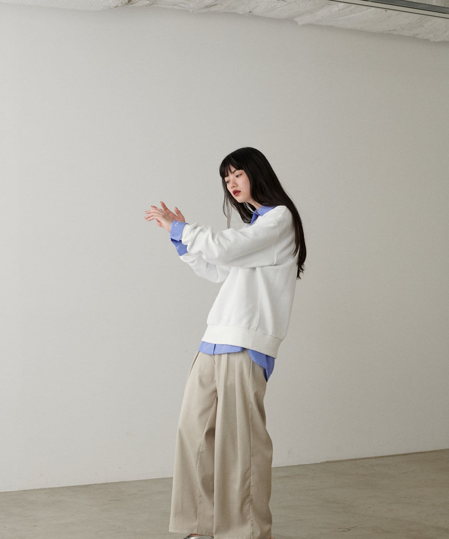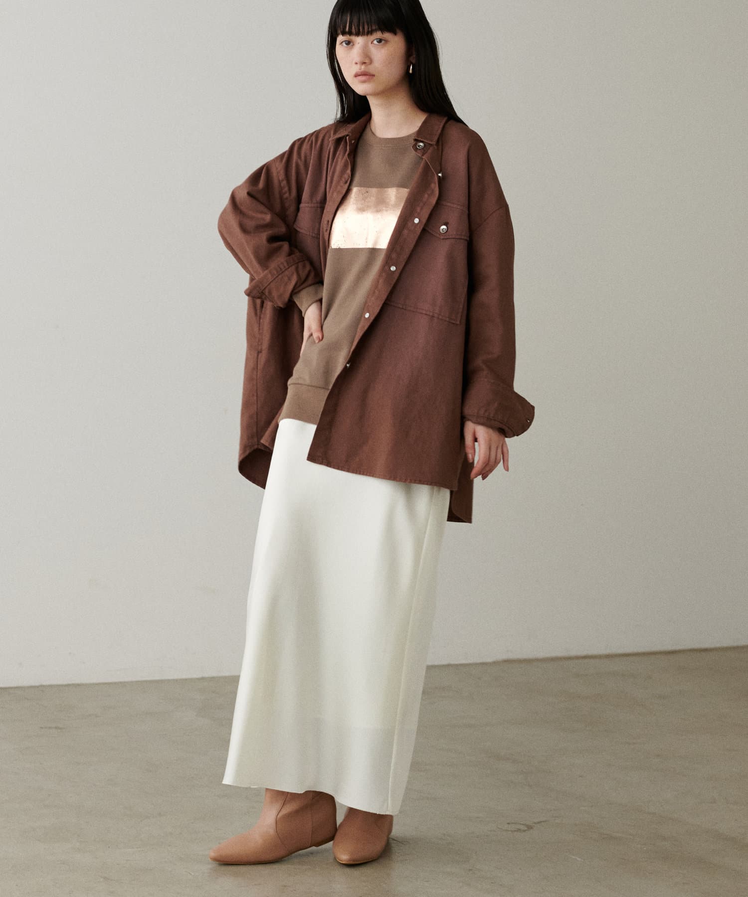 どんなボトムスとも相性が良く着回ししやすいアイテムです。
