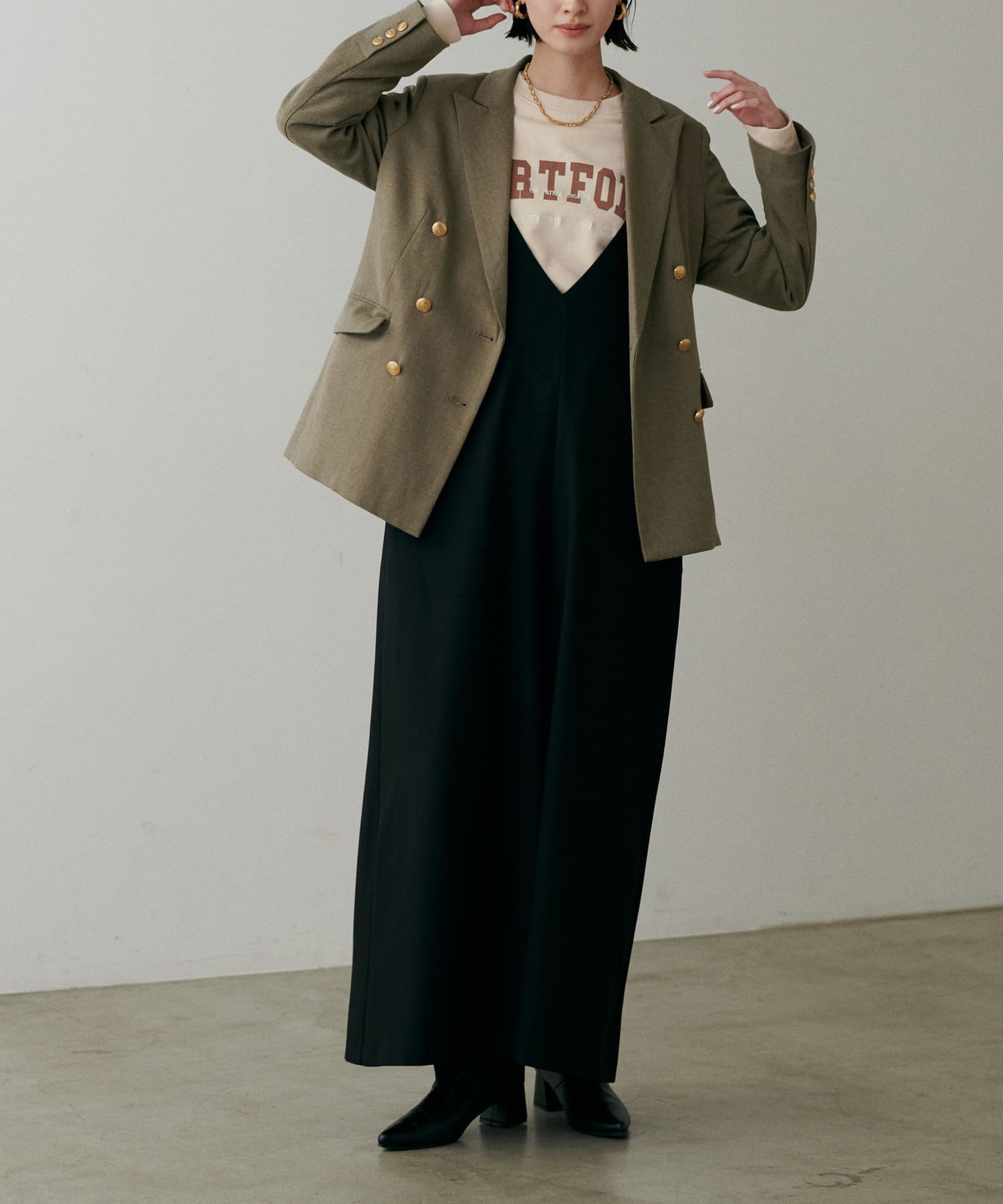合わせるアイテム次第で雰囲気が変わる着回しのきく一着。