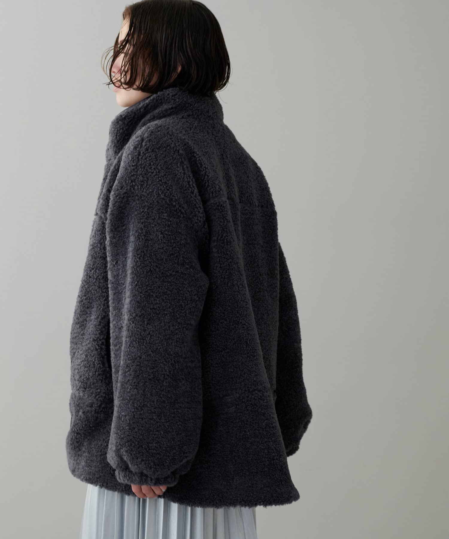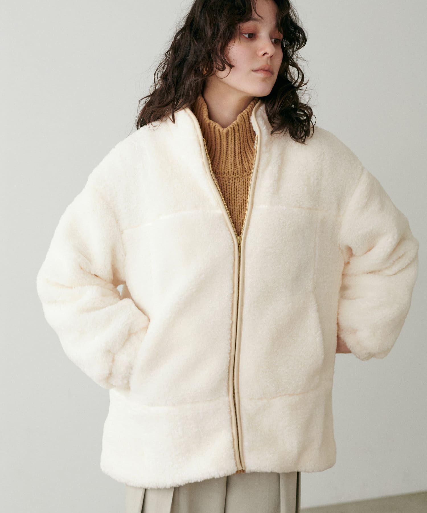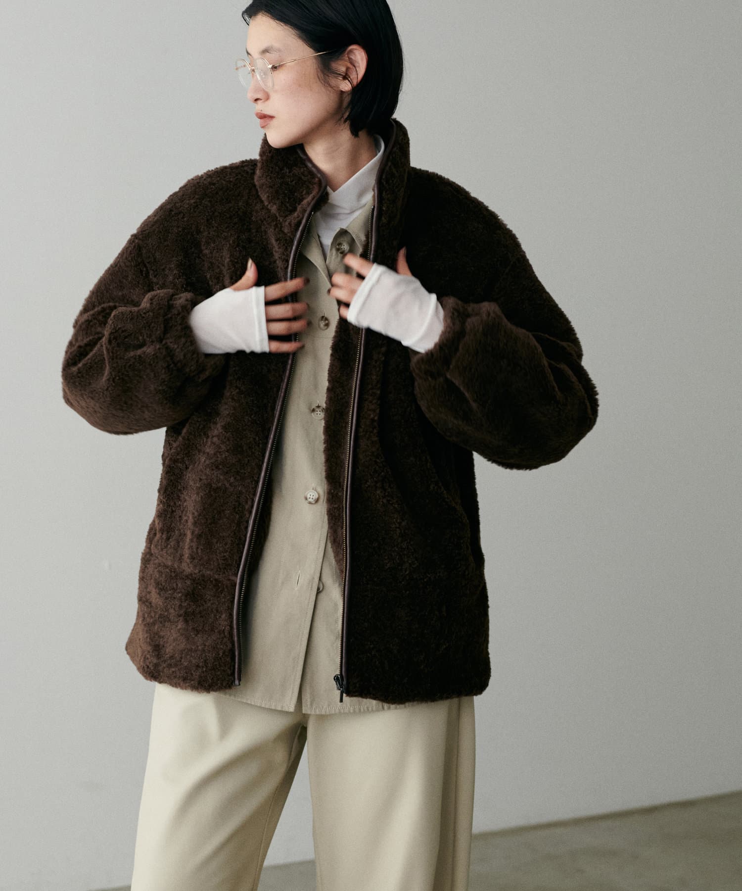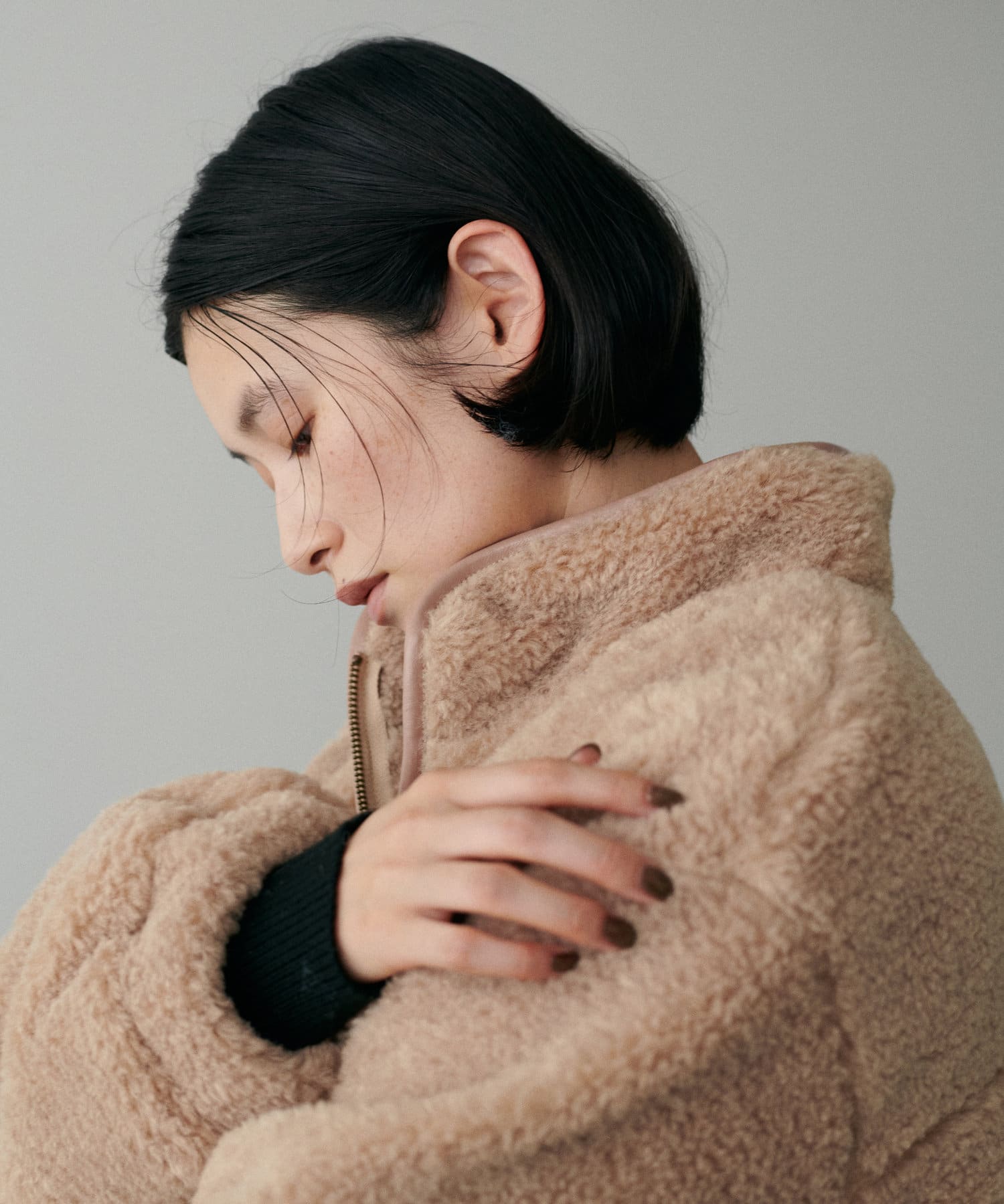 スタンドカラーで首回りまで暖かいデザインが◎。