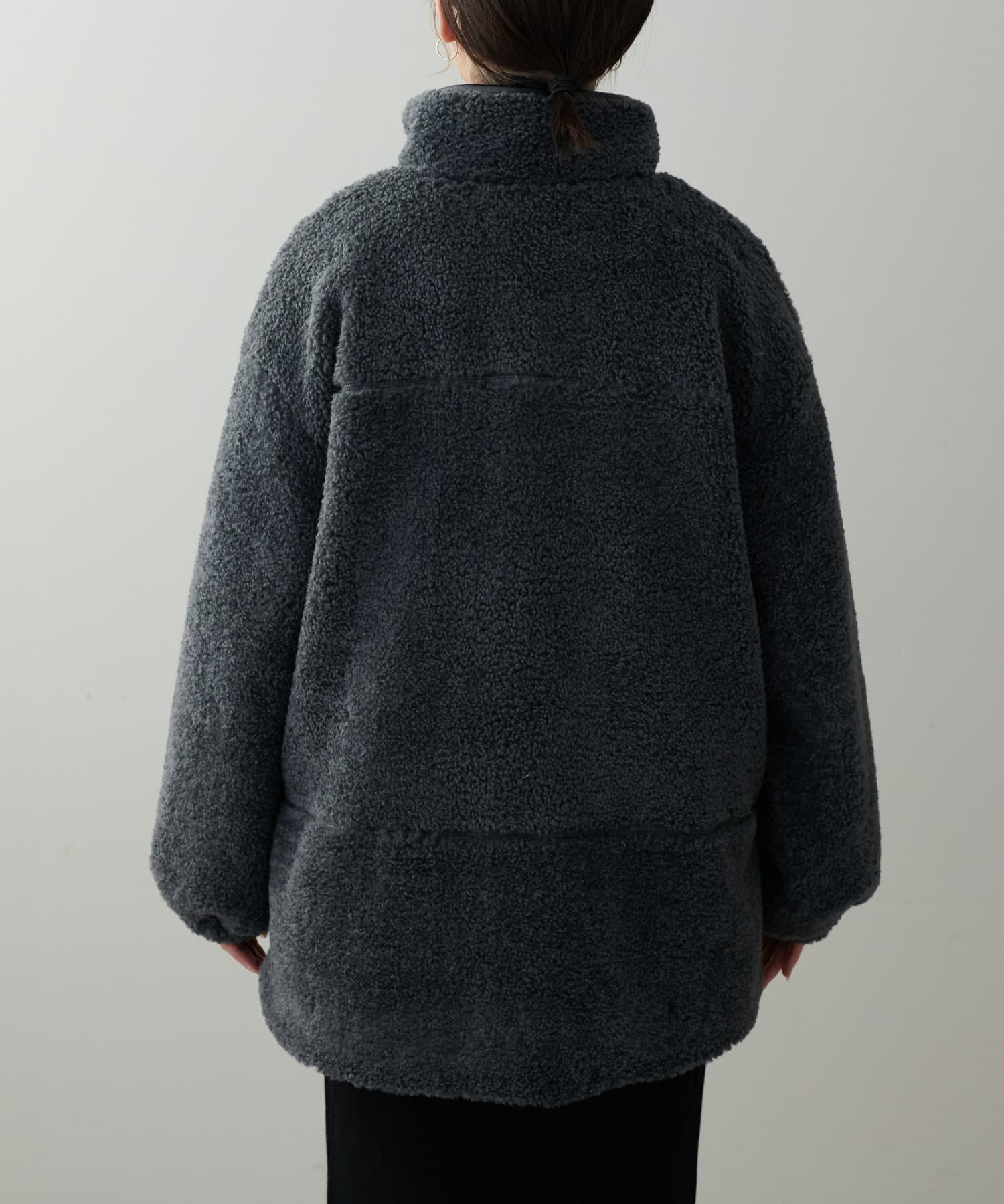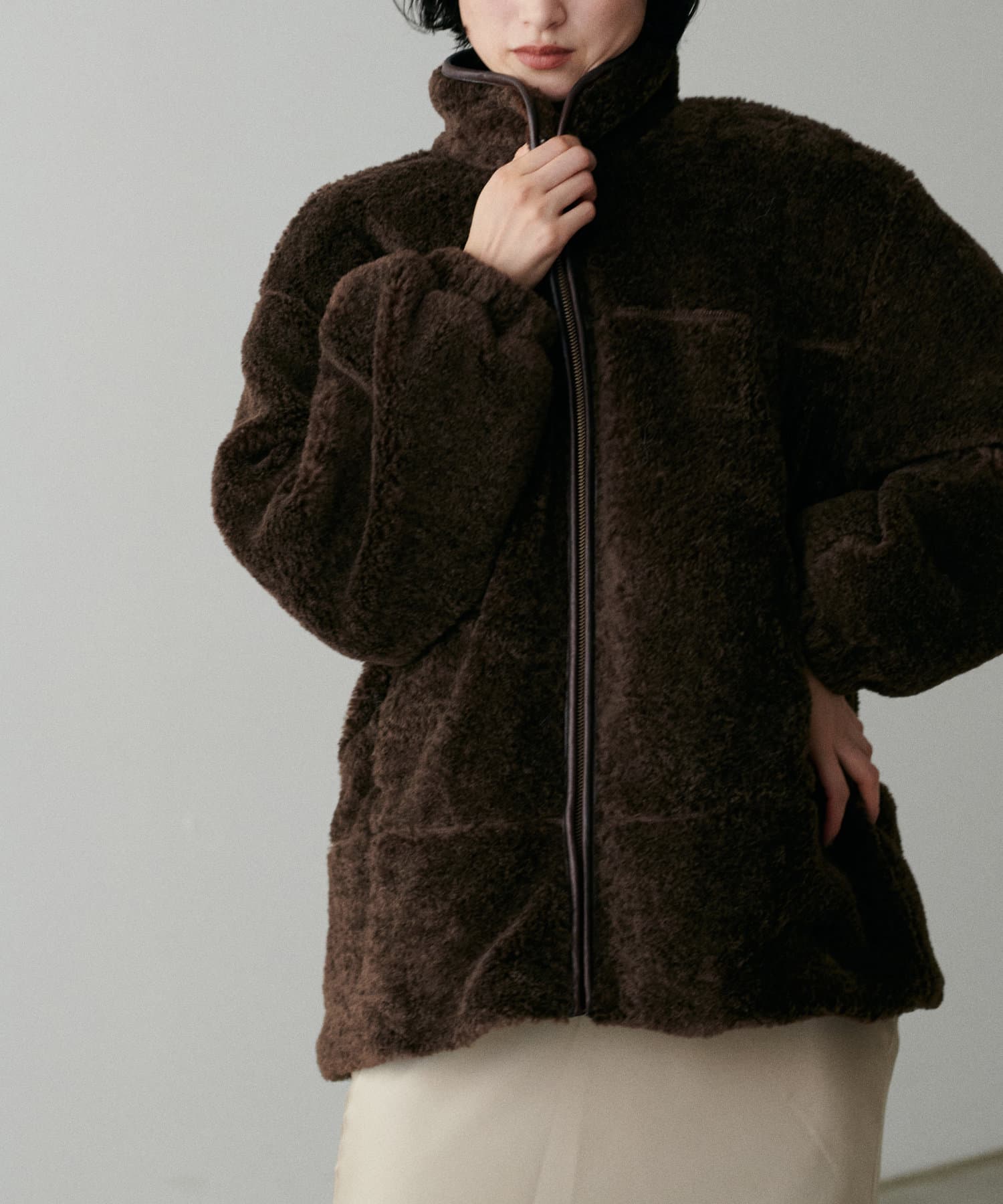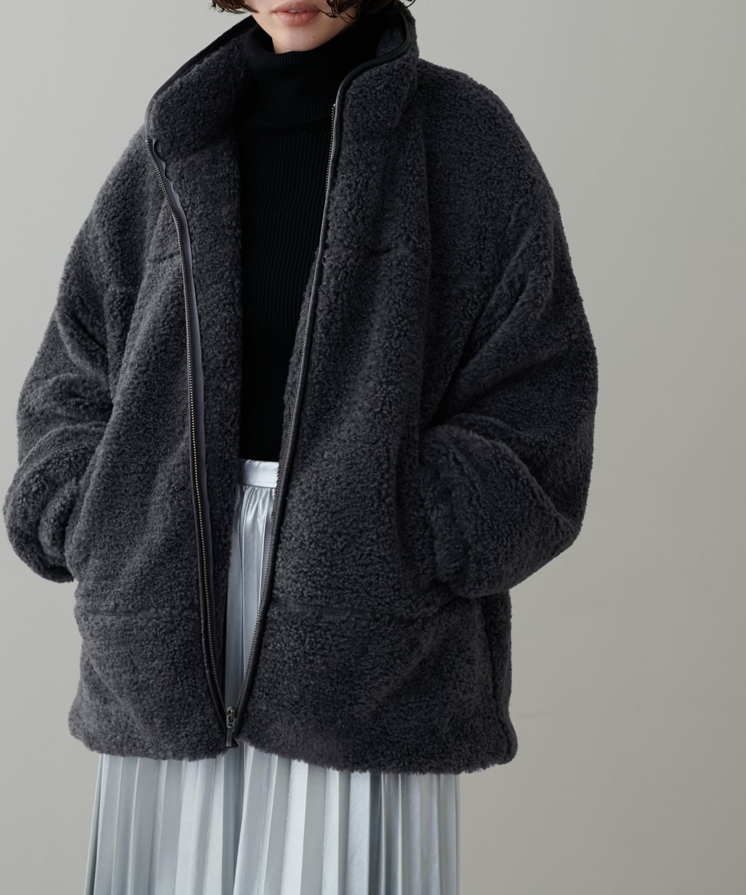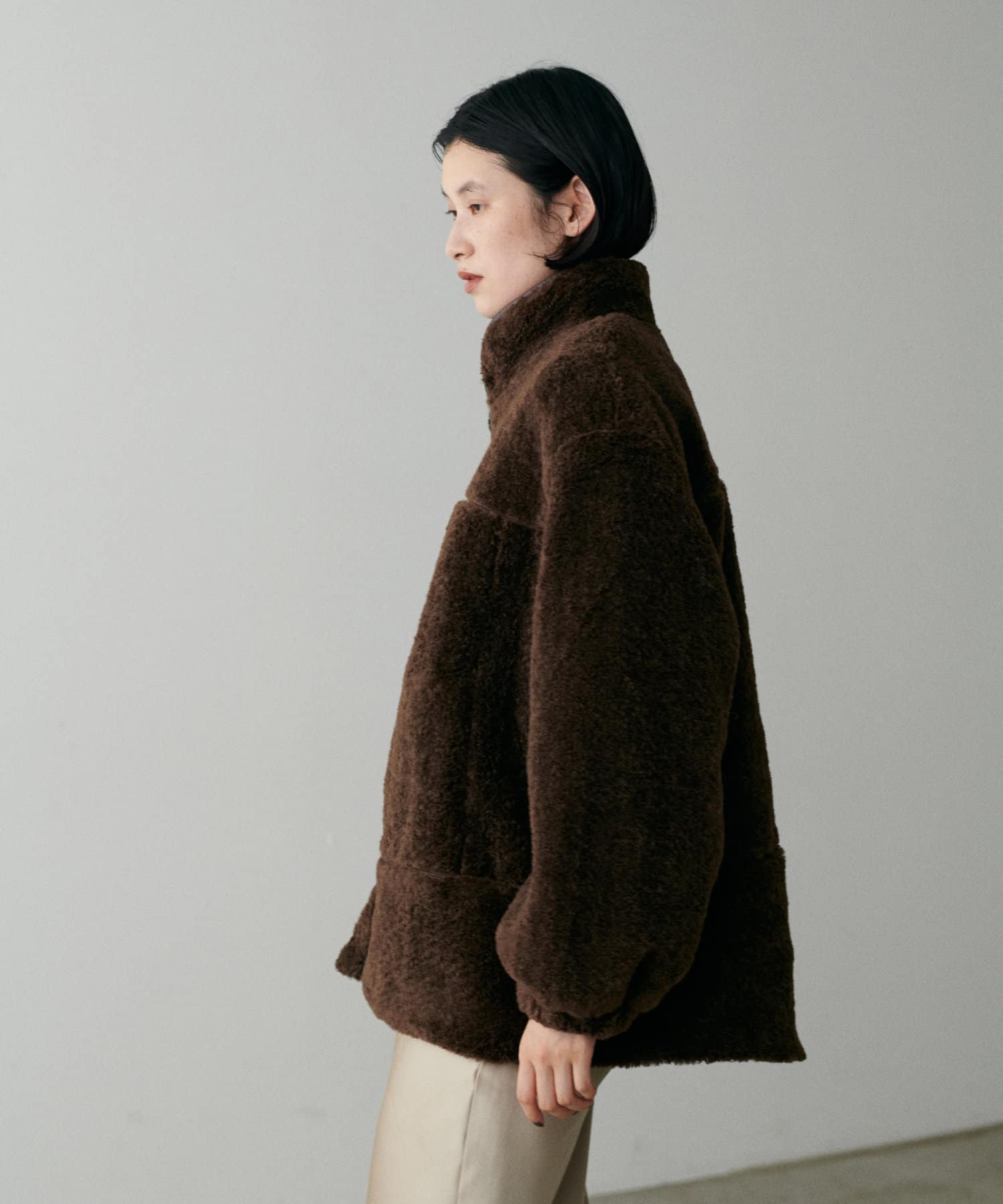 スタンドカラーで首回りまで暖かいデザインが◎。
