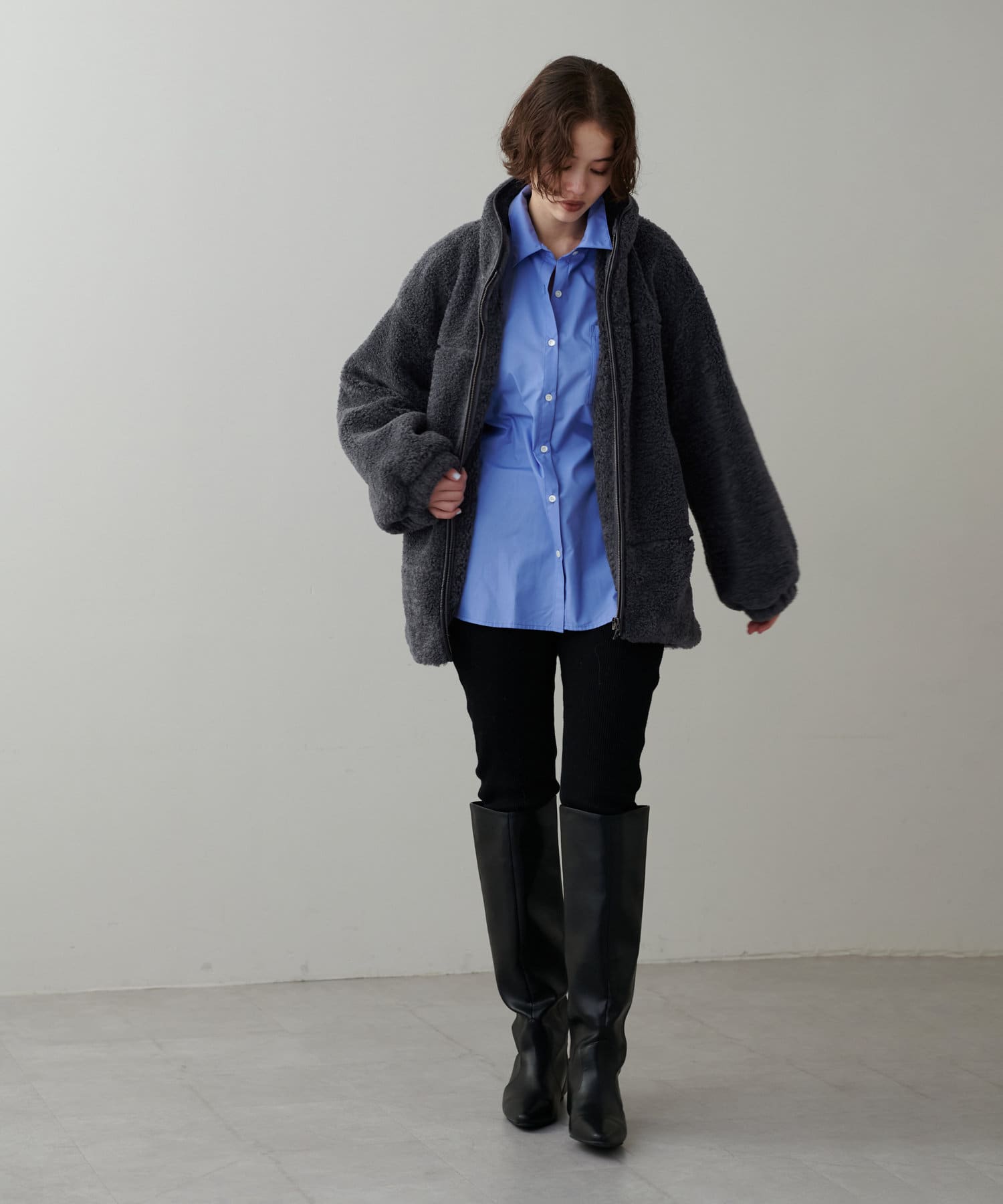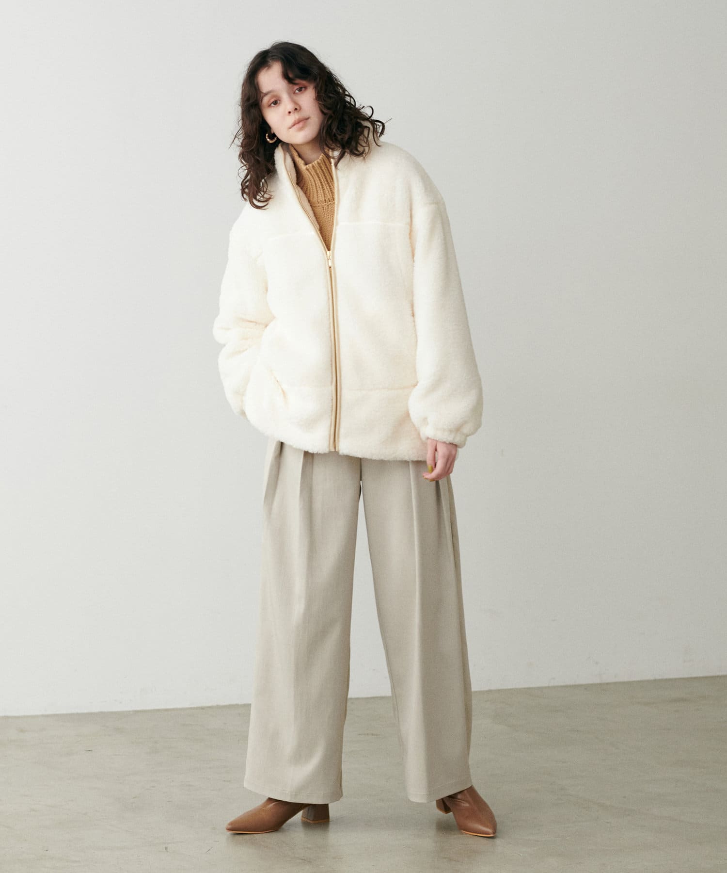 ゆったりとしたサイジングで厚手のニットも着こむことができます。