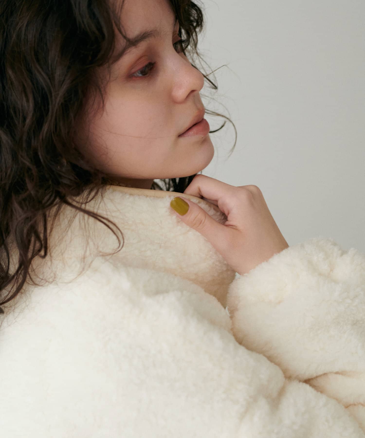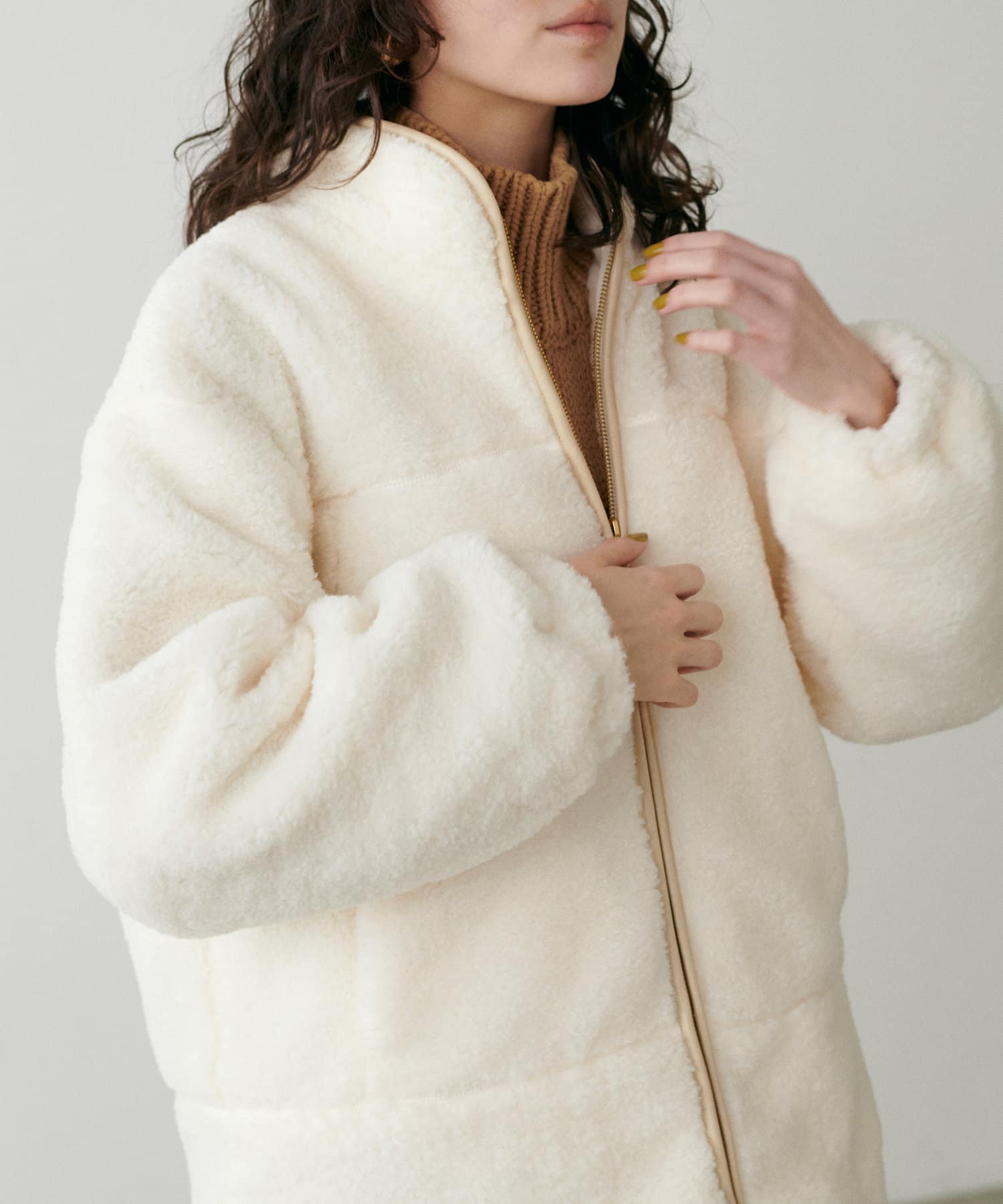 テディーベアの様なモコモコボア素材は柔らかく温かみがあり