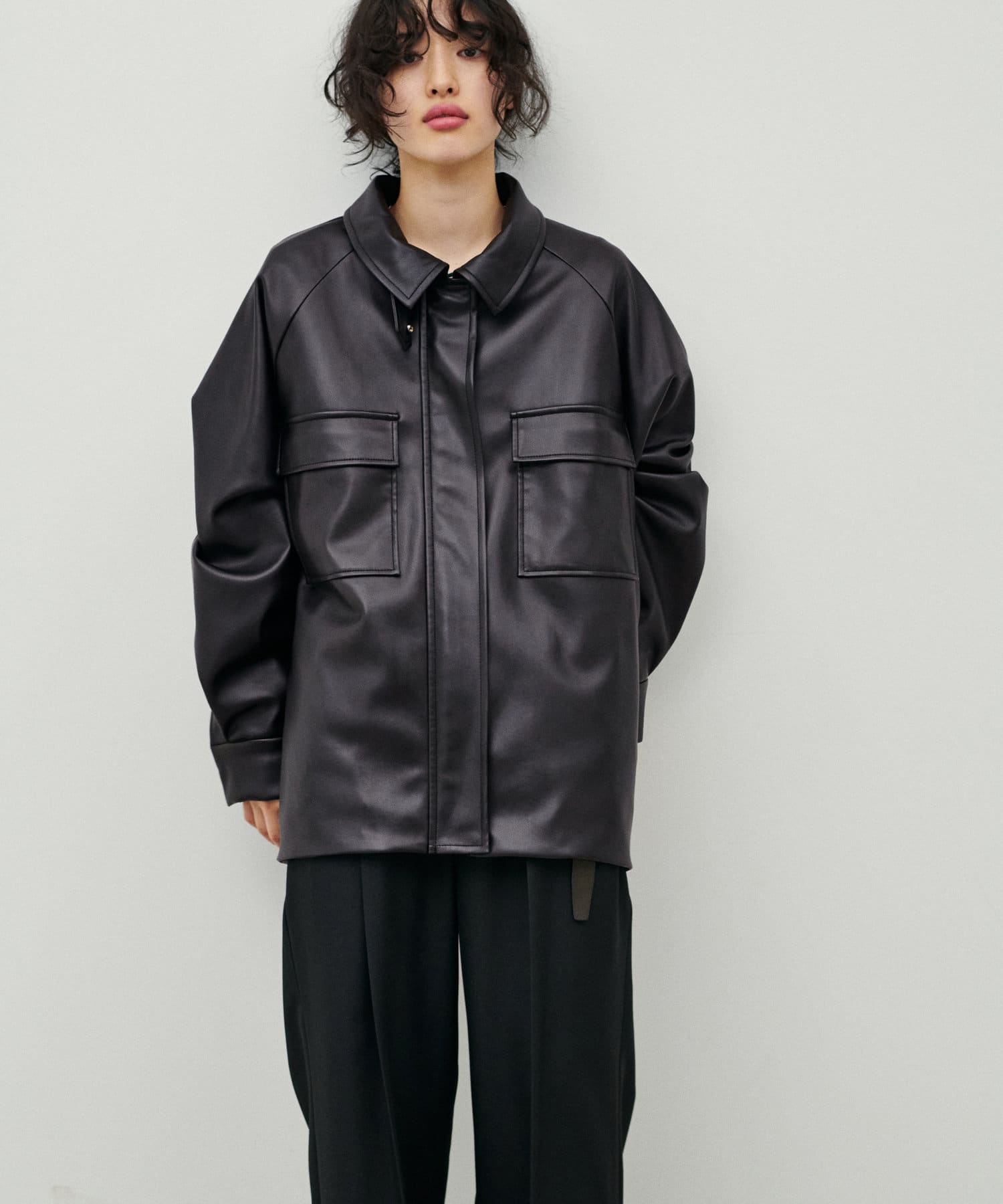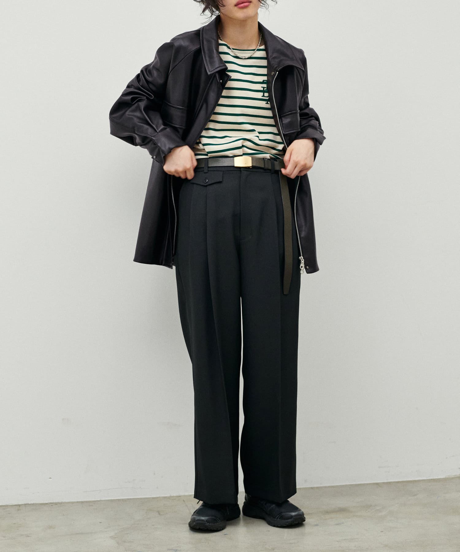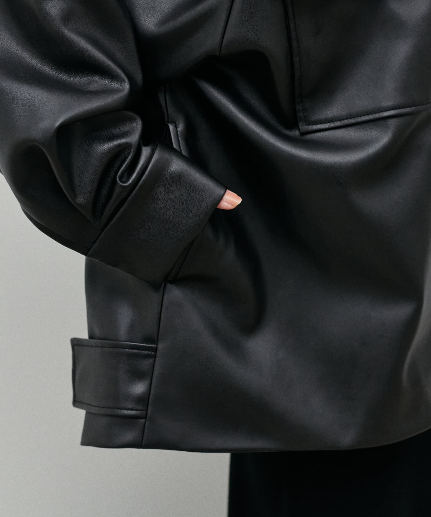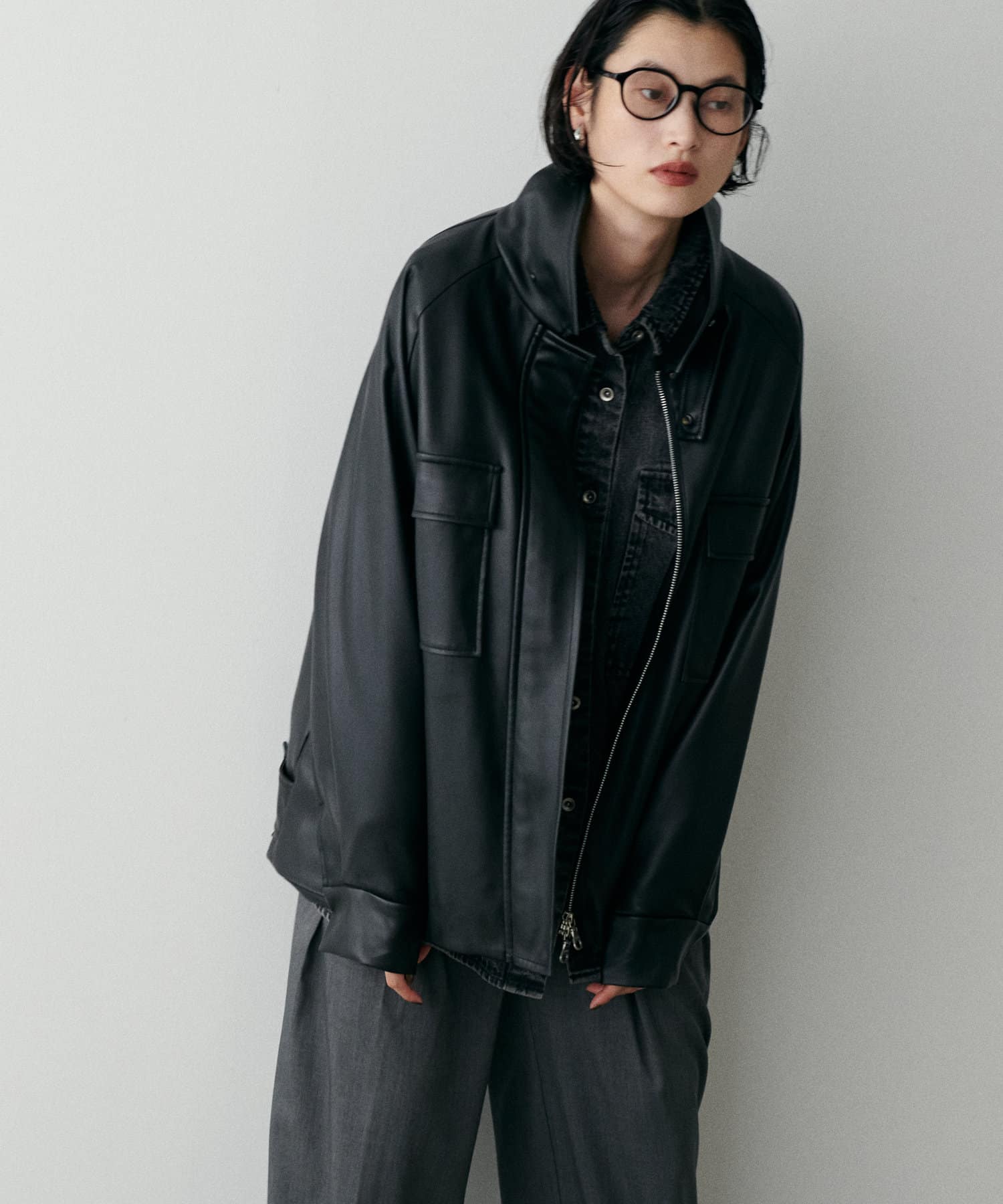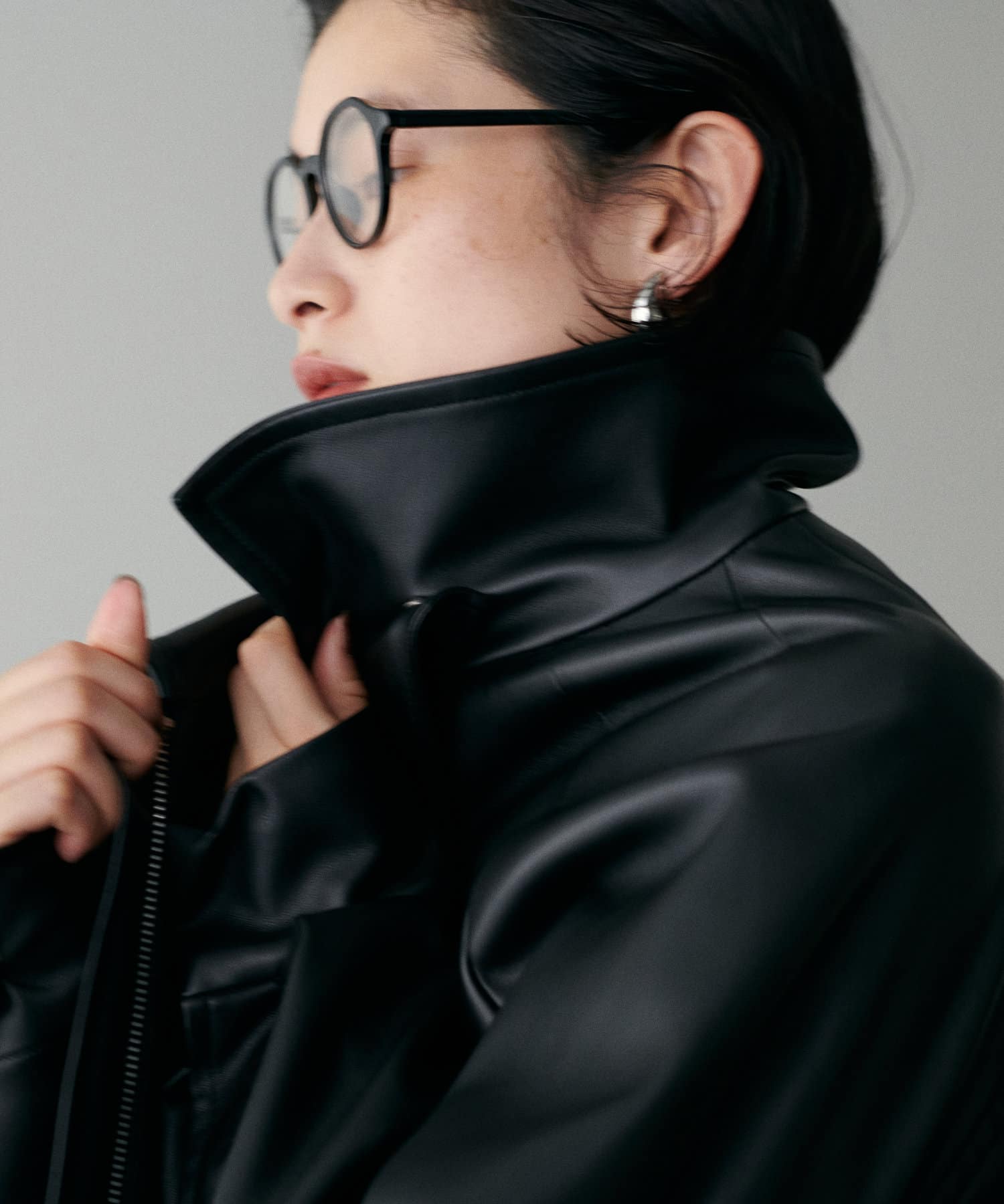 フェイクレザーのスカートと合わせるとモードな印象に。