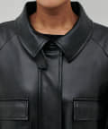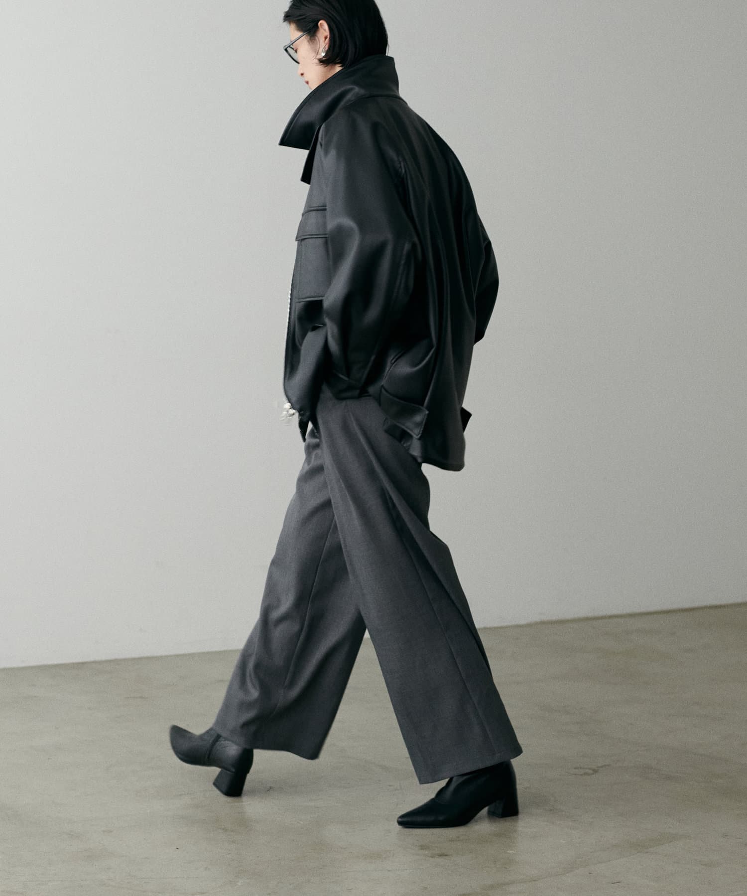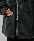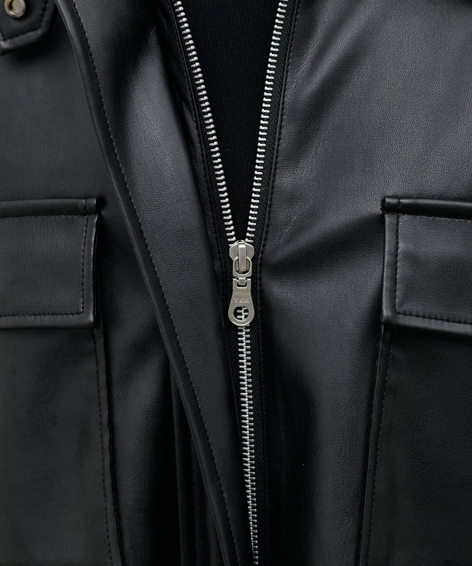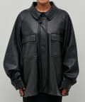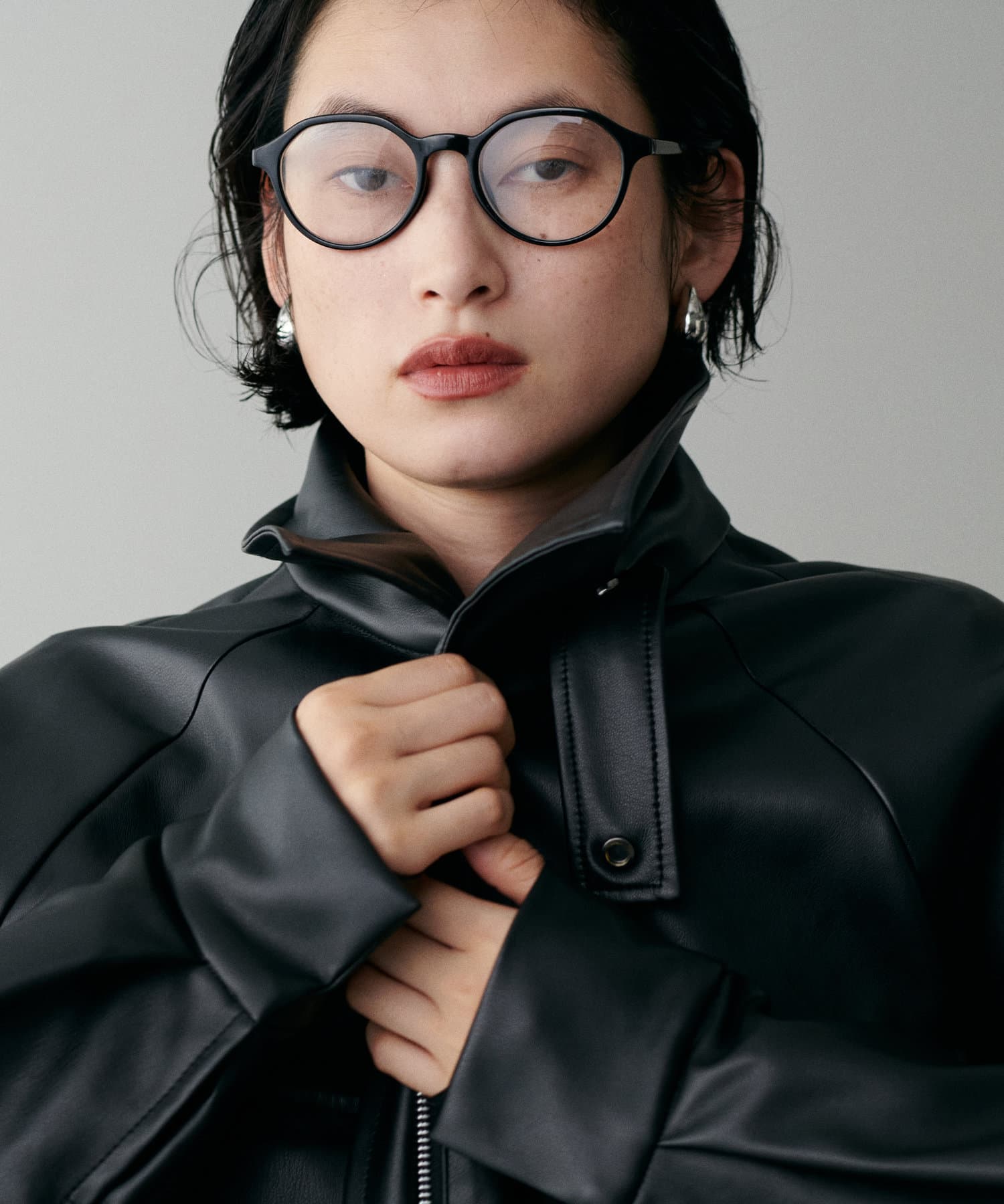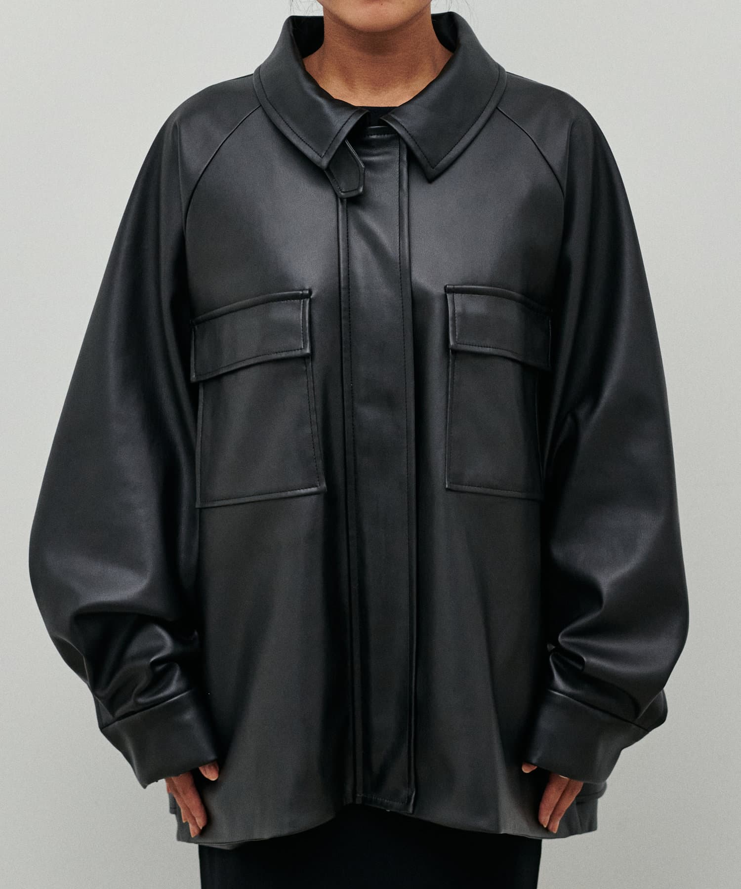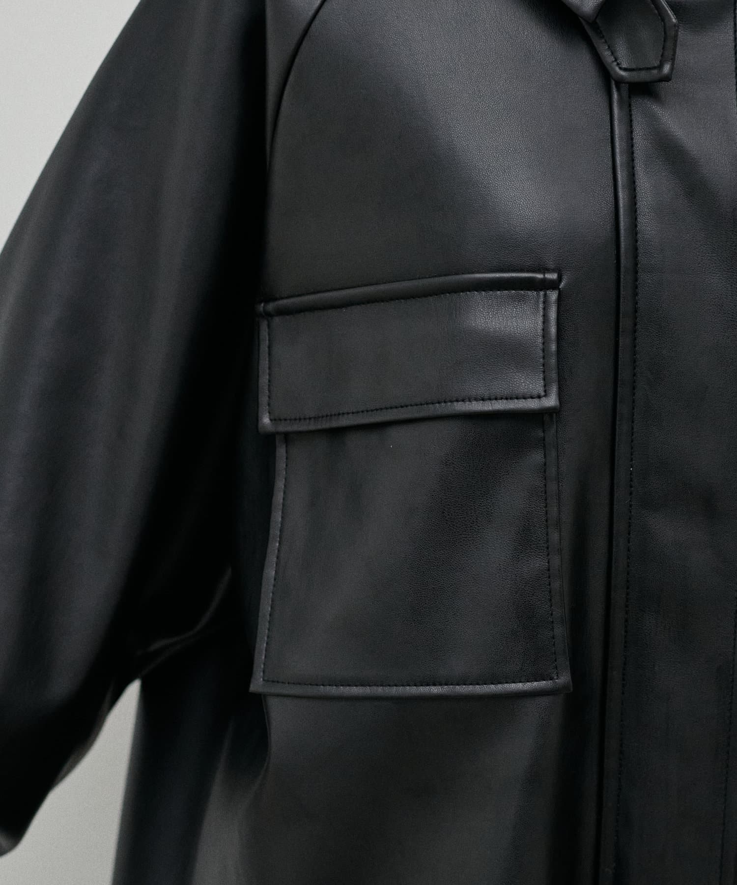 フェイクレザーのスカートと合わせるとモードな印象に。