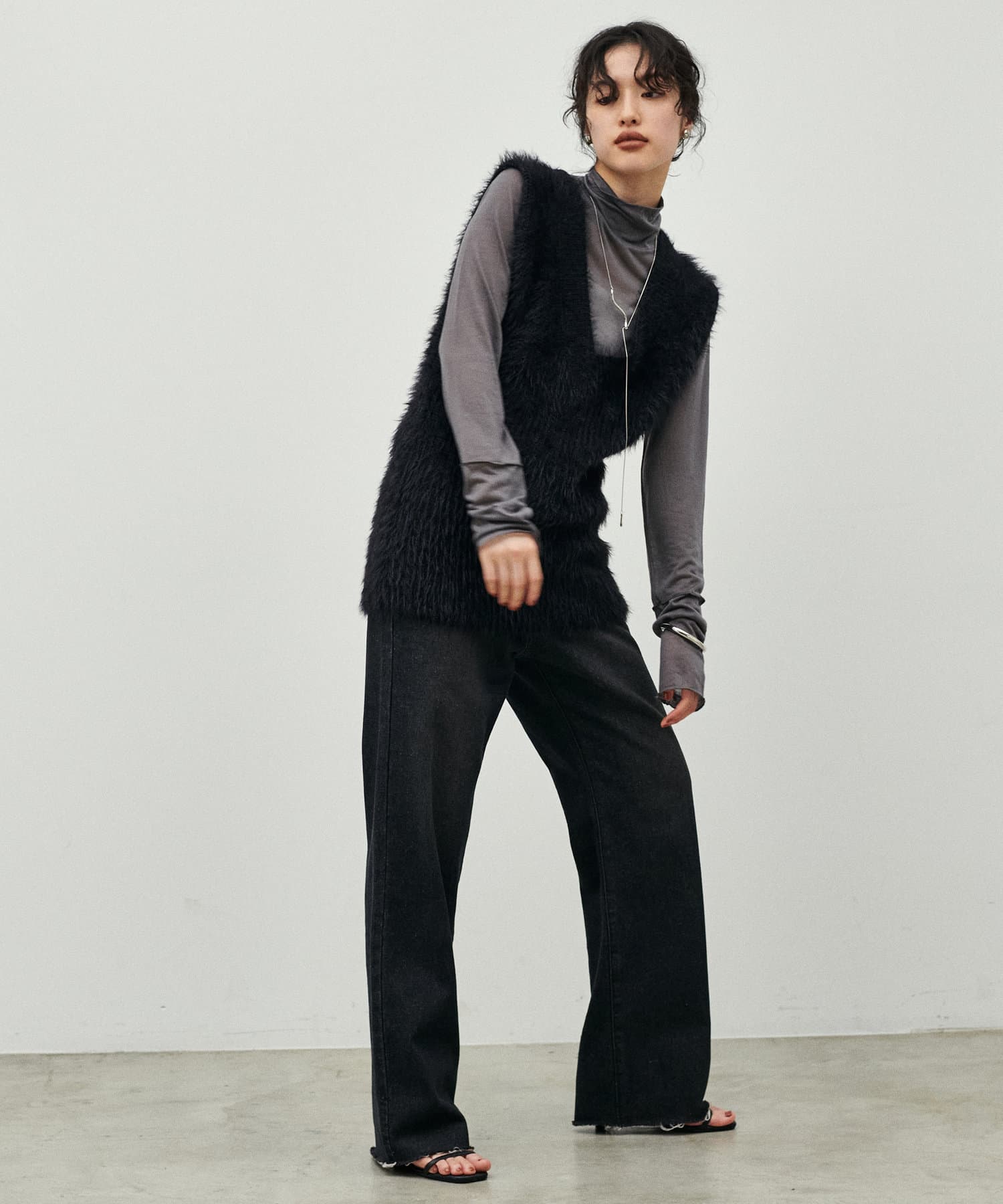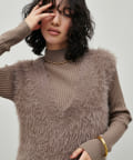 毛足長めのフェザーベストは重ねると、とっても暖かくこれからの季節重宝します。