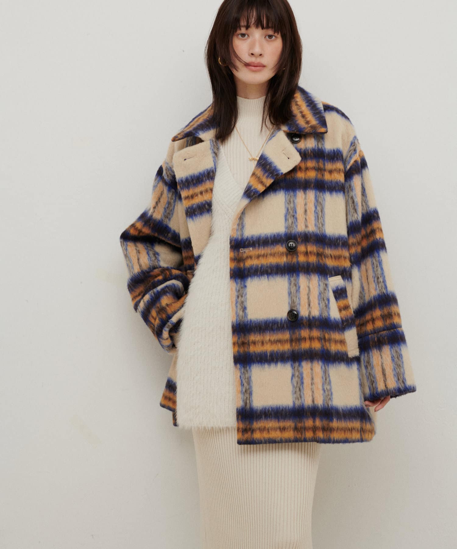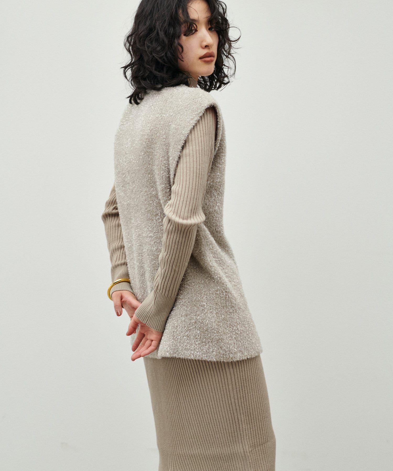 お尻が隠れる丈感と、広めのアームホールがお手持ちのアイテムともレイヤードしやすい1点です。