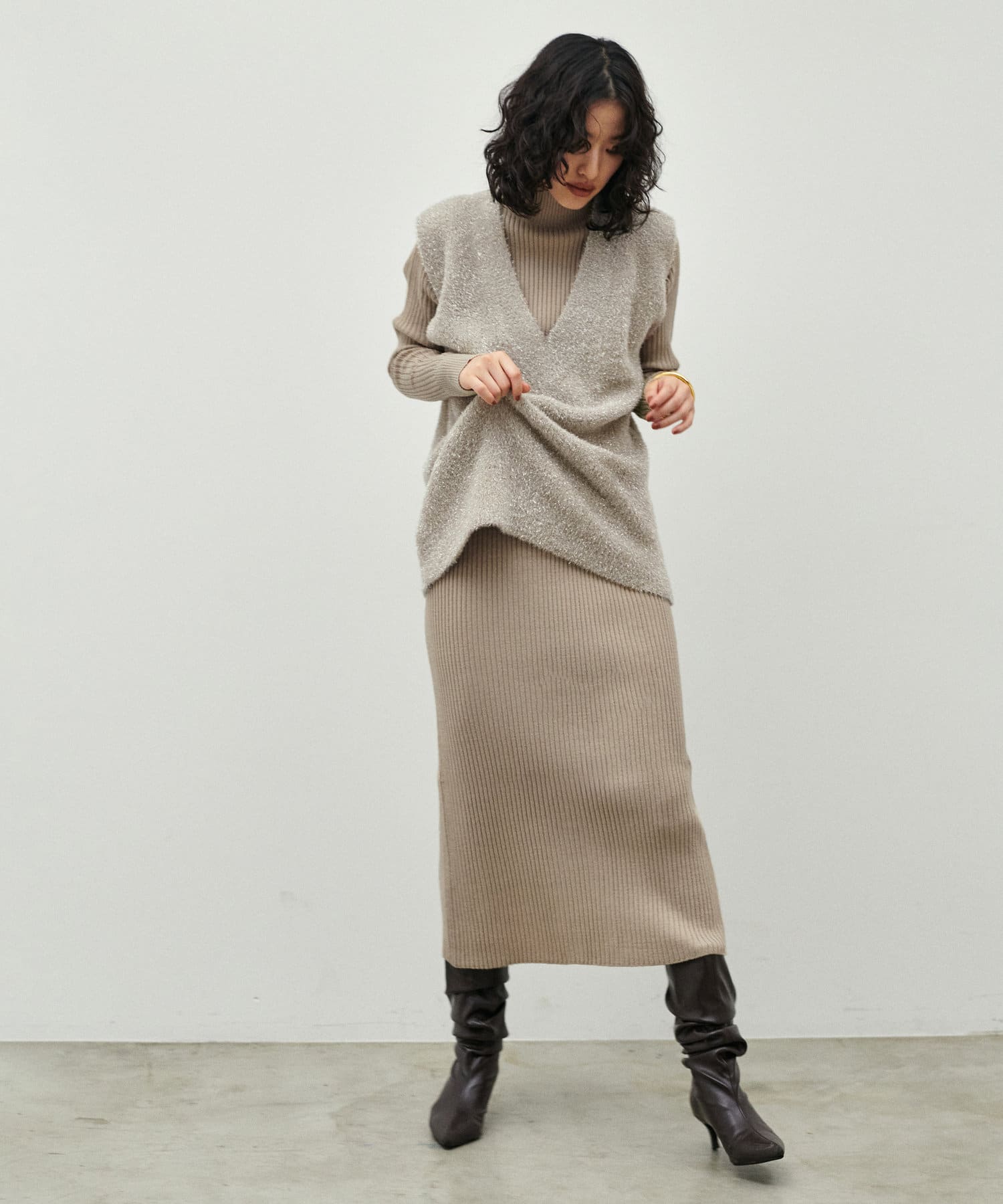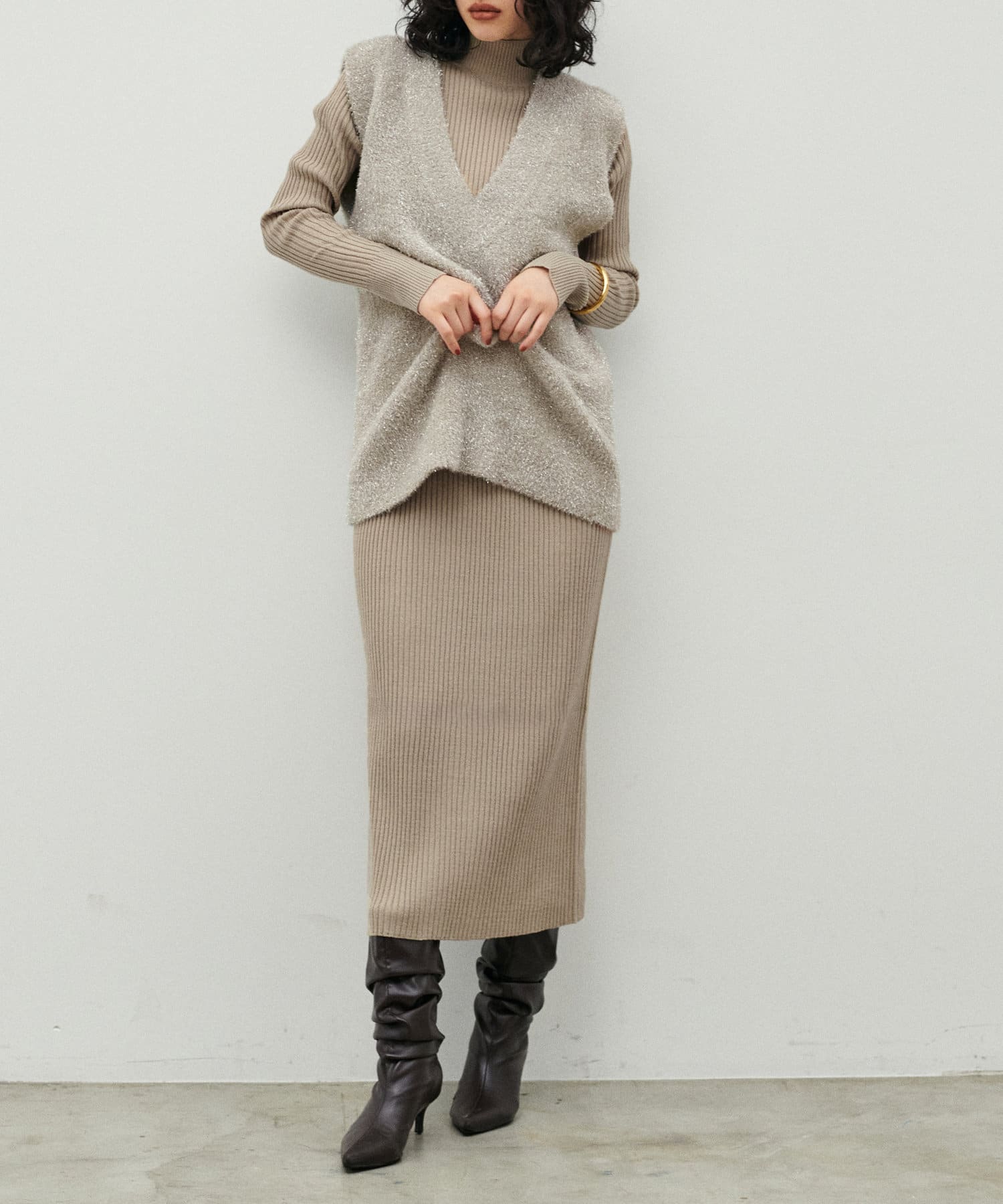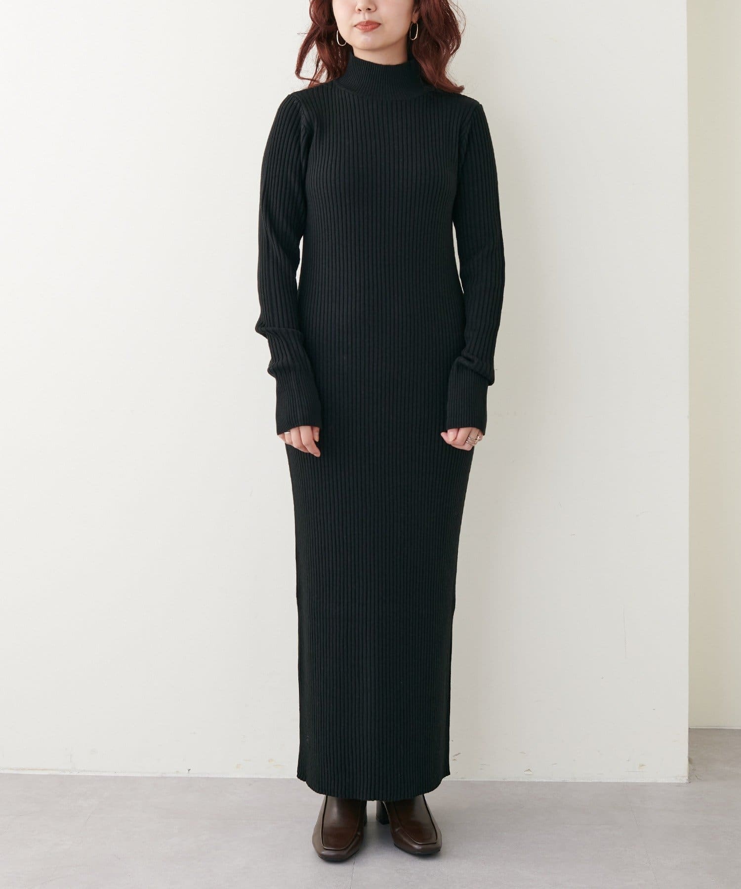リブニットワンピは程良いサイズ感と丈感で幅広いお客様にマッチします。