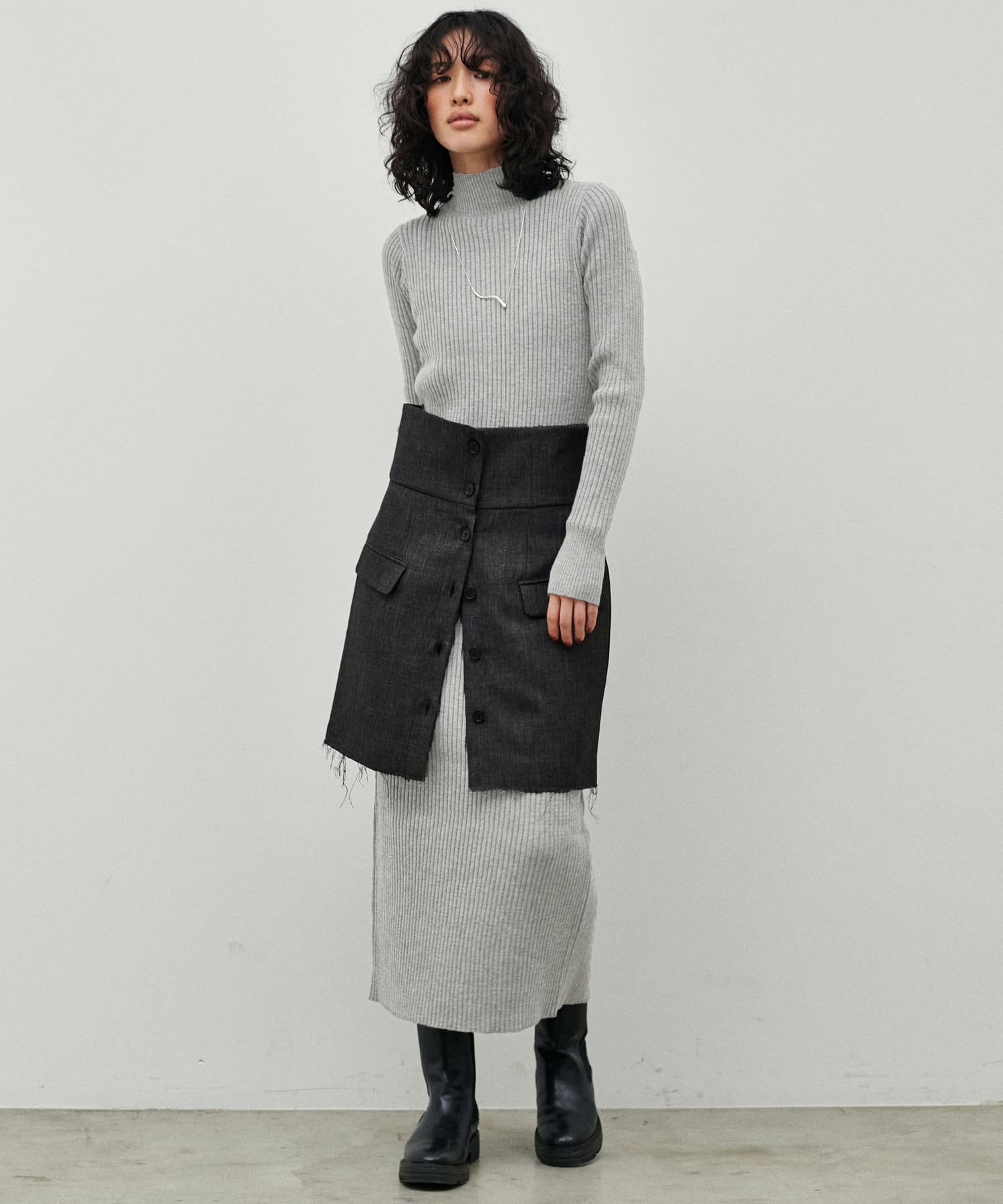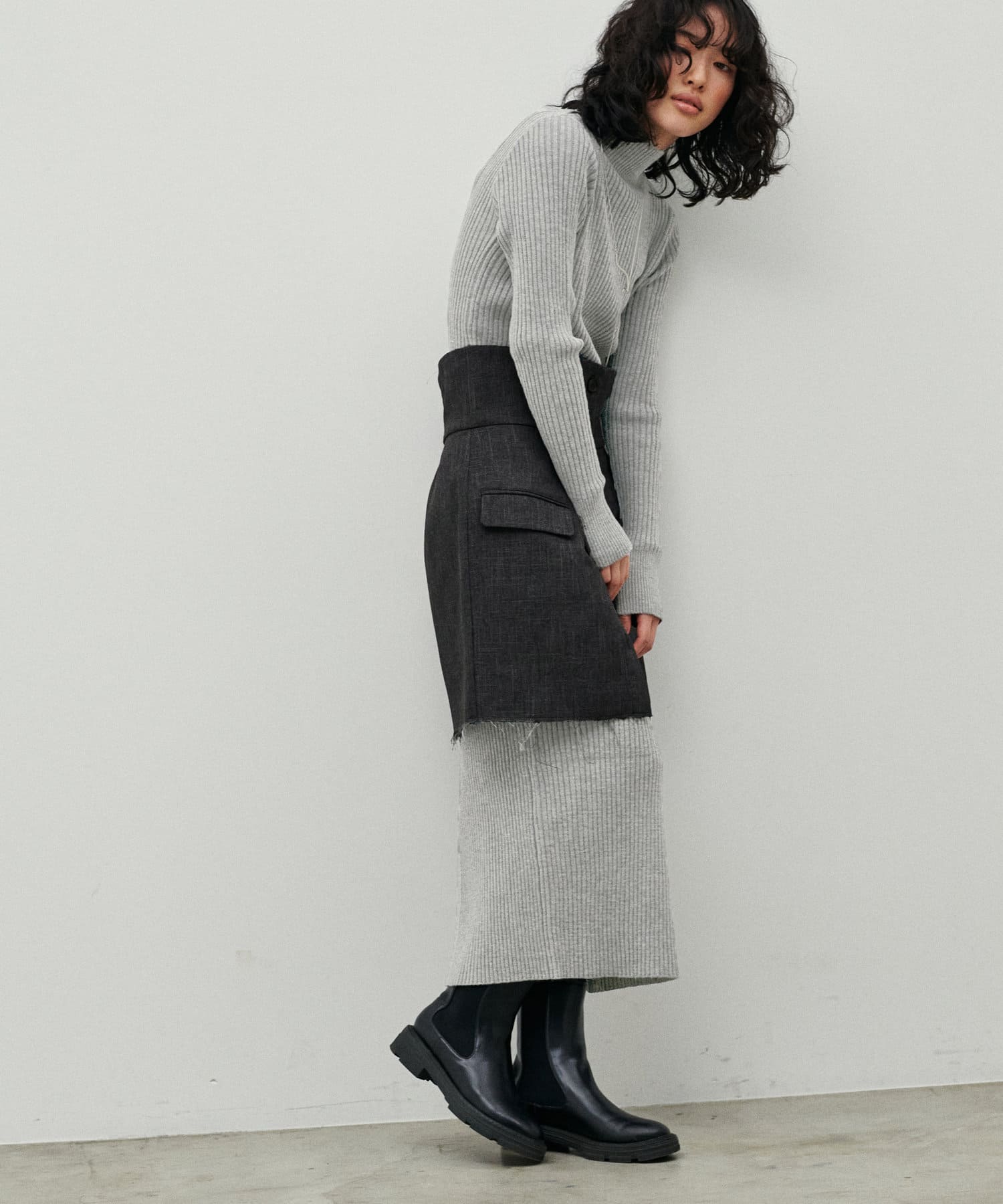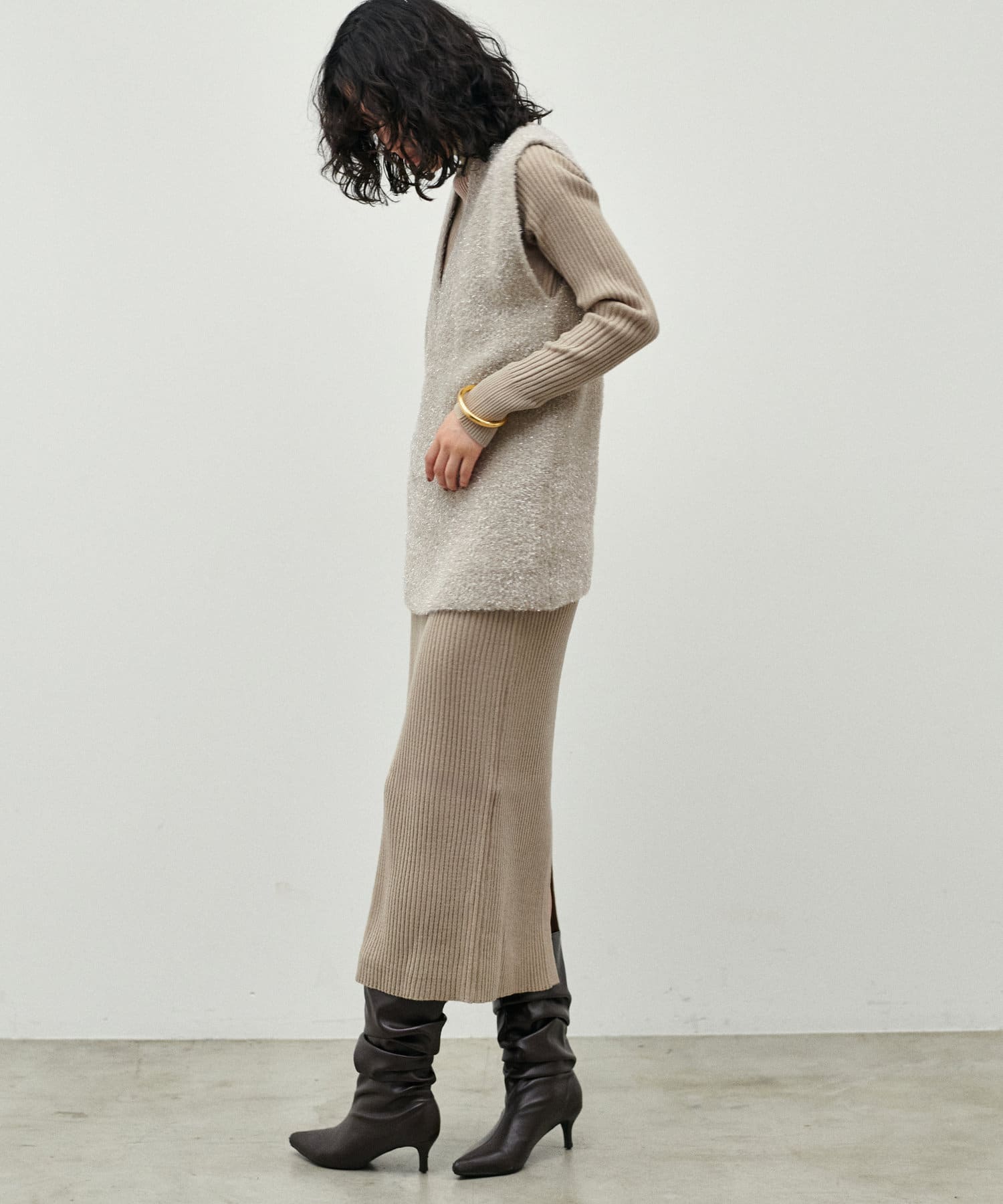 リブニットワンピは程良いサイズ感と丈感で幅広いお客様にマッチします。