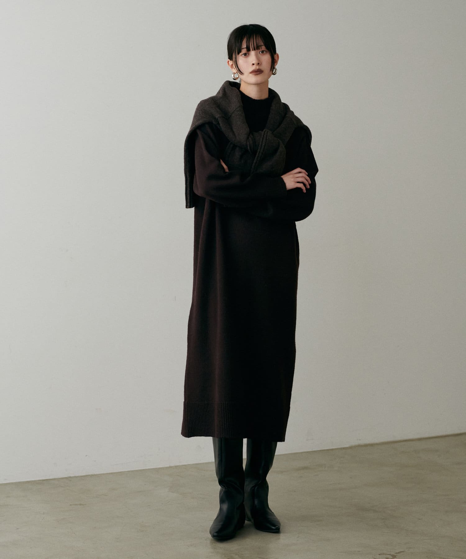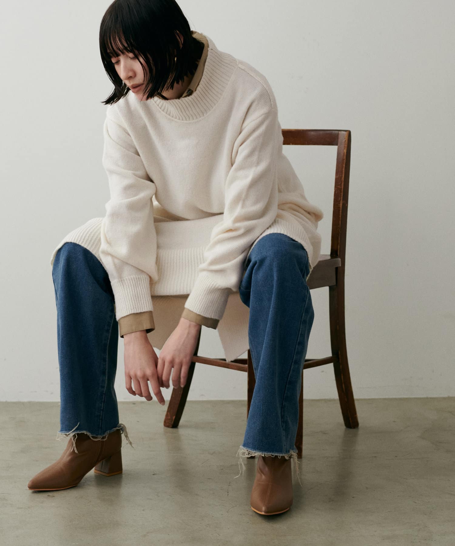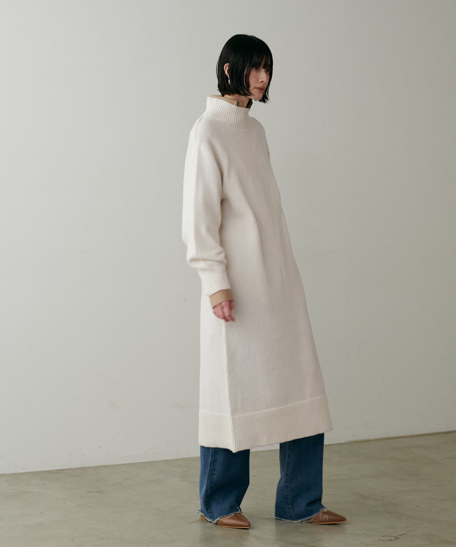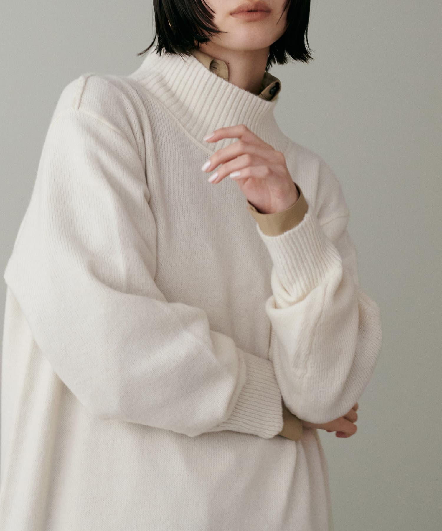 重ねていただくと首元からハイネックの覗いた、レイヤードスタイルをお楽しみいただけます。