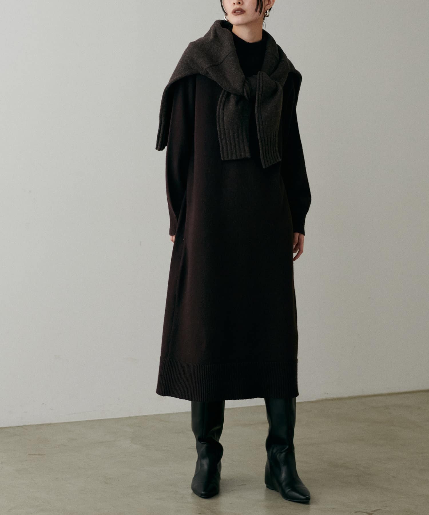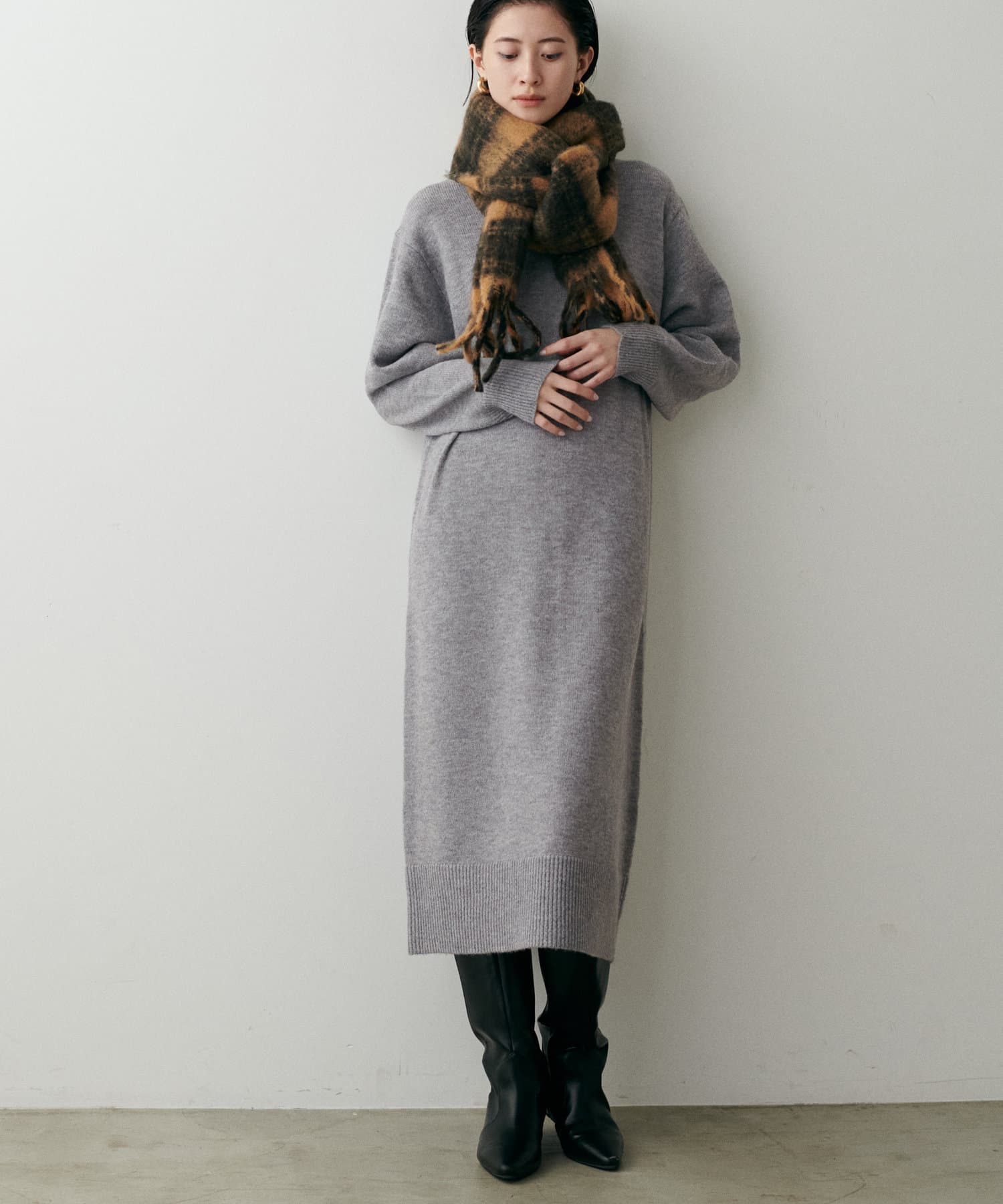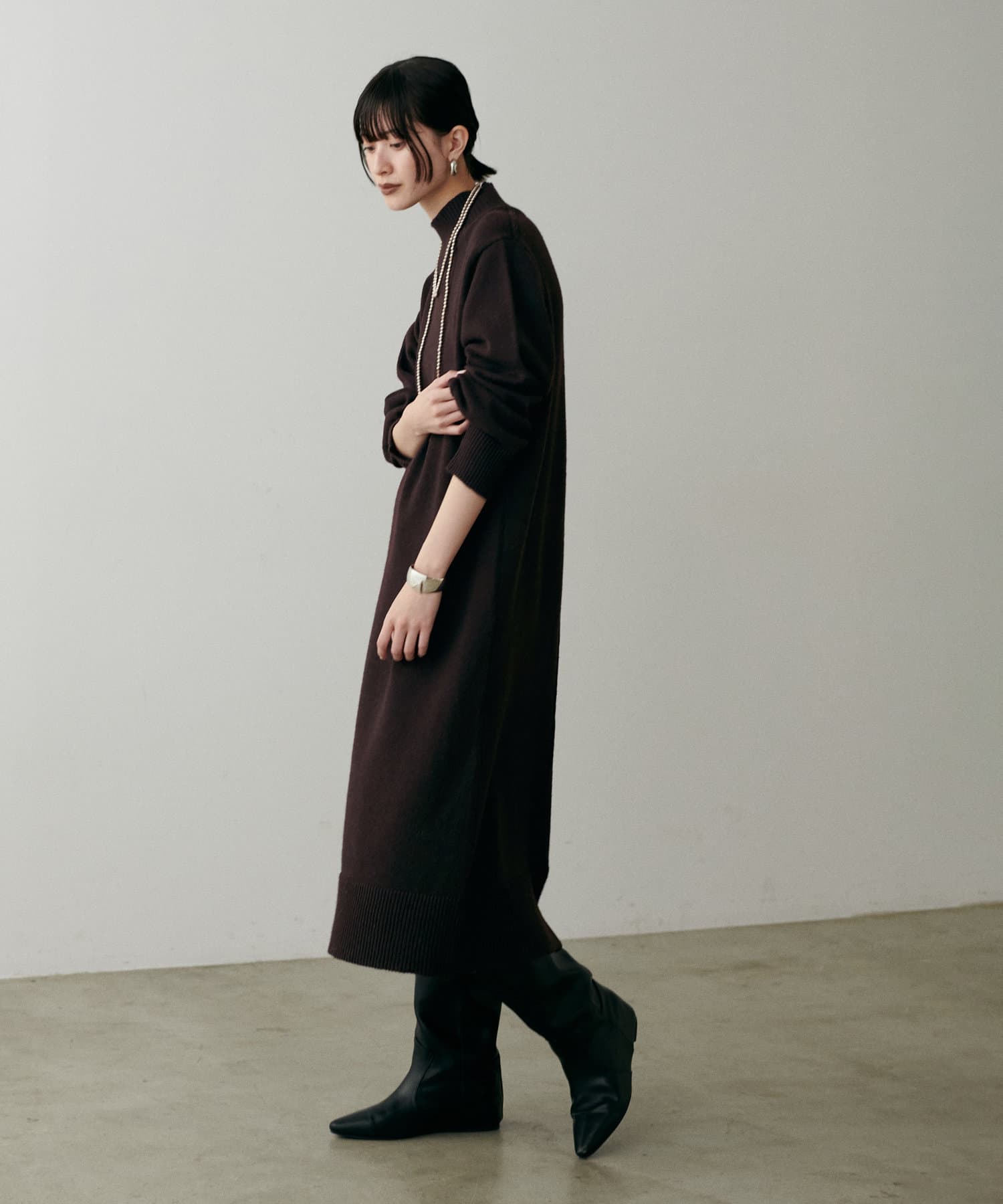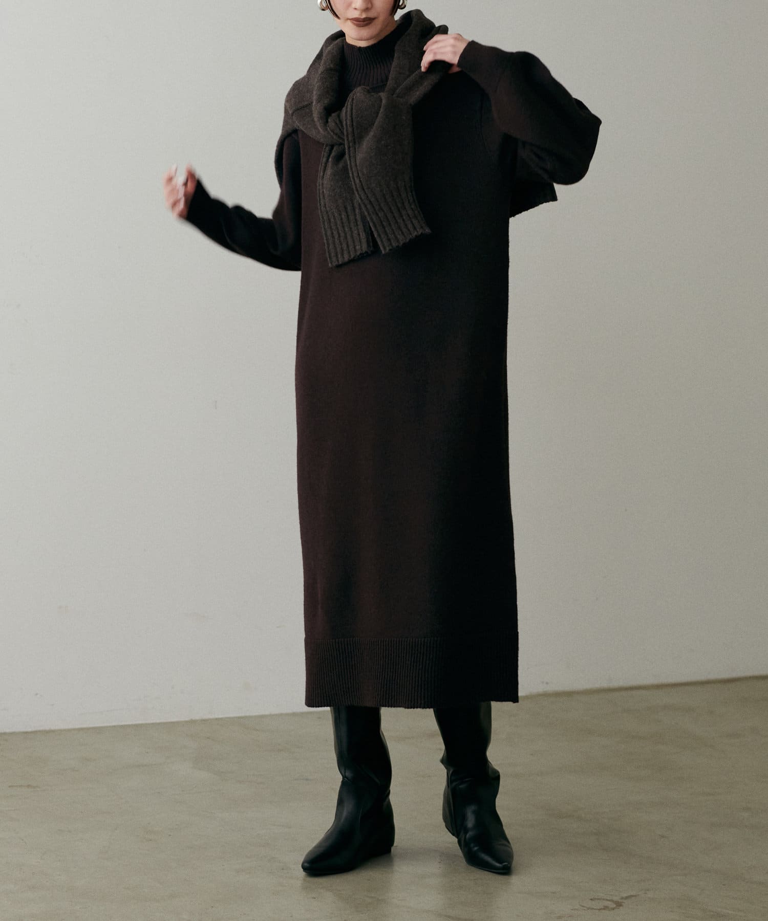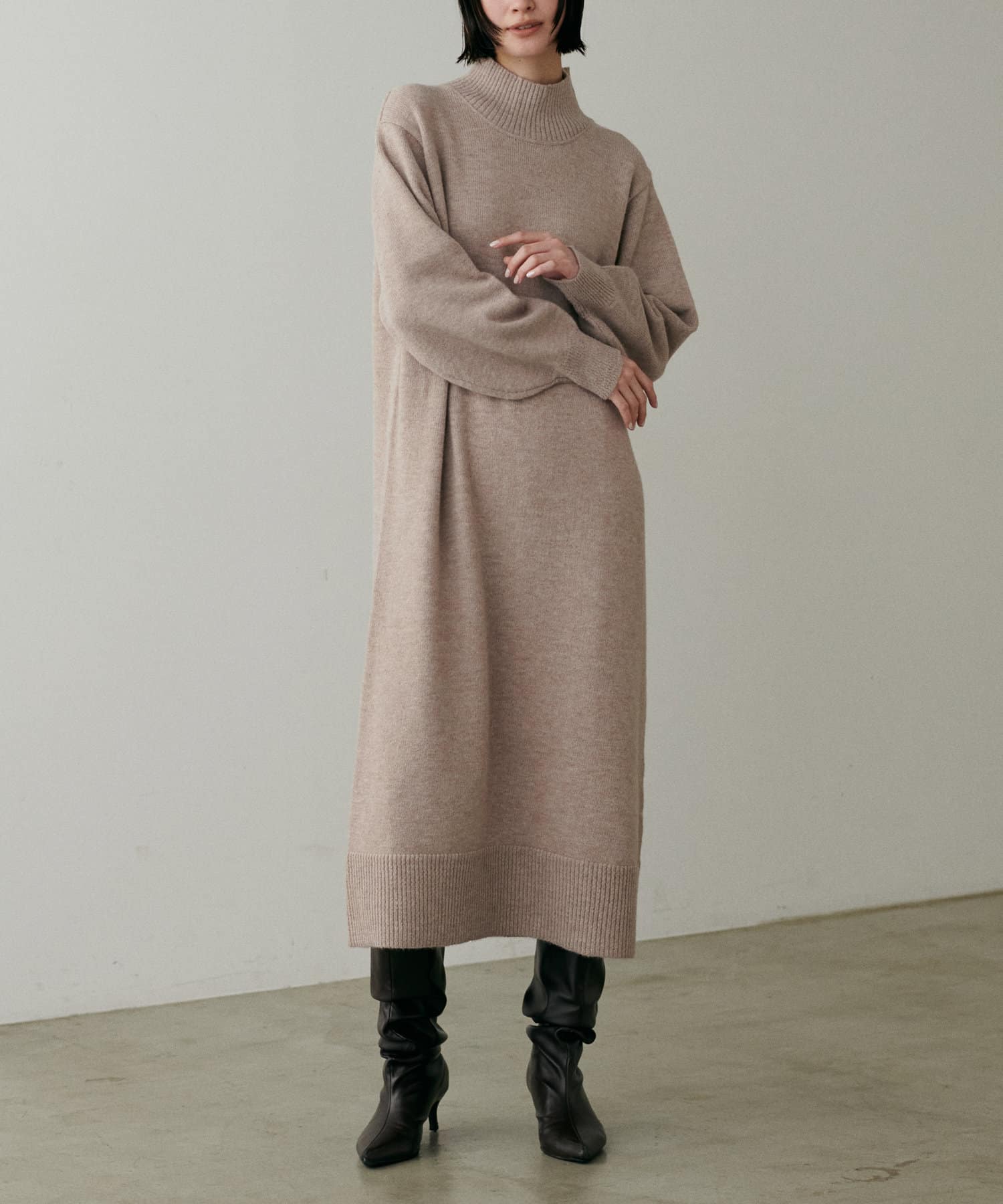 • LARUTA(ラルータ) ウール混リサイクルポリロングニットワンピース
