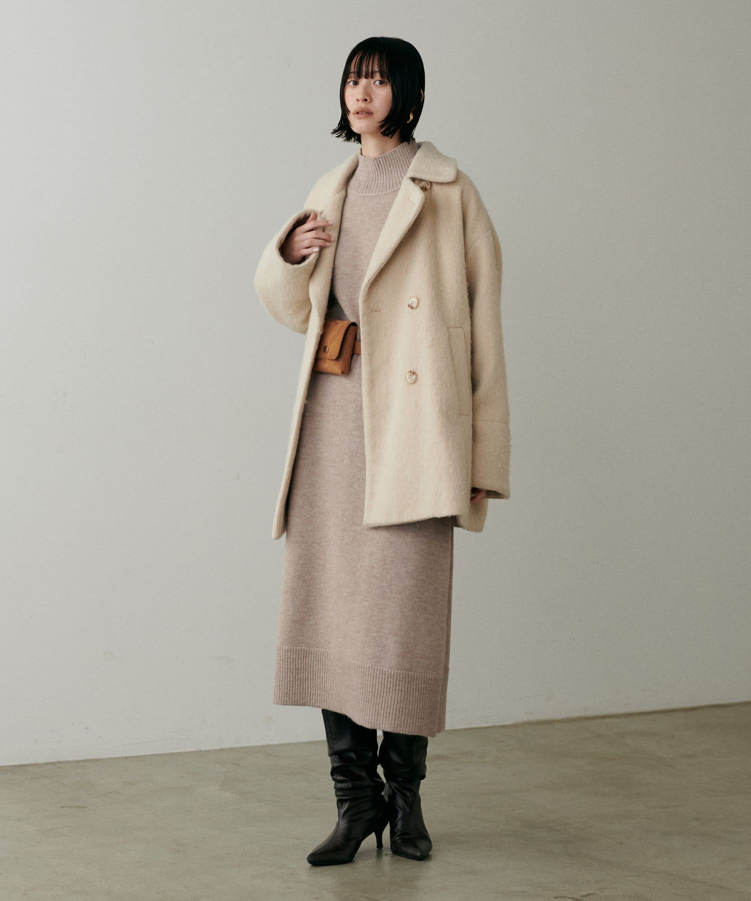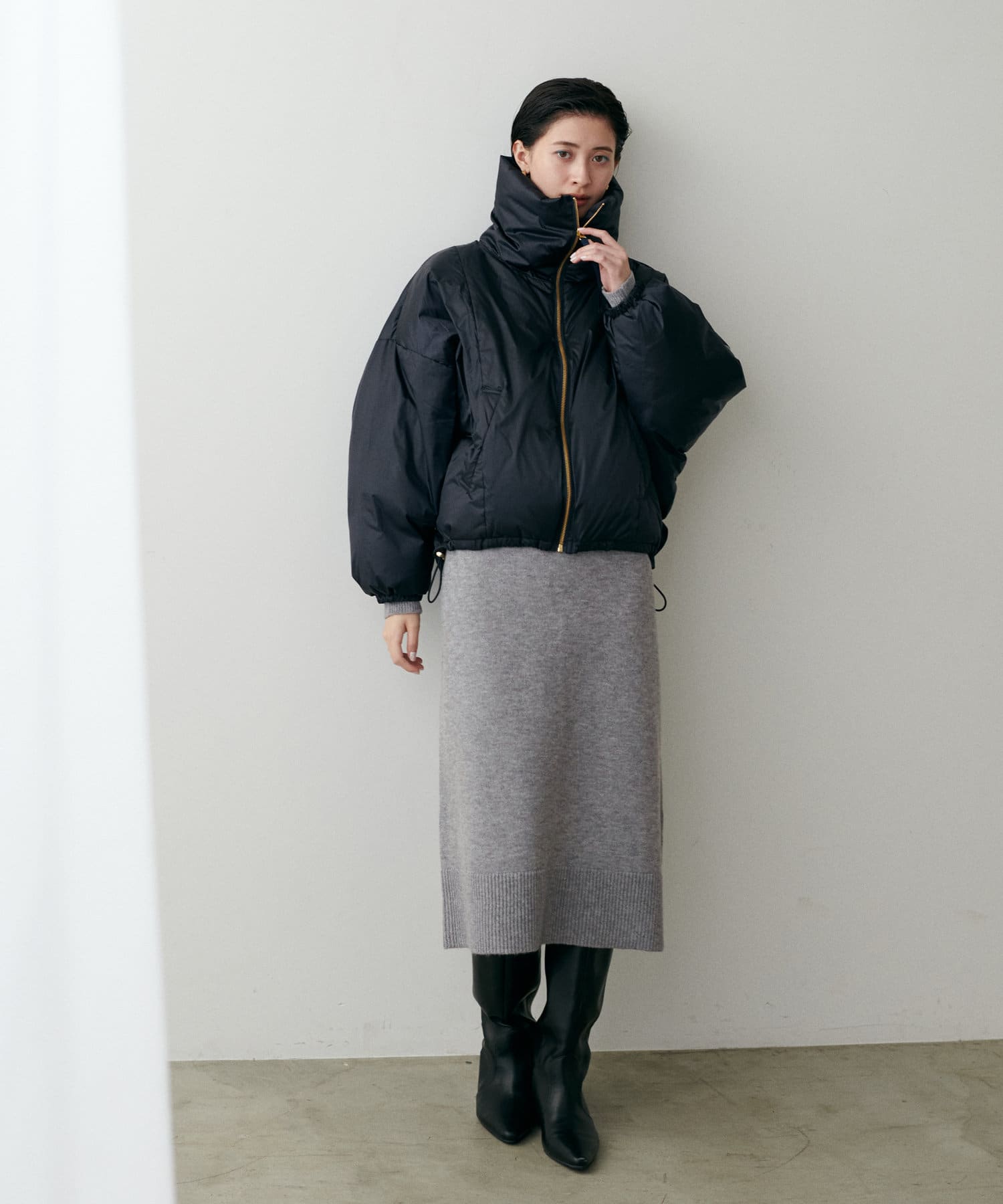 冬でも安心のハイネックに、タイトめなIラインシルエットで