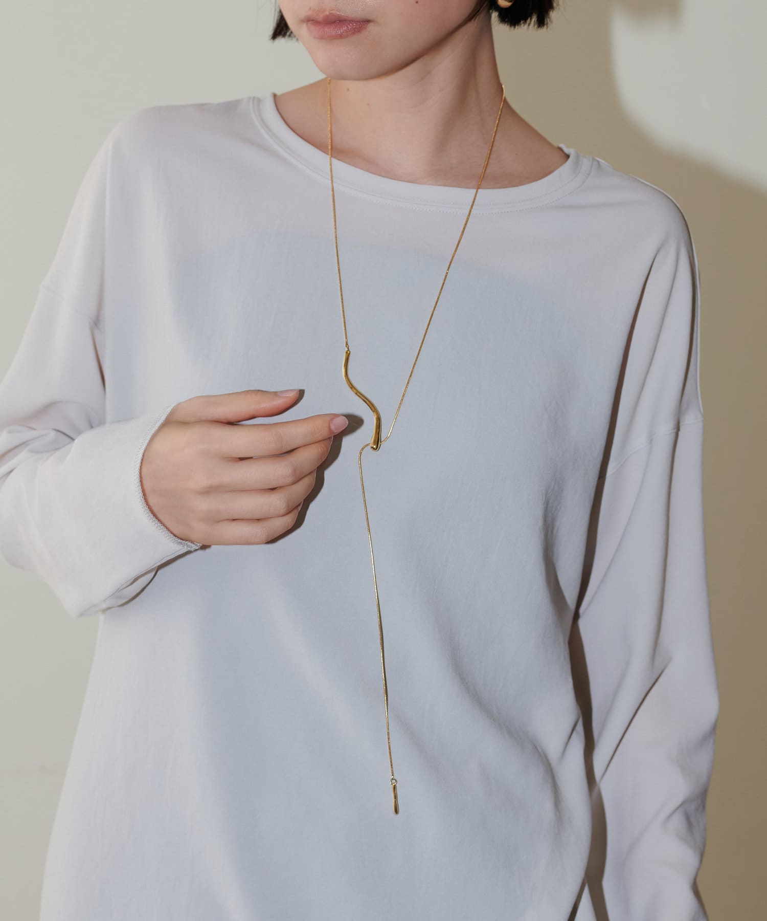 こなれ感のあるY字シルエットとウェーブモチーフが