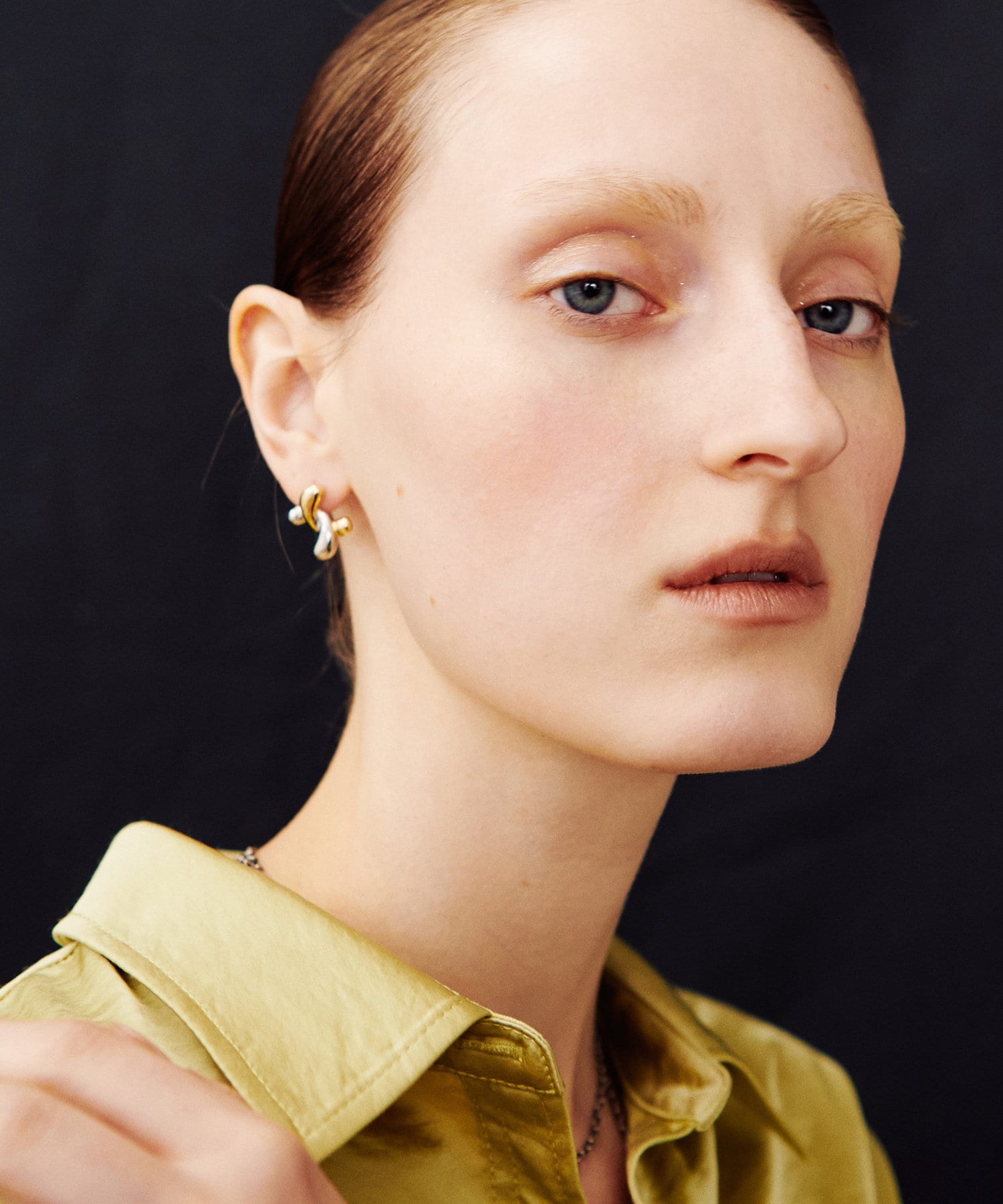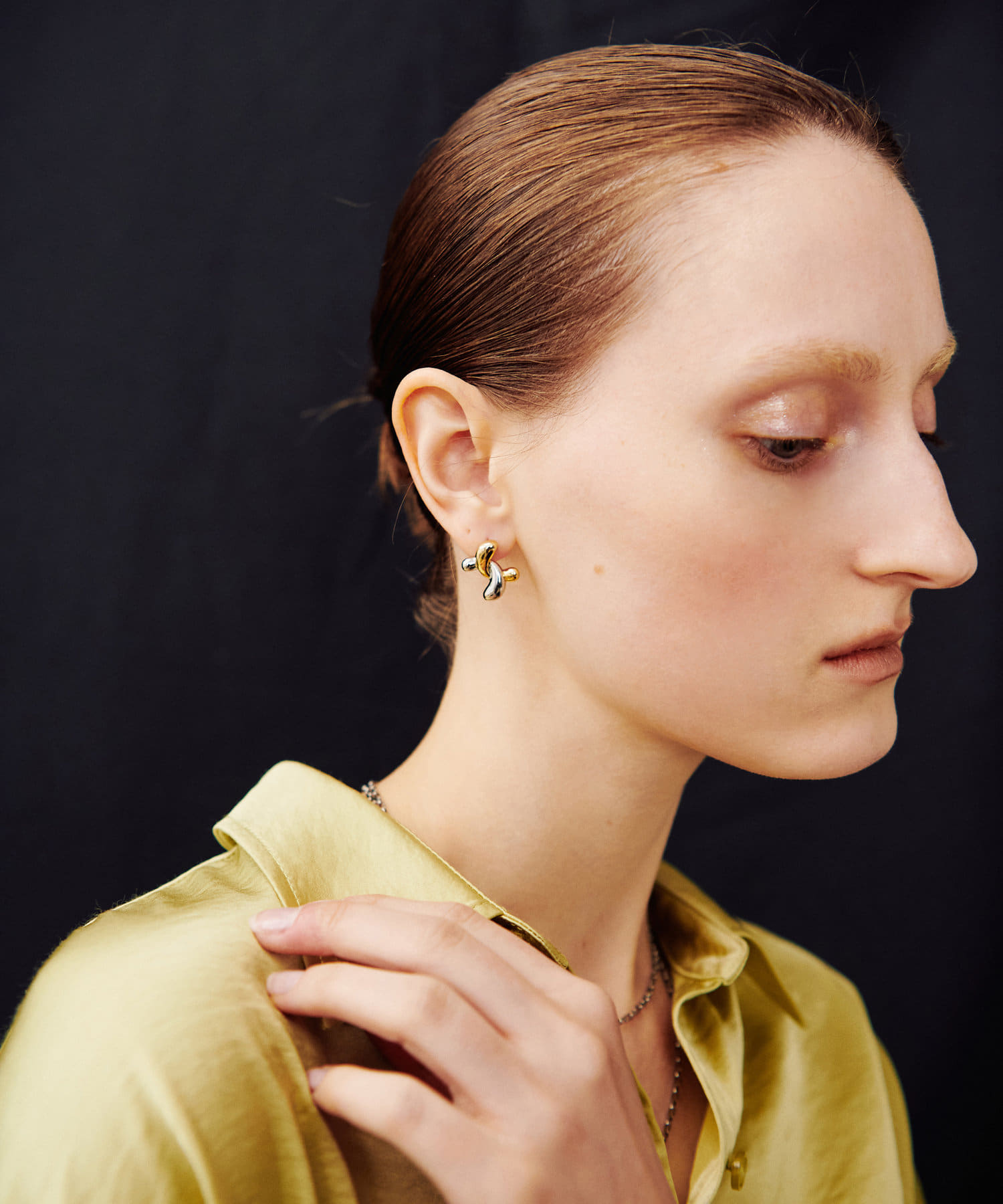 小ぶりながら耳元で存在感を放つ、大人の上品スタイルにプラスしたいアイテムです。