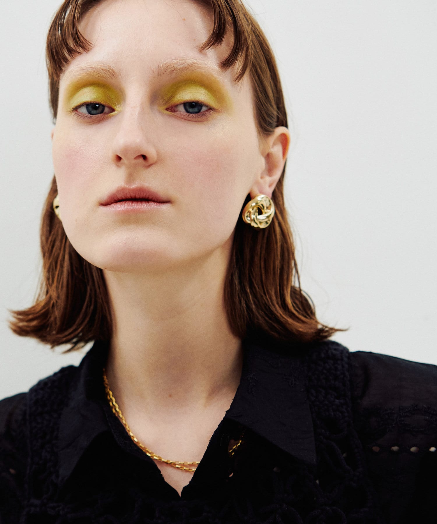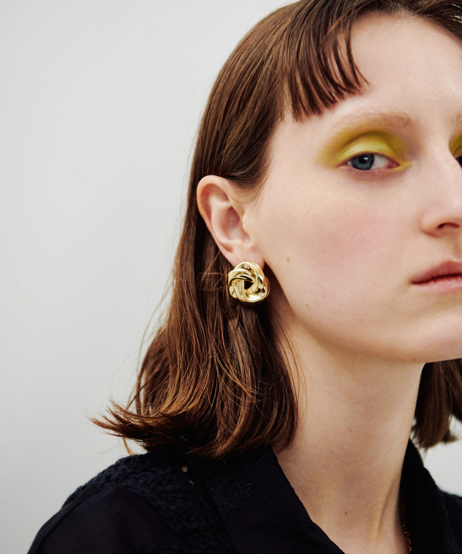 ボリューム感のある円形のモチーフが存在感たっぷりのピアス。