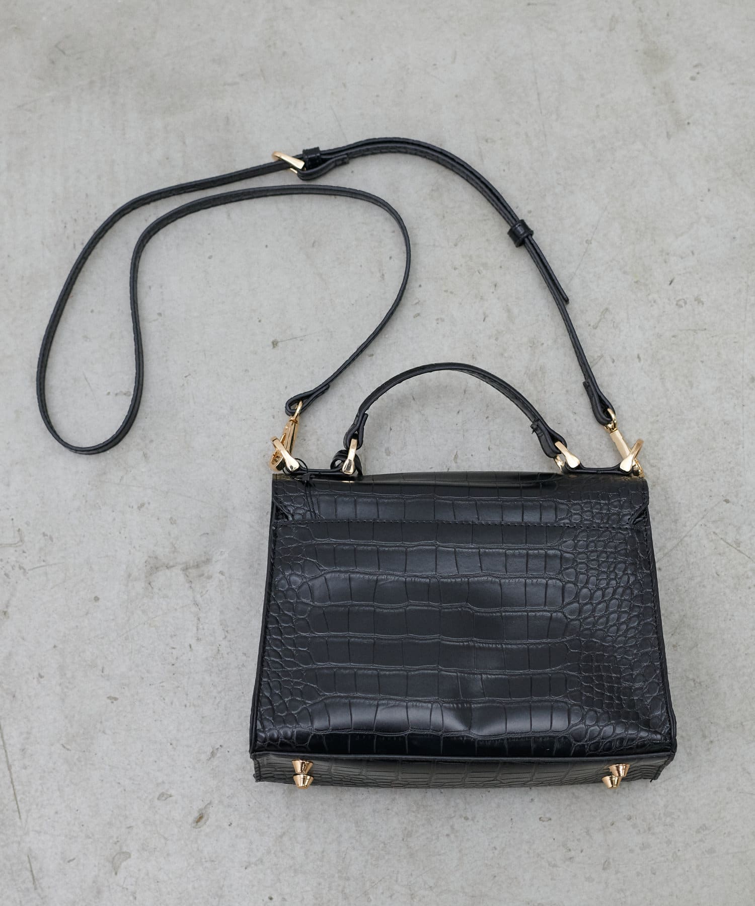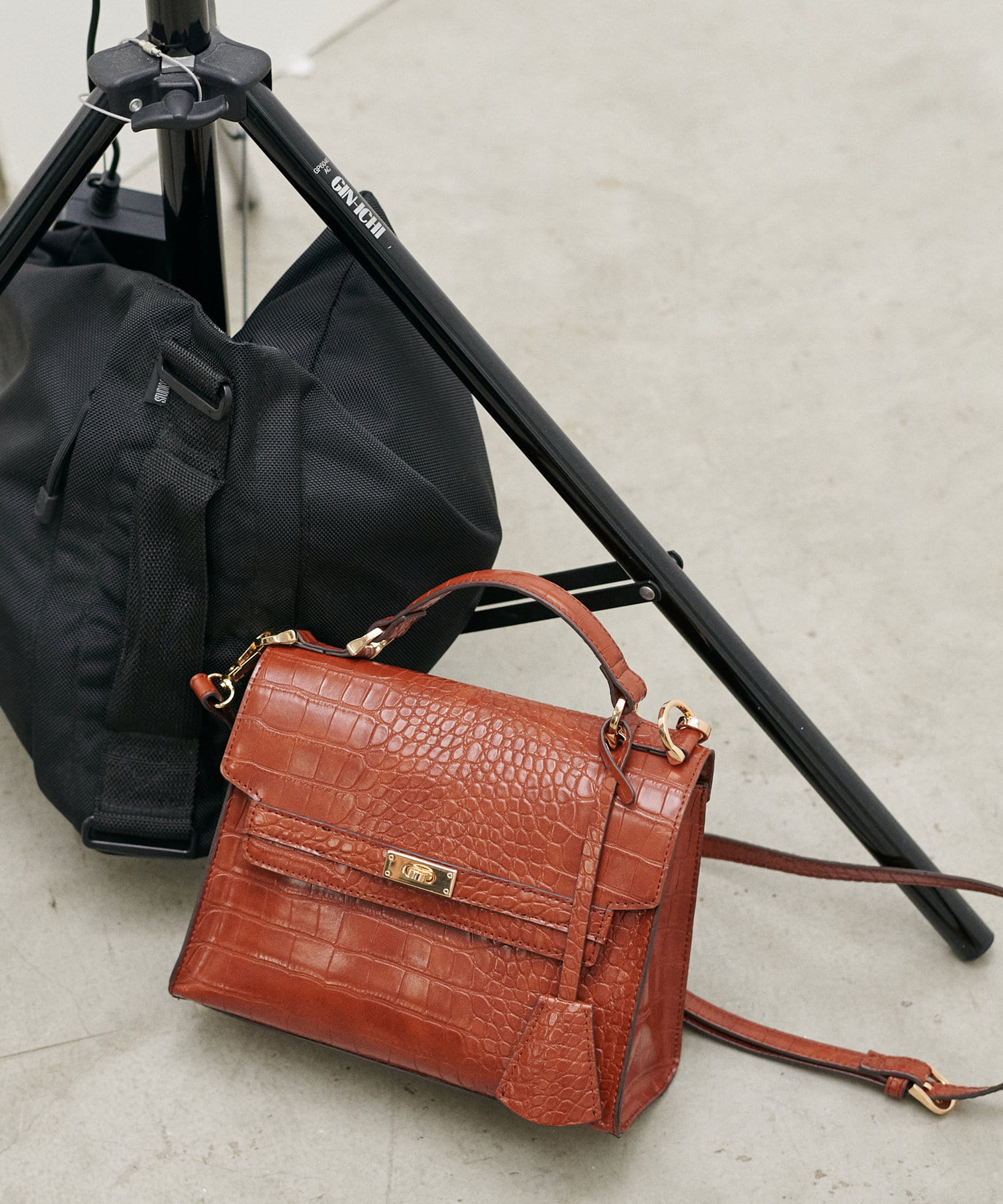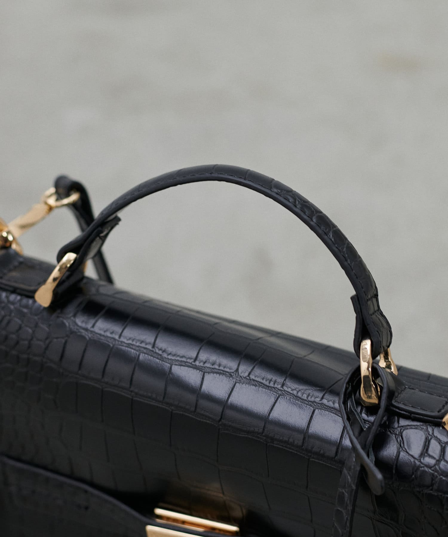 クロコダイル調のシボ感のある質感のブラックとオレンジ