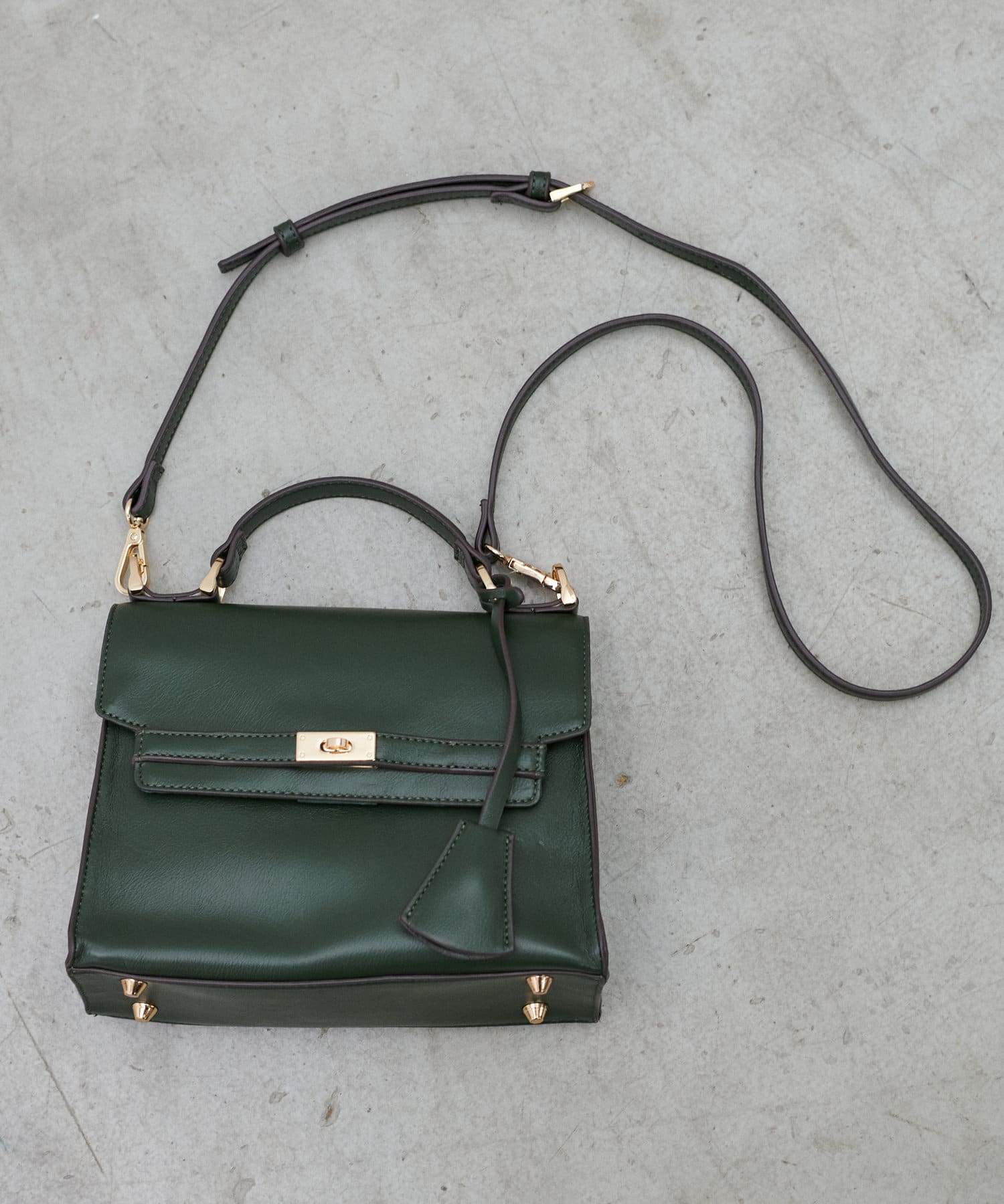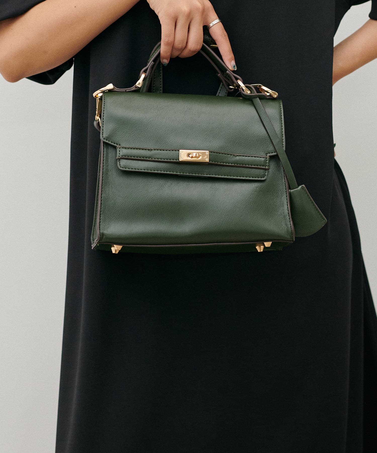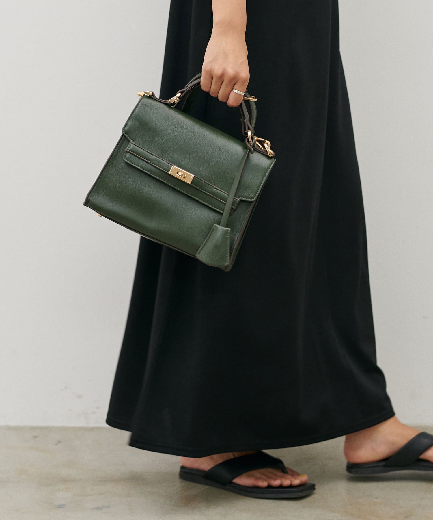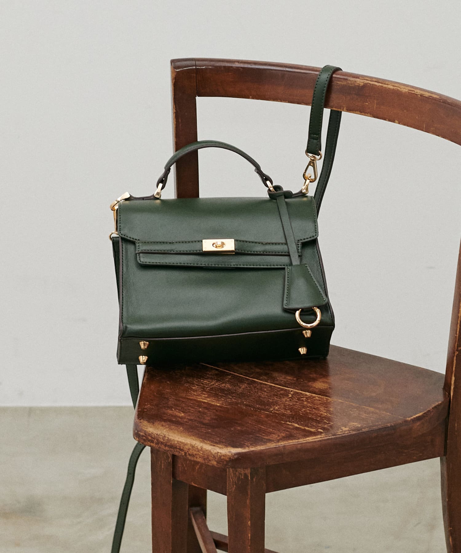 マットな質感のグリーンは落ち着いた色合いでコーディネートに馴染んでくれます。