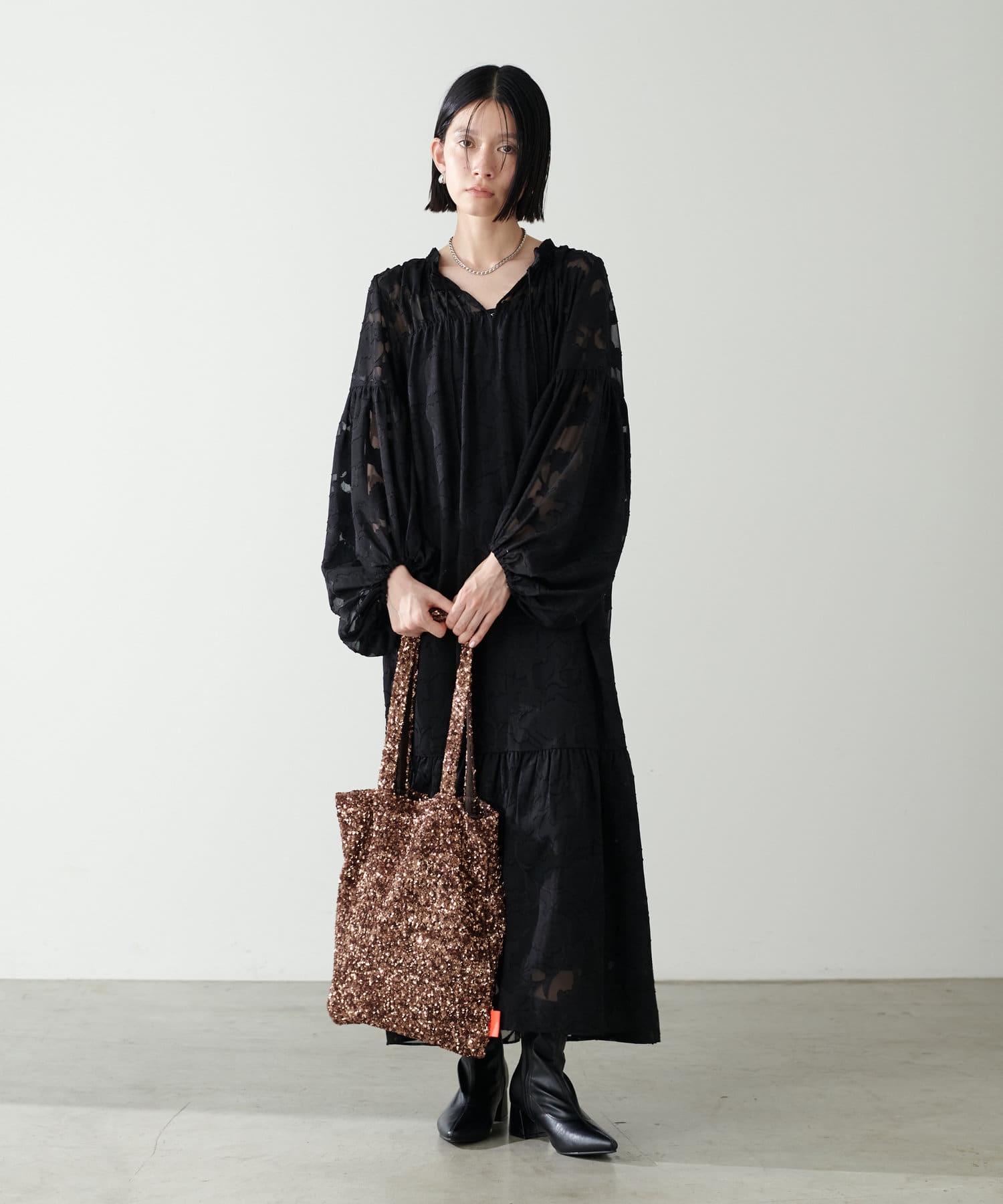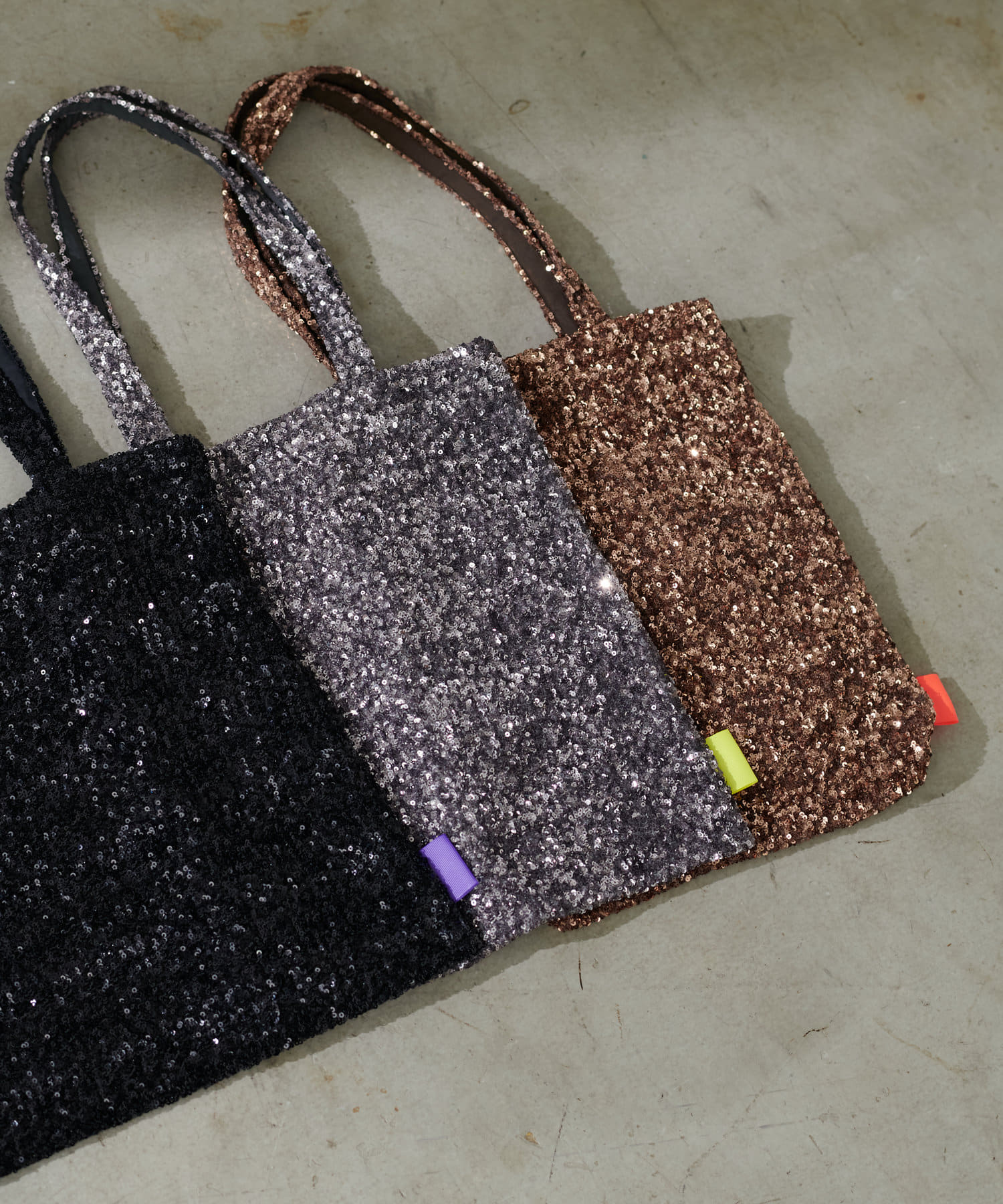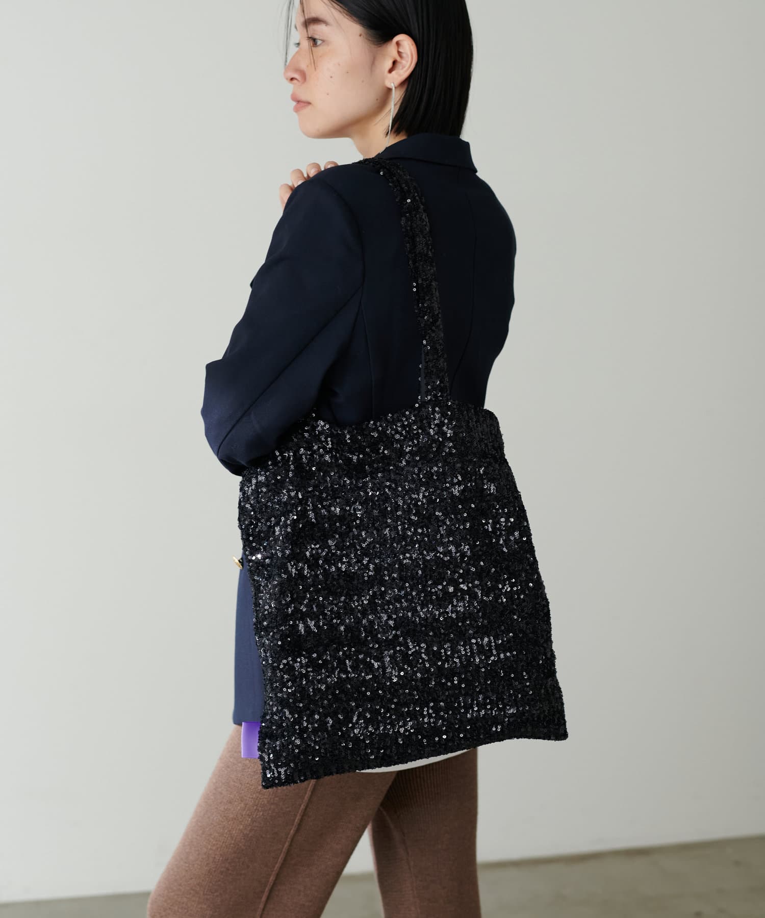 きらきらとしたスパンコールが魅力のコーデが華やかになるトートバッグ。