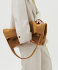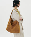 容量の大きいサイズ感のスエード風のトートバッグ。
