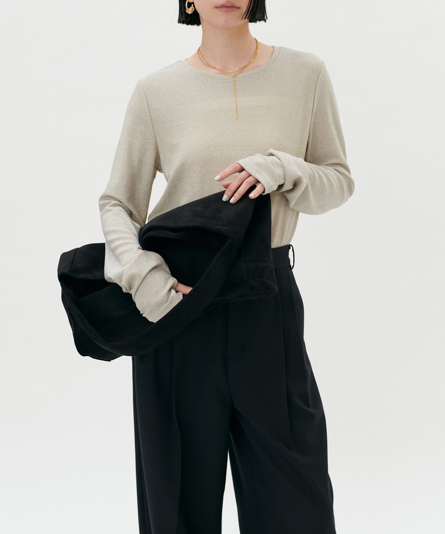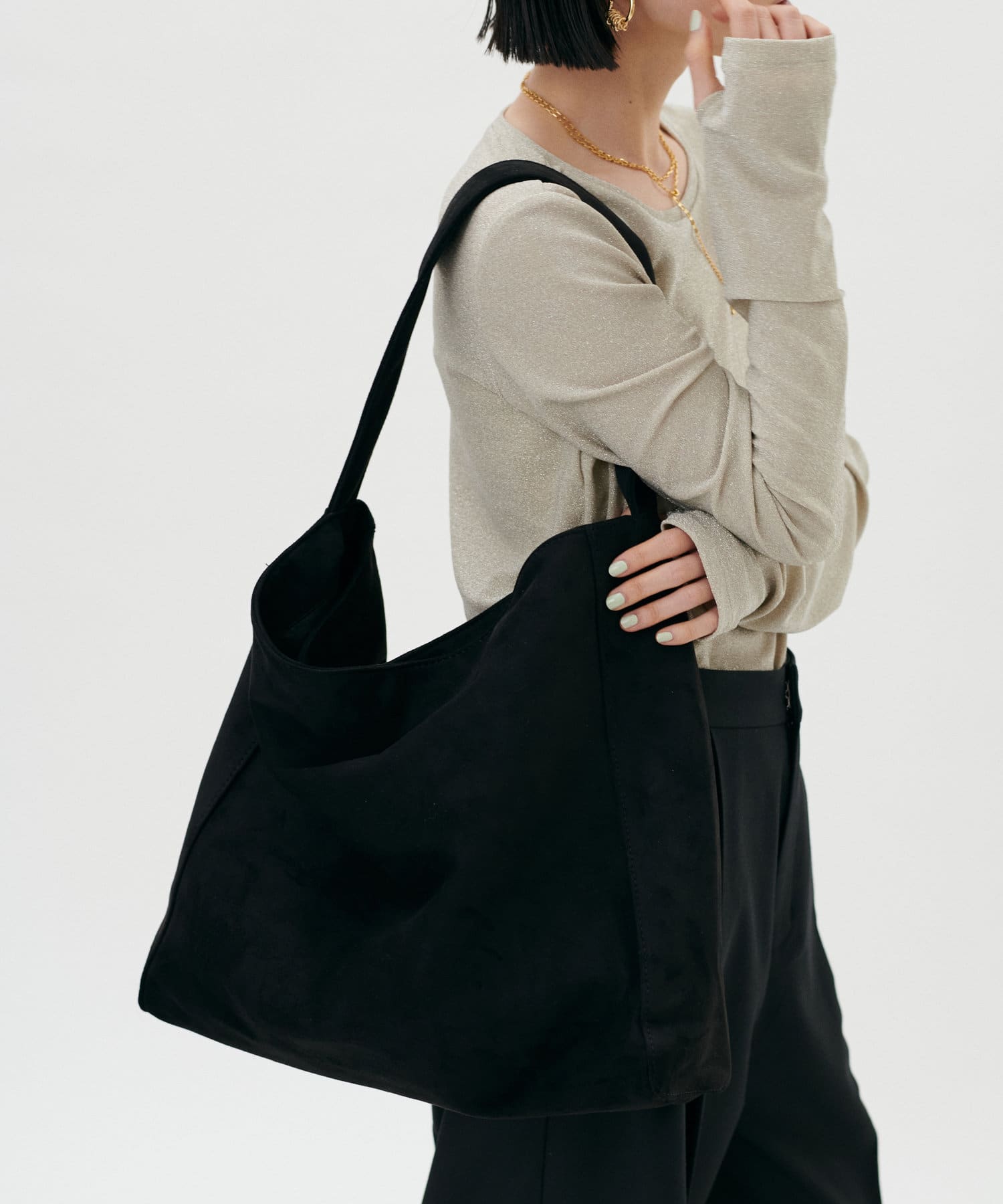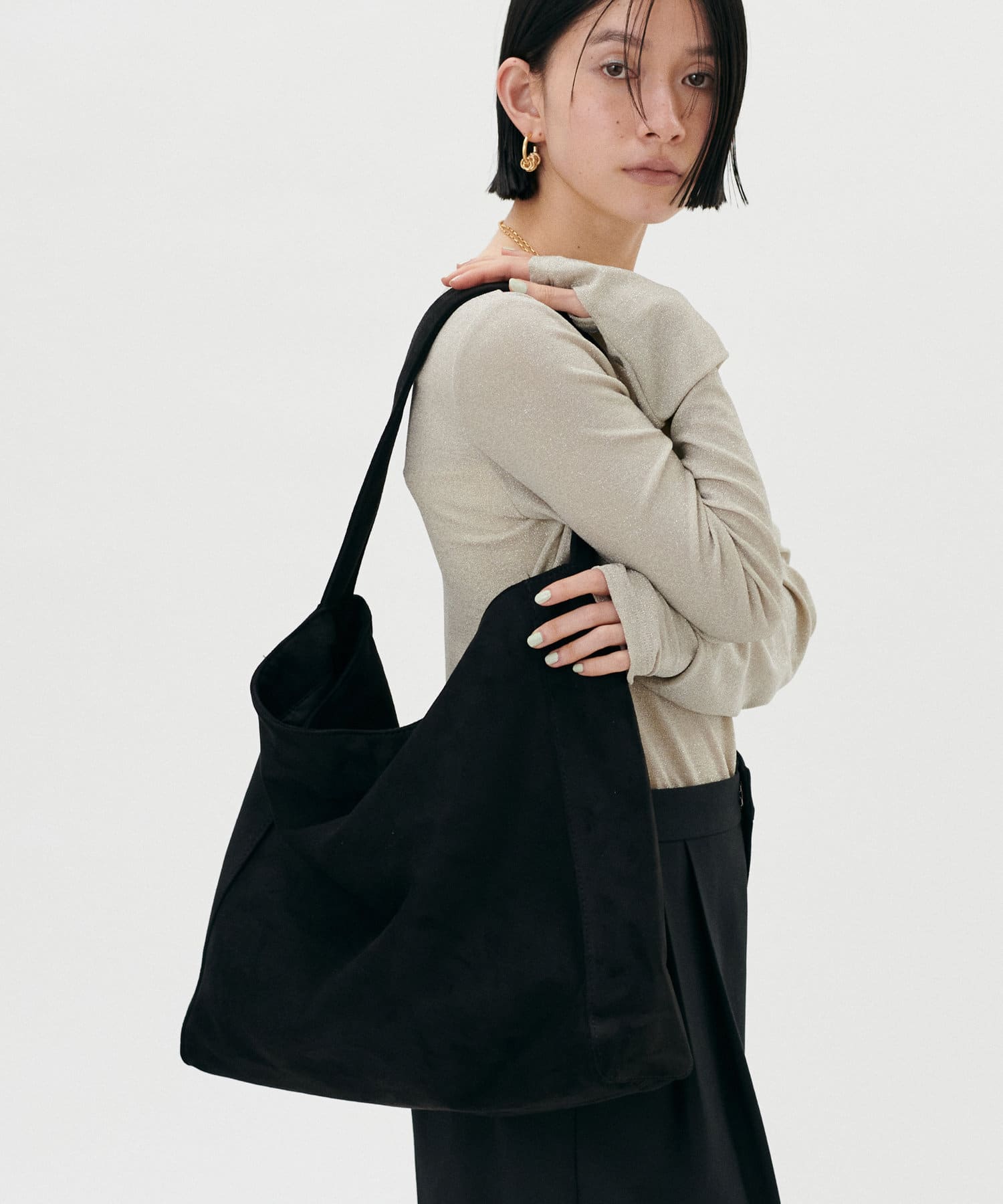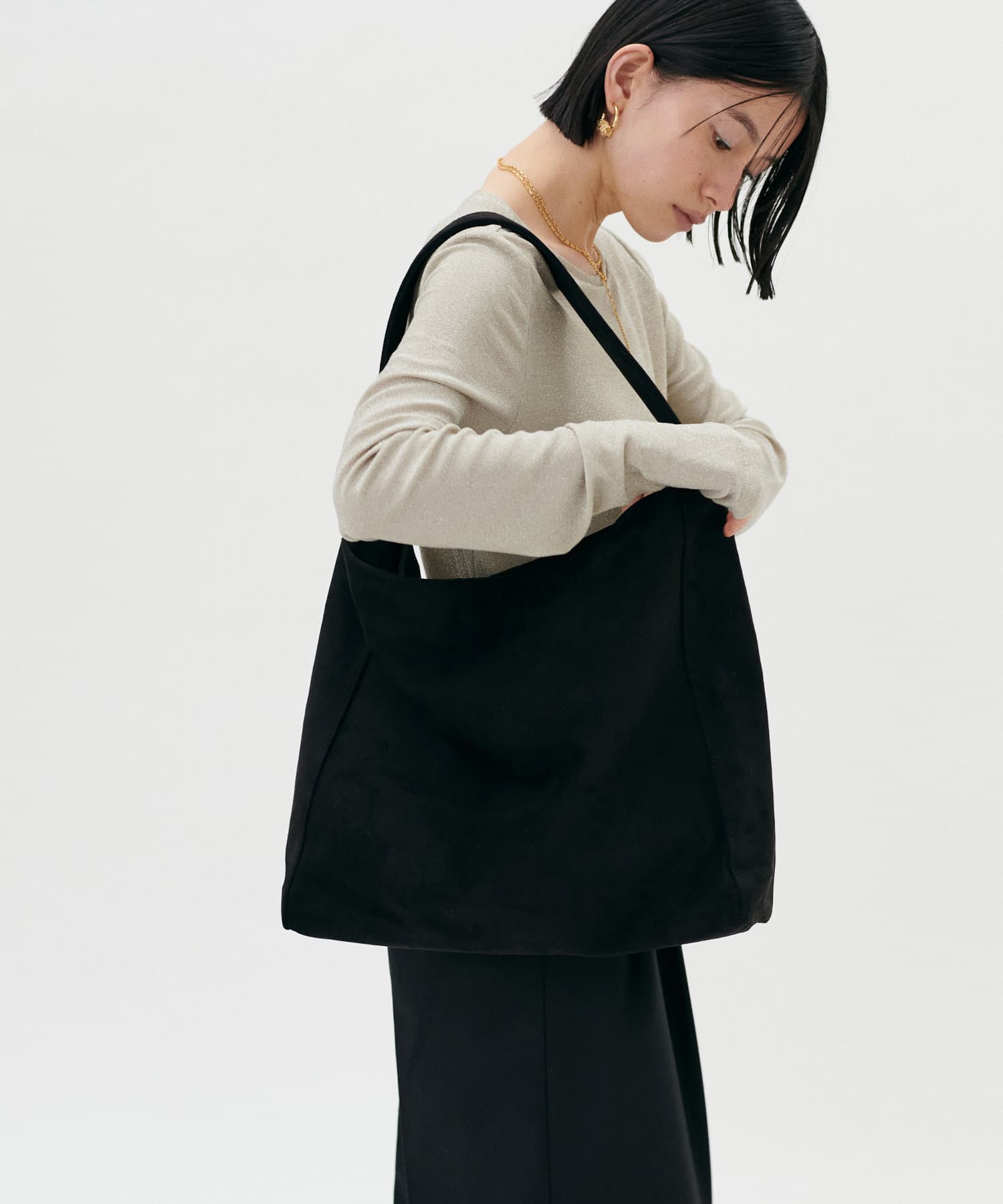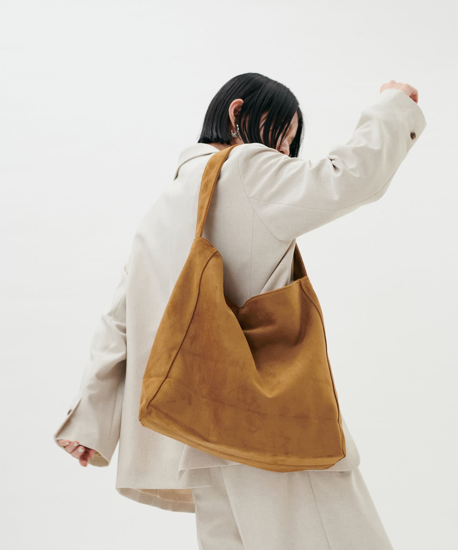 くたっとしたトレンドシルエットとなめらかなスエード素材が上品な印象です。