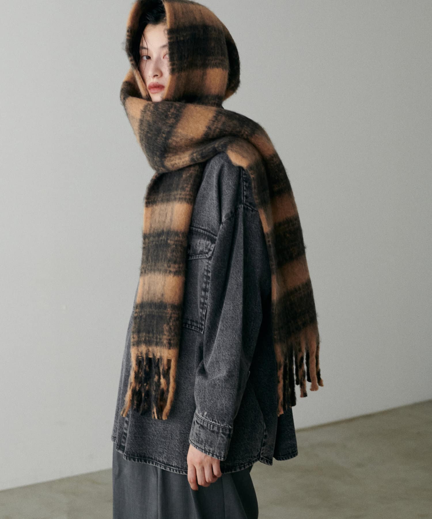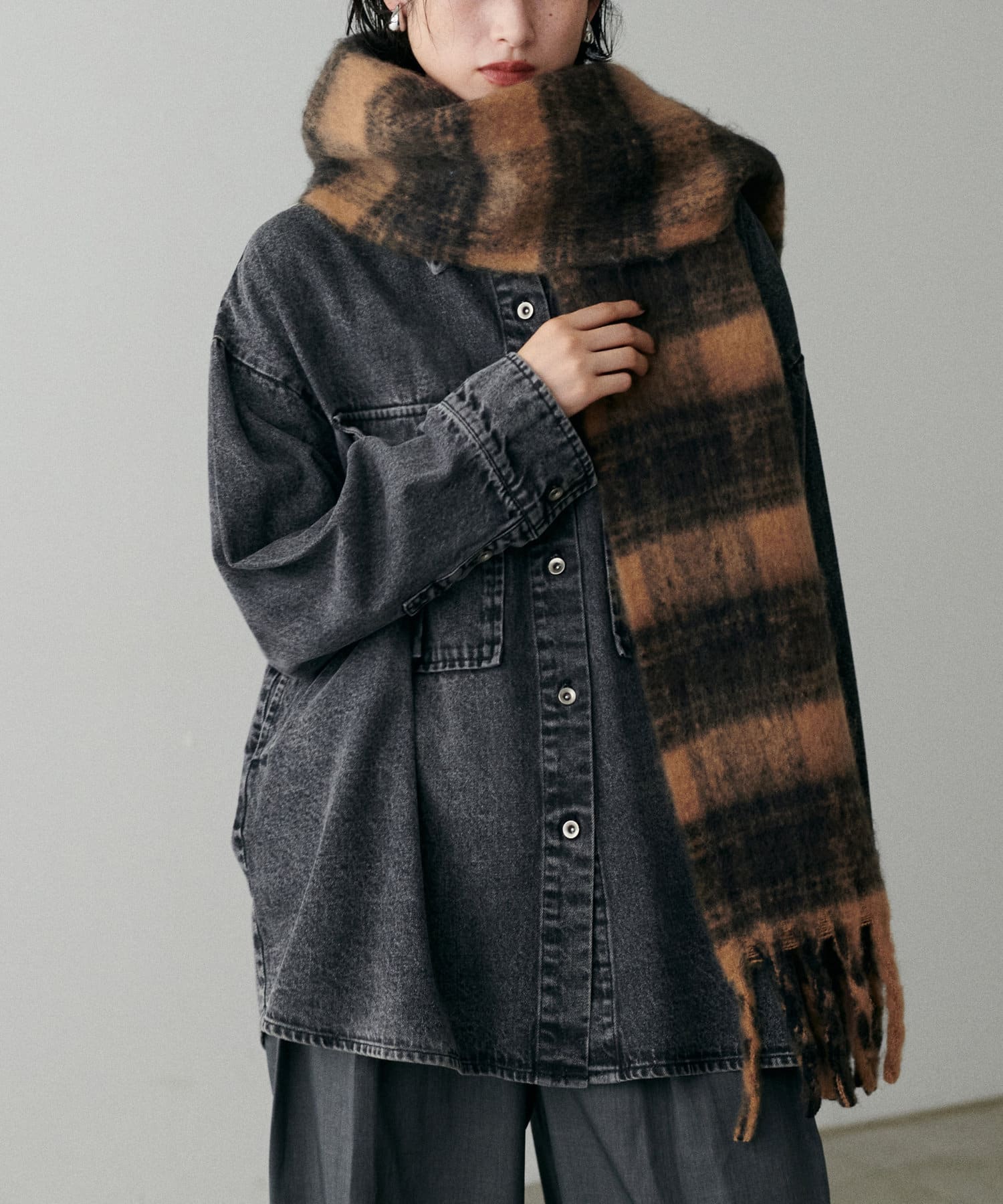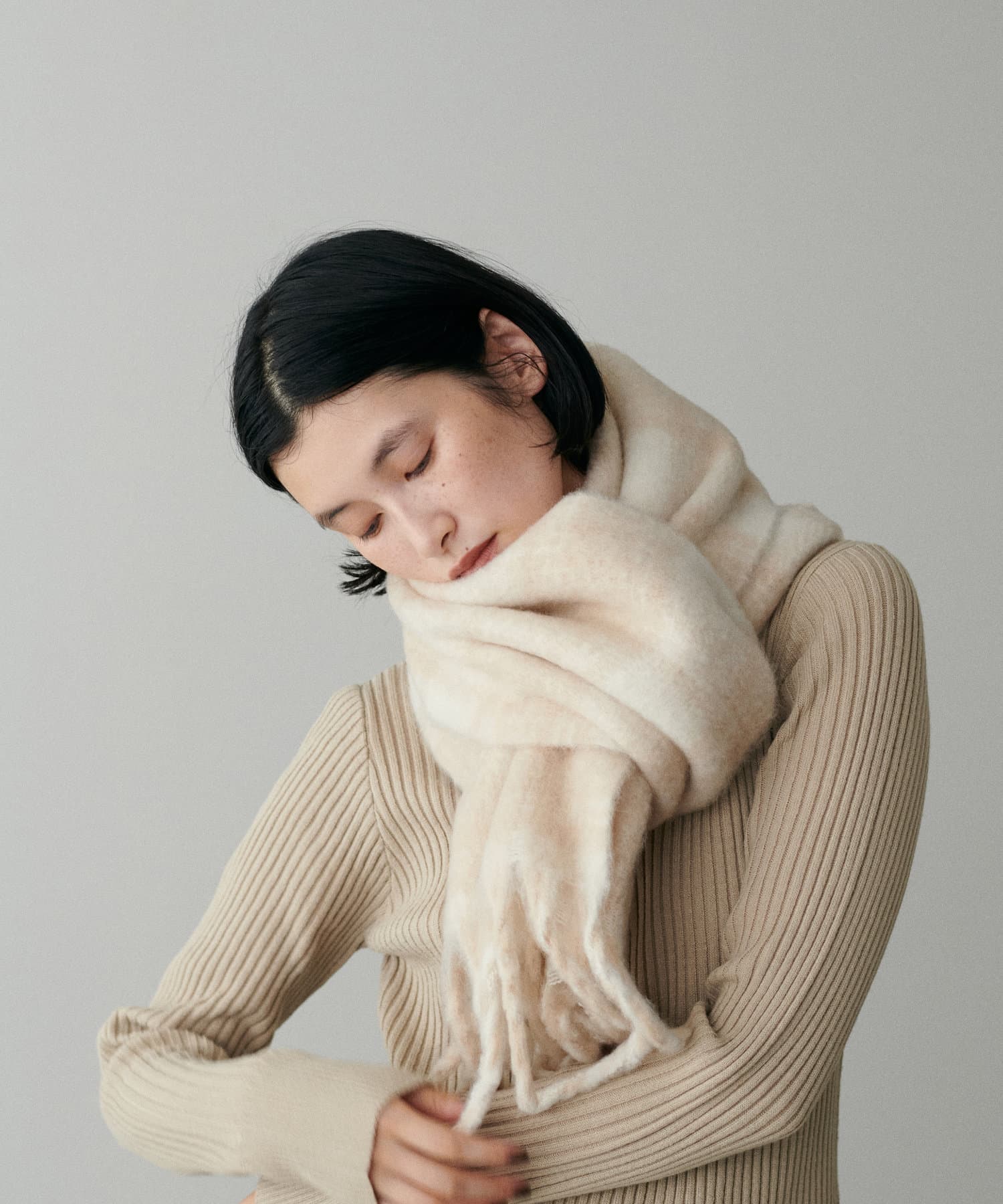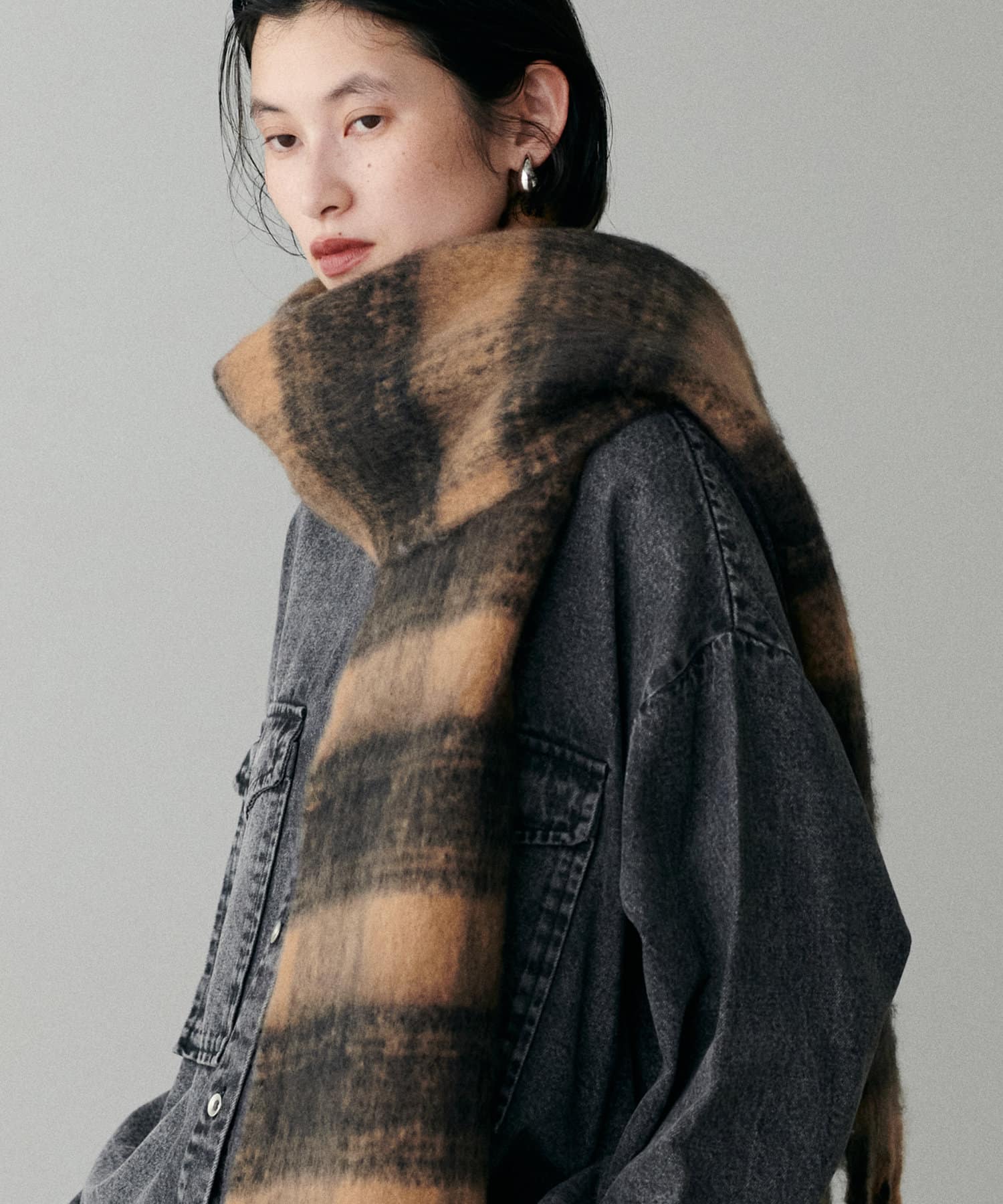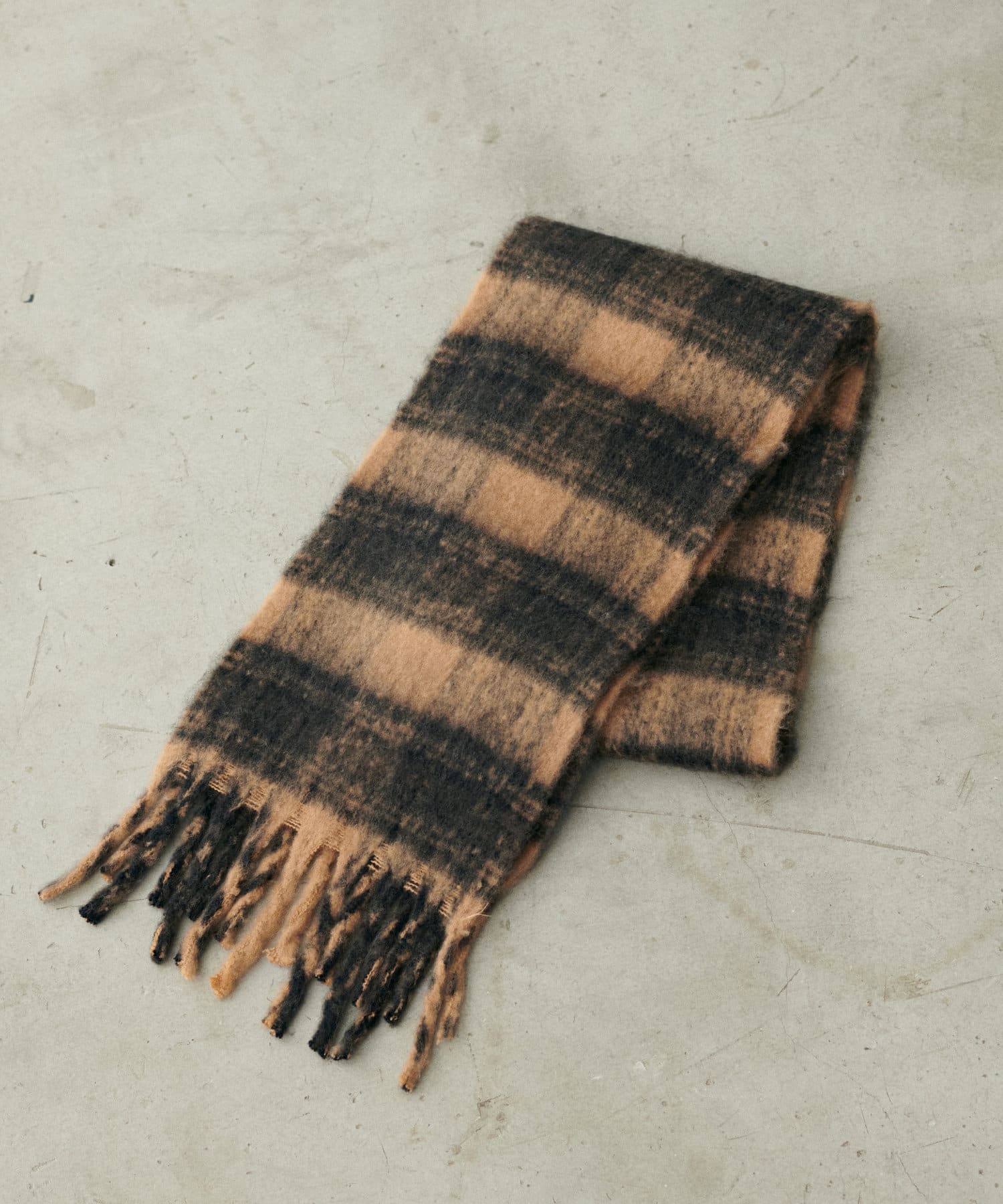 季節感のあるカラーリングが魅力的なチェック柄マフラーは