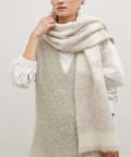 ショールとしてもお使いいただけます。ロゴは巻くことで
