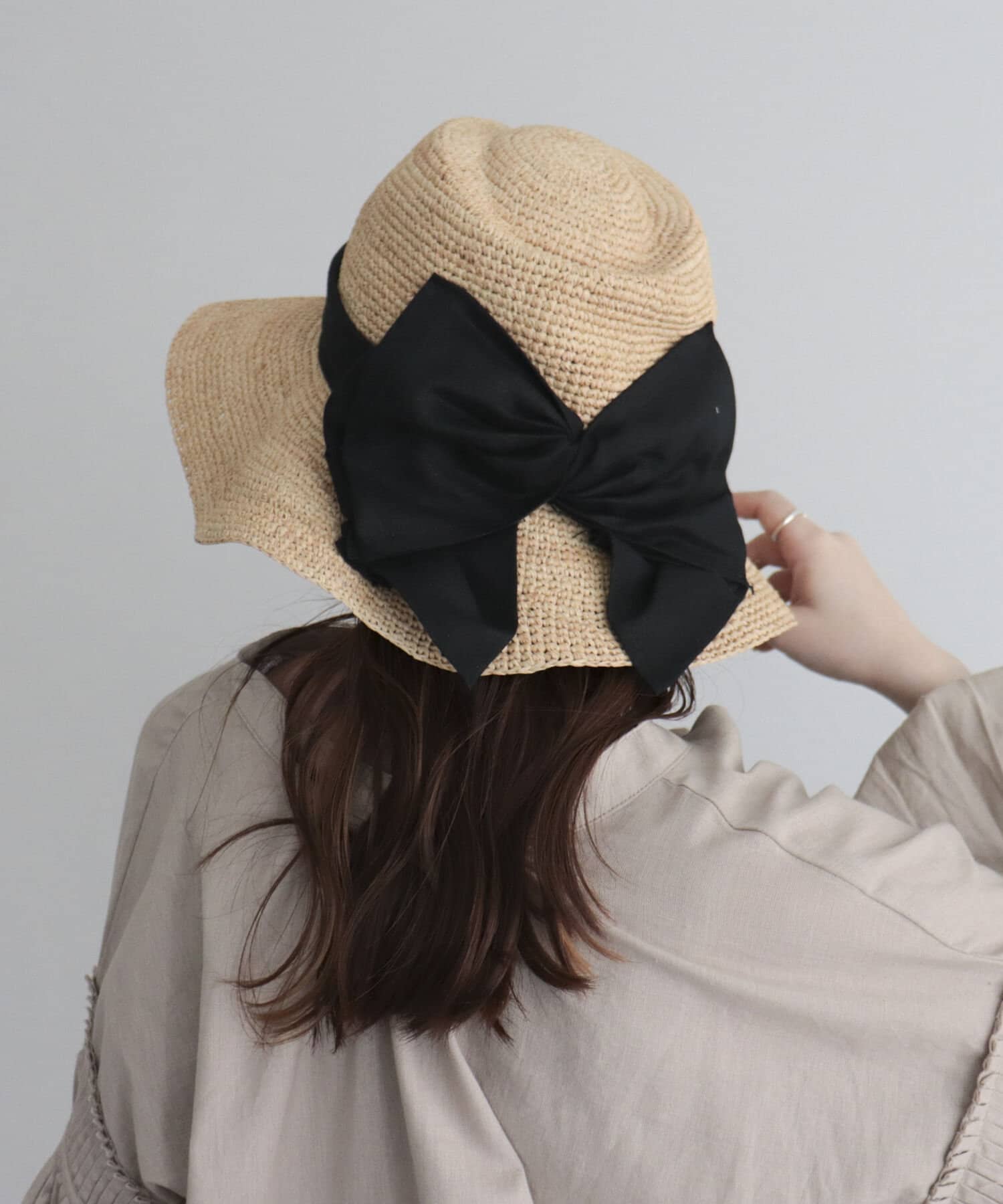 ・後ろ姿も目を引く大きめのリボンは、ねじりリボンなので甘すぎないカジュアルなスタイリングにもおすすめ