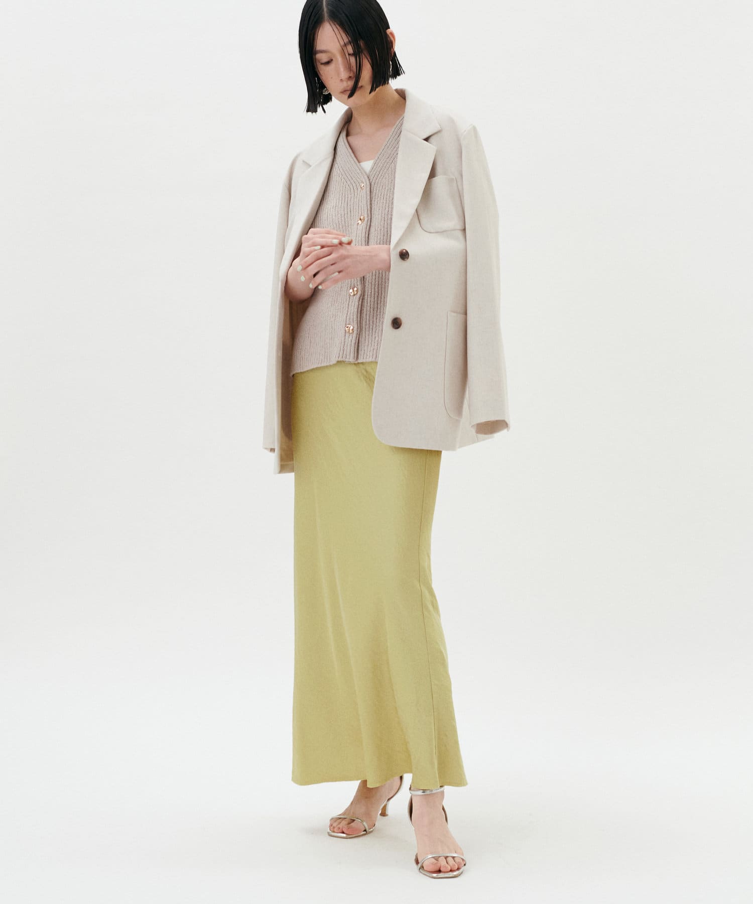 セットアップで着用いただくとこなれ間のある上品スタイルが完成。