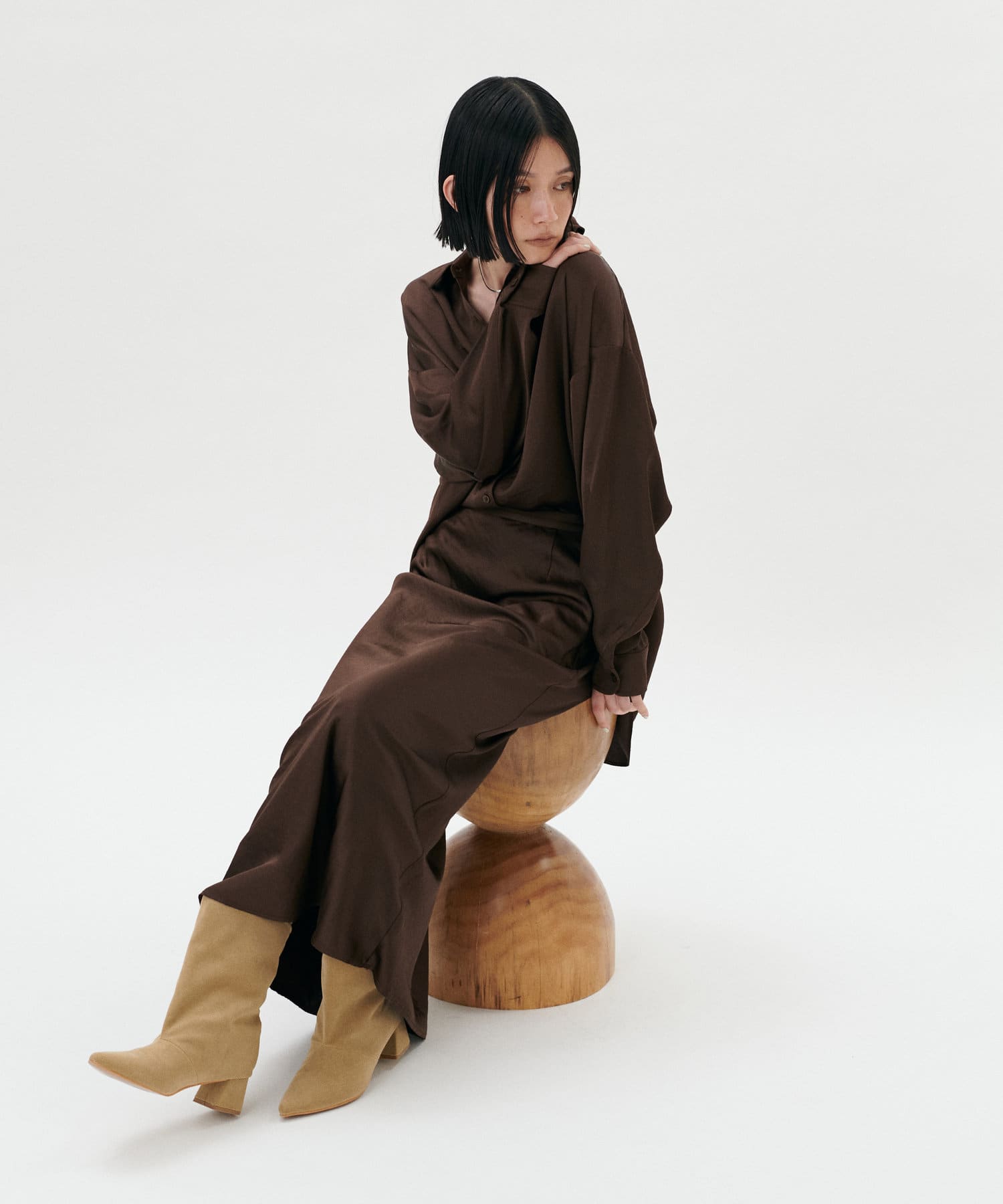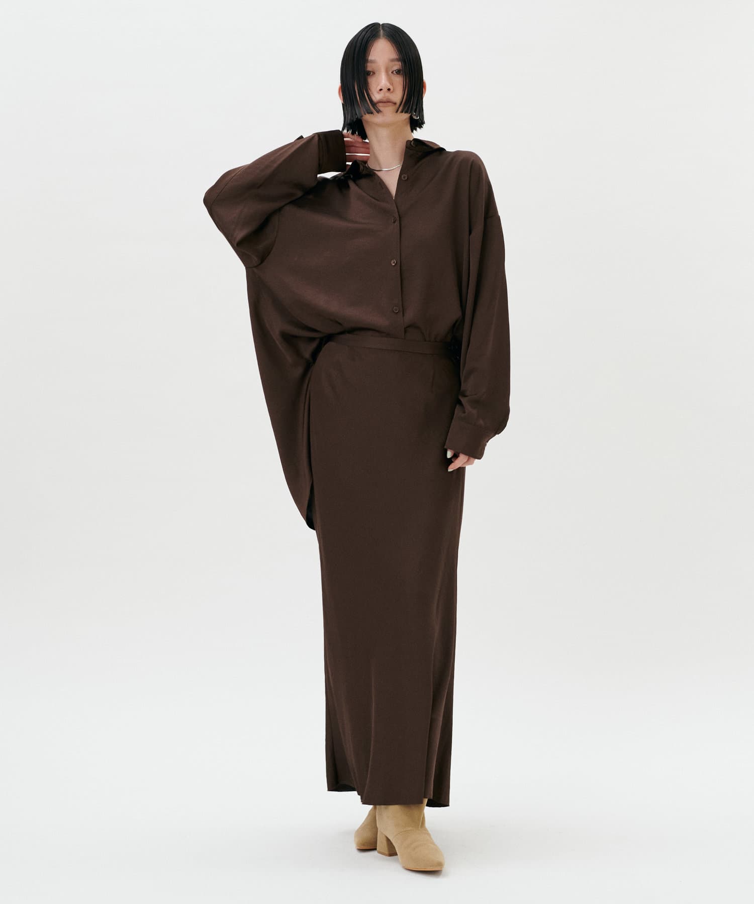 上品な光沢が大人っぽく、とろみのある素材感が特徴です。