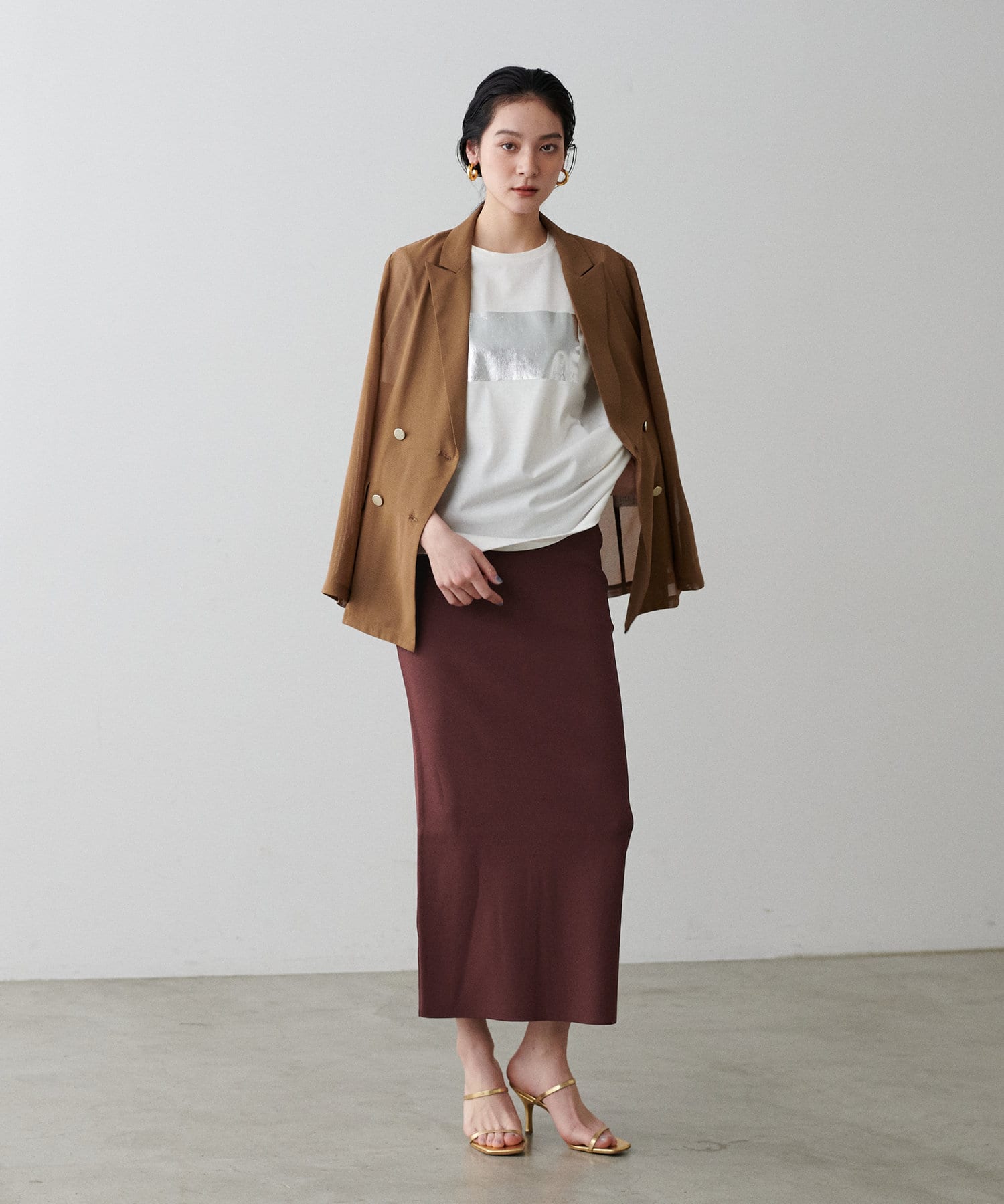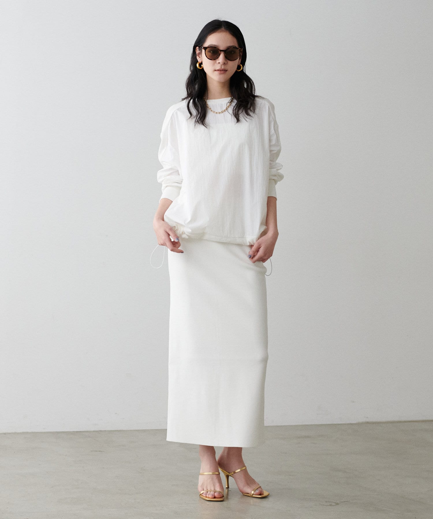 ブラウスやシアーシャツなどと合わせてフェミニンにも