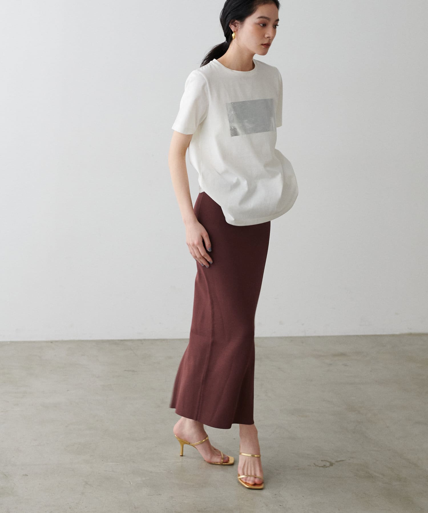 シンプルIラインニットスカート