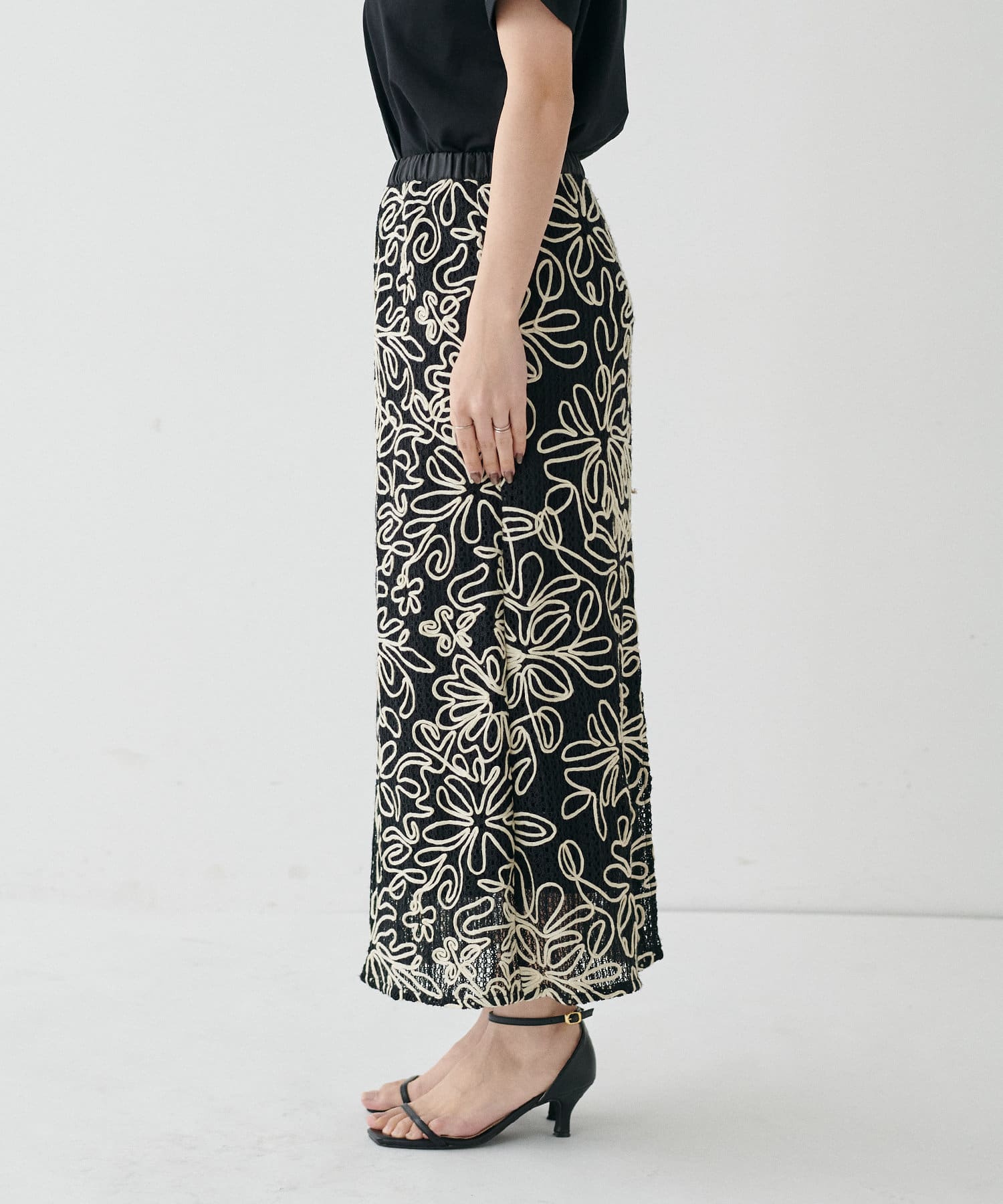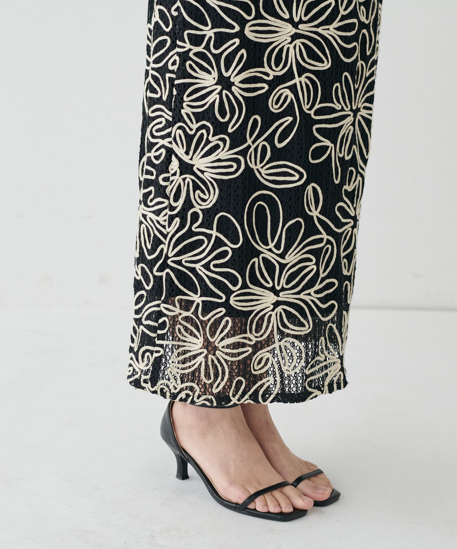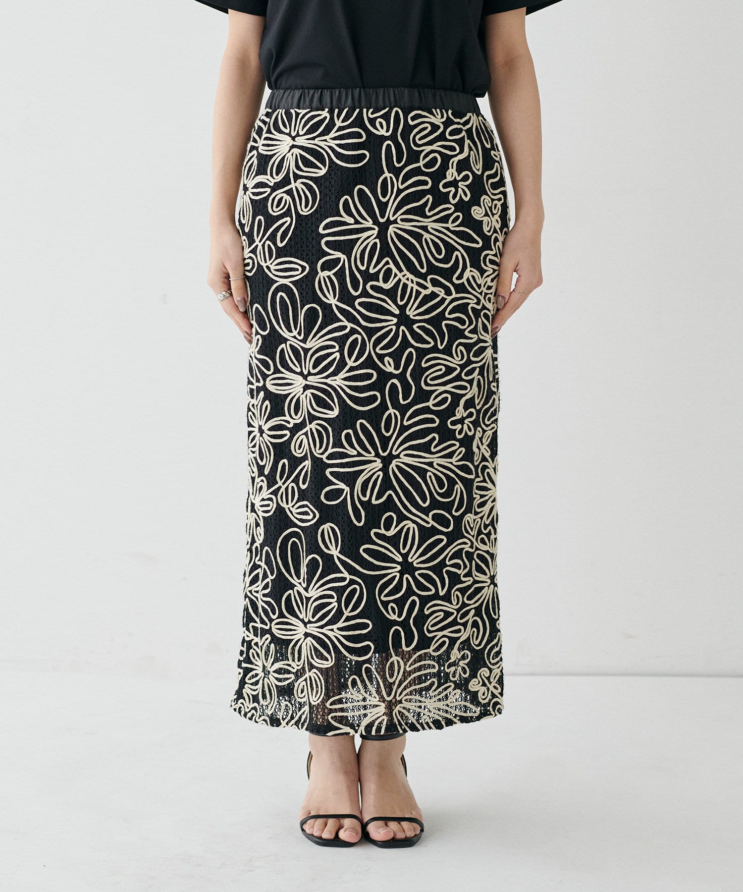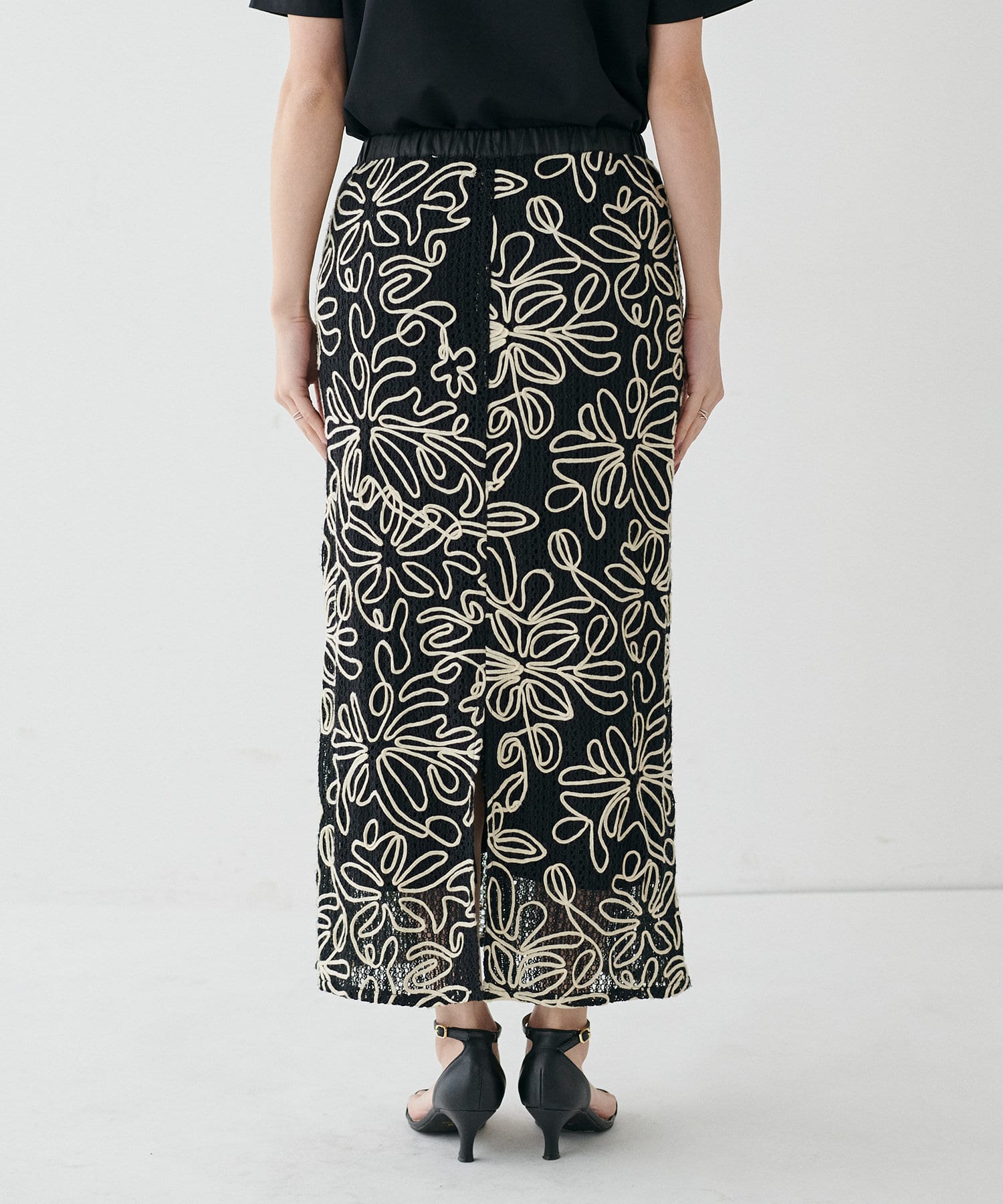花柄のようなコード刺繍が存在感のあるレーススカート。