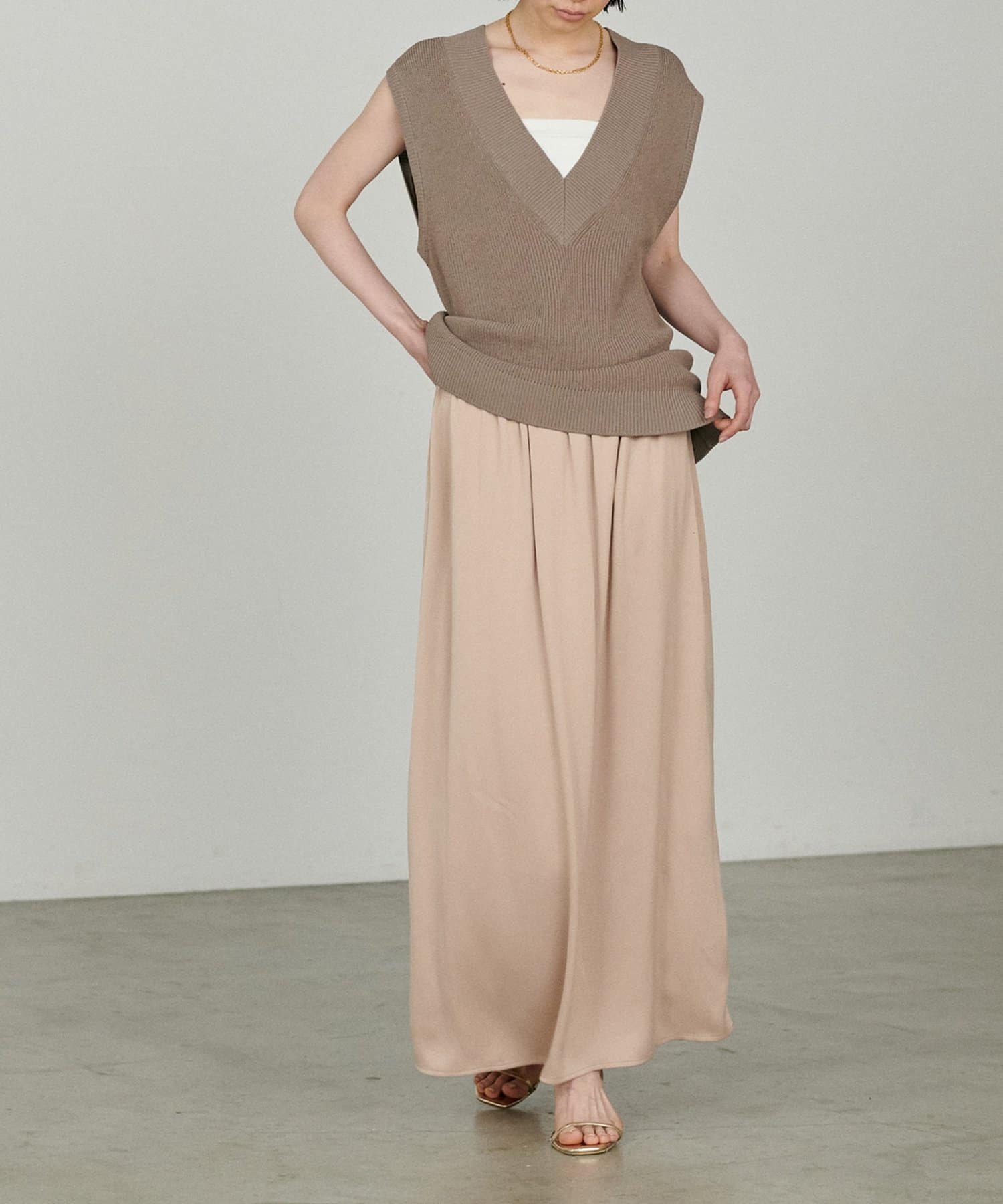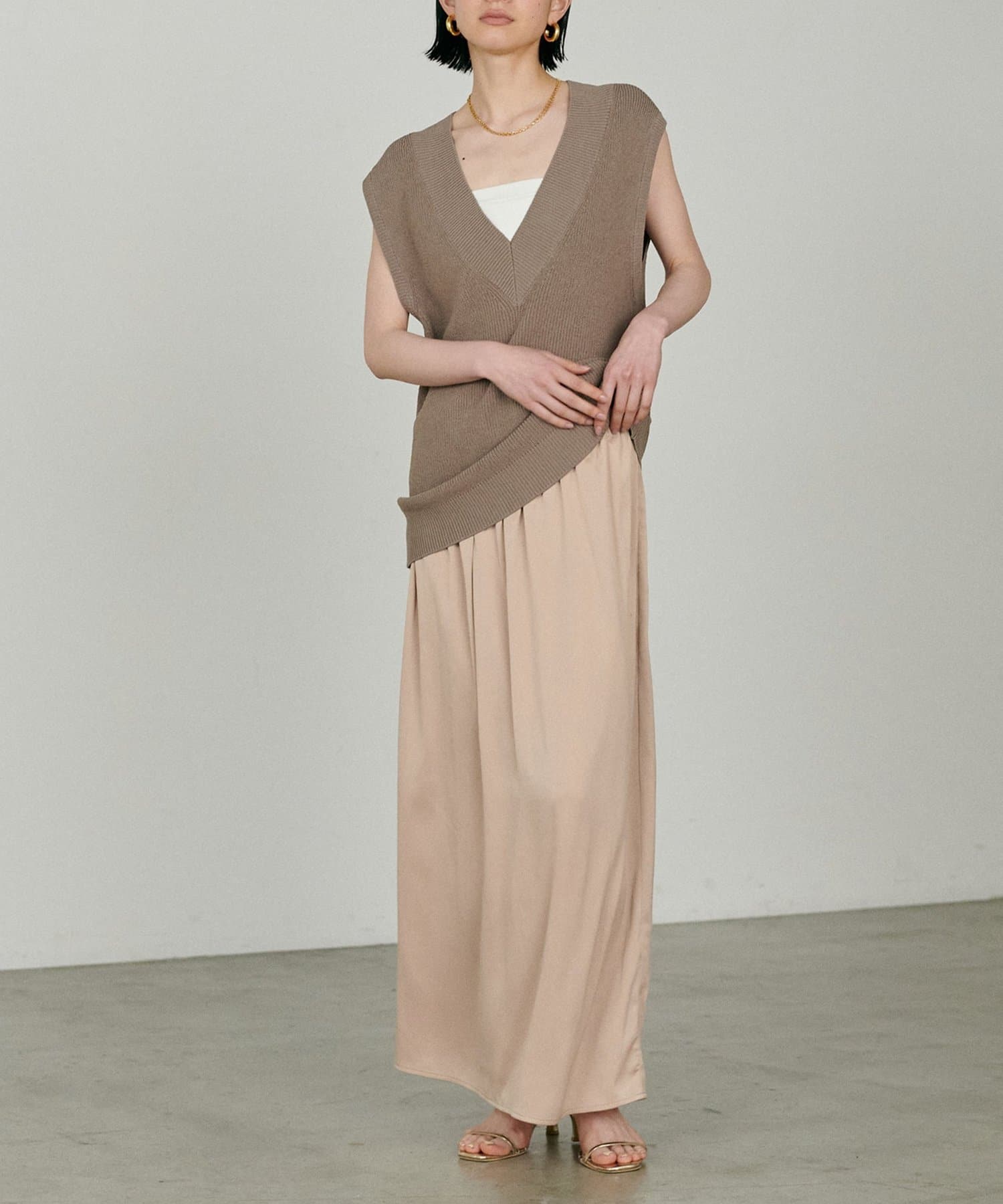 同素材の 3051040310 サテンドレープ2Wayキャミ とのセットアップ着用が可能。